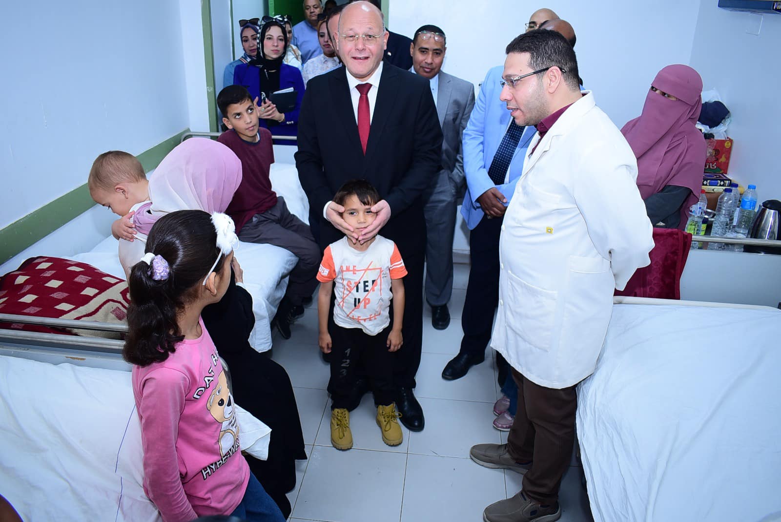 وأضاف الدكتور احمد كمال ان الزيارة شملت ايضاً مناظرة عدد ٦ حالات من الاطفال تم عمل فحوصات ومتابعة لحالتهم الصحية منهم ٦ اطفال يعانون من نقص في الصفائح الدموية، وورم عطمي، وحرق قديم، ويتم متايعتهم باستمرار حتي تماثلهم للشفاء بشكل تام.