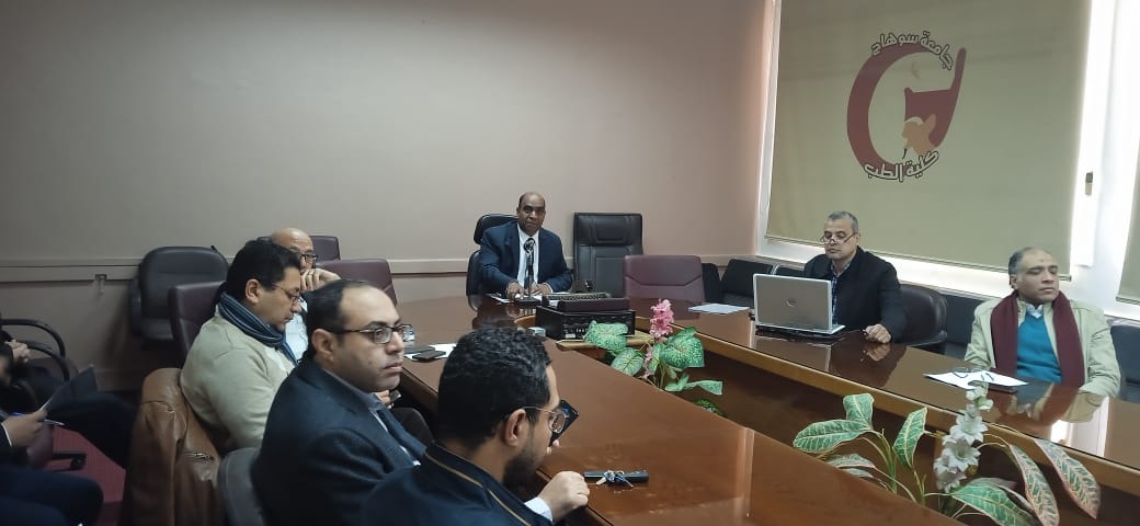 حيث بدأ الاجتماع بكلمه شكر من السيد العميد لكل من ساهم و اجتهد في زيارة فخامه الرئيس عبد الفتاح السيسي لأفتتاح المشفي الجامعي الجديد.