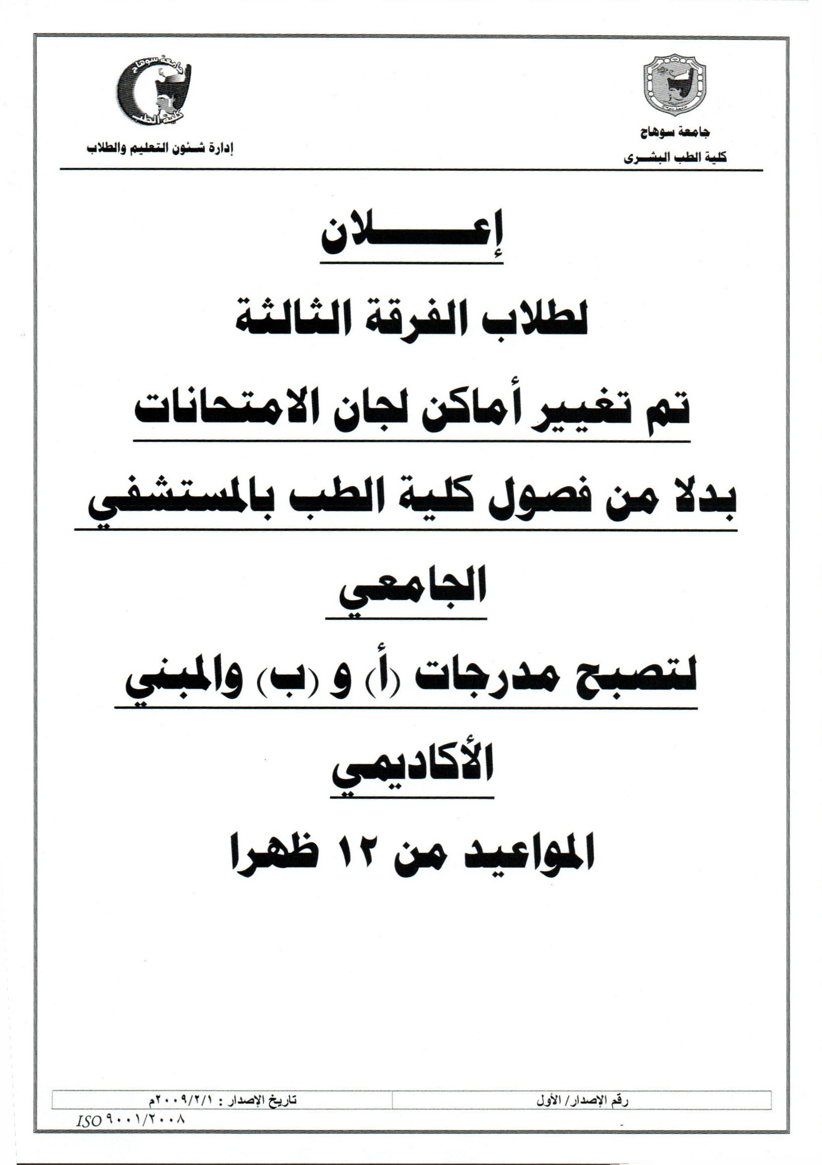 اعلان هام لطلبة الفرقة الثالثة