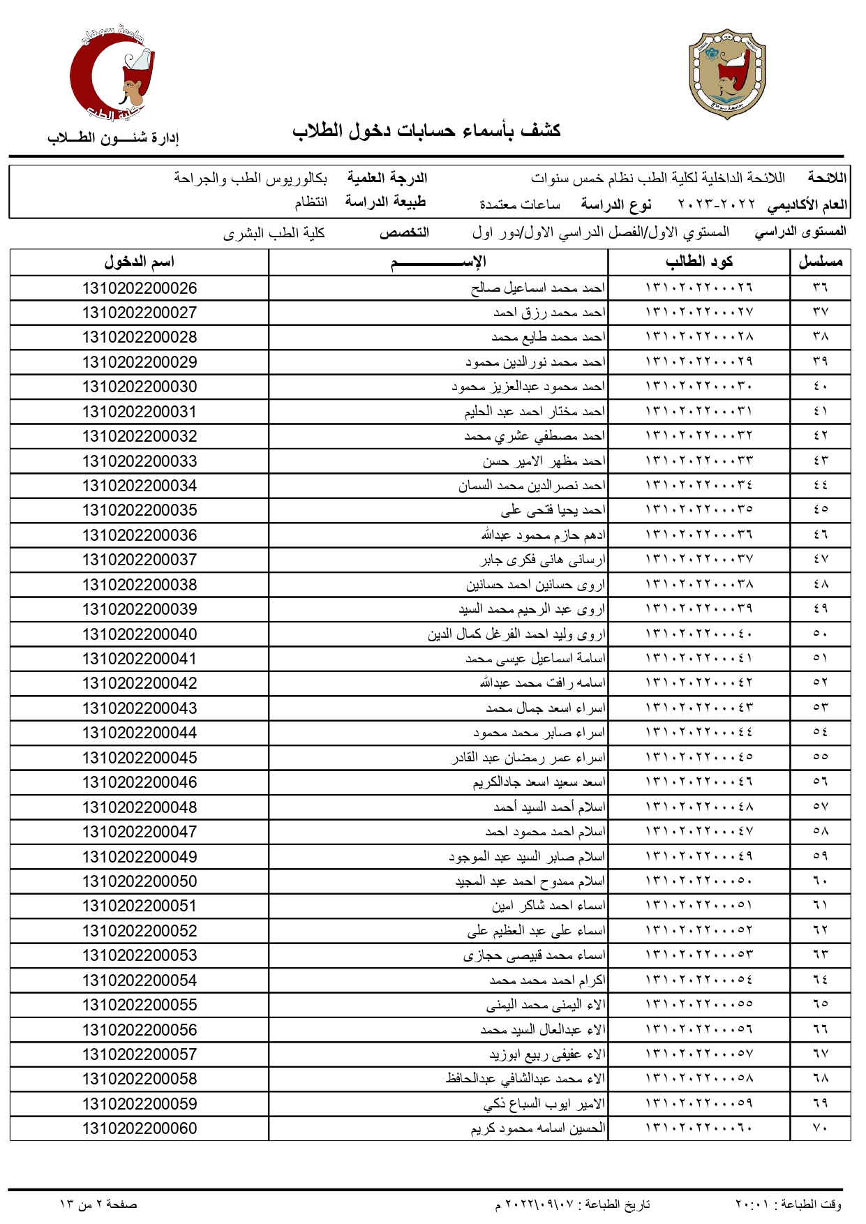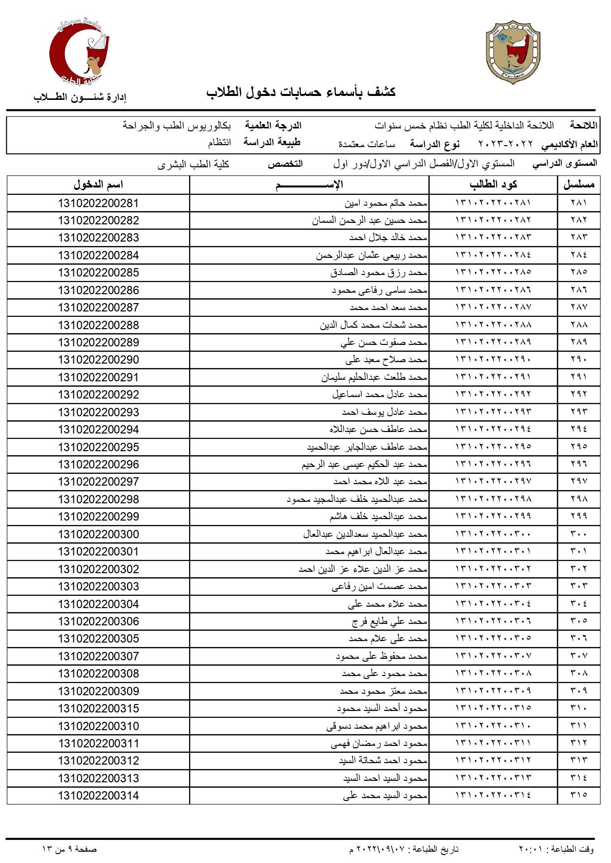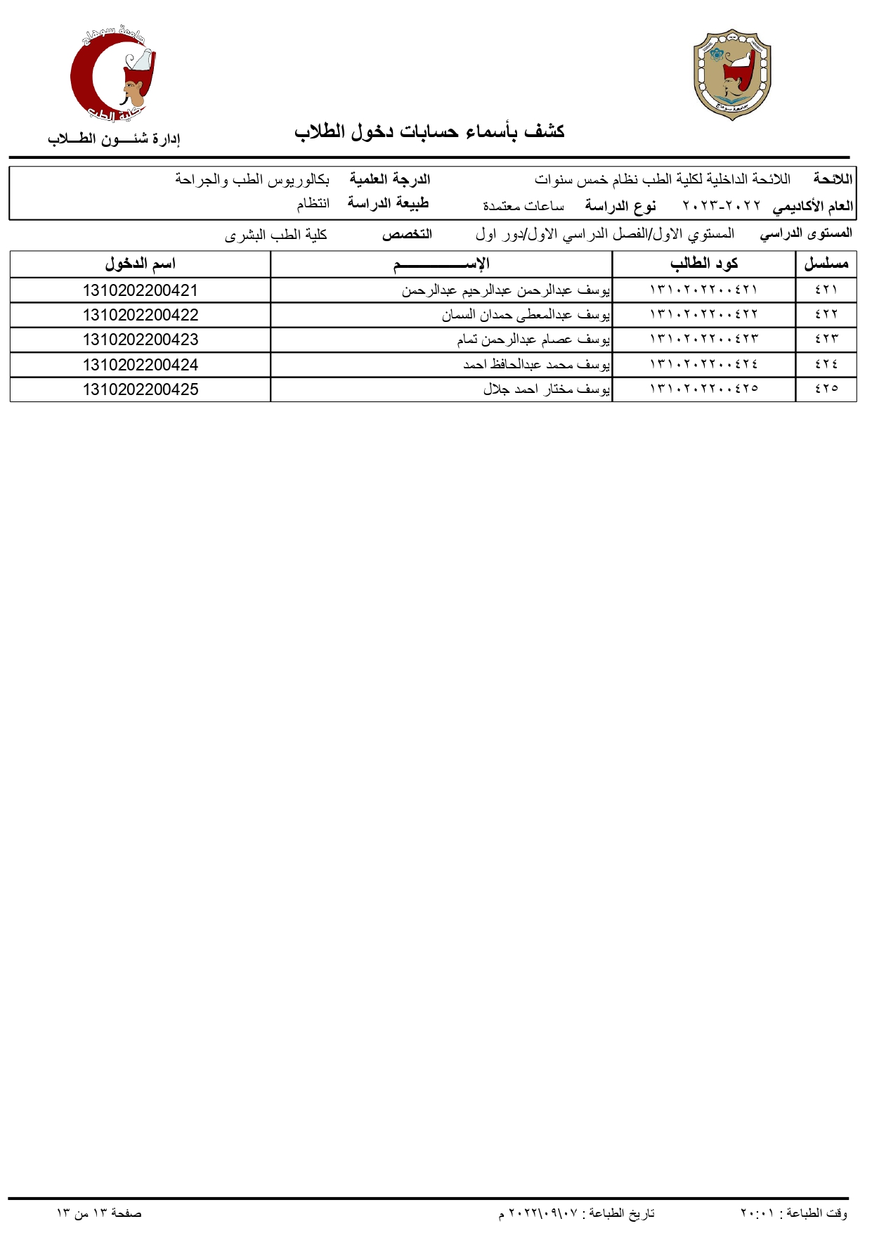 الرئيسية » Blog » اكواد الطلاب الجدد الفرقة الاولى 2022/2023اكواد الطلاب الجدد الفرقة الاولى 2022/2023by كلية الطب2022-09-07