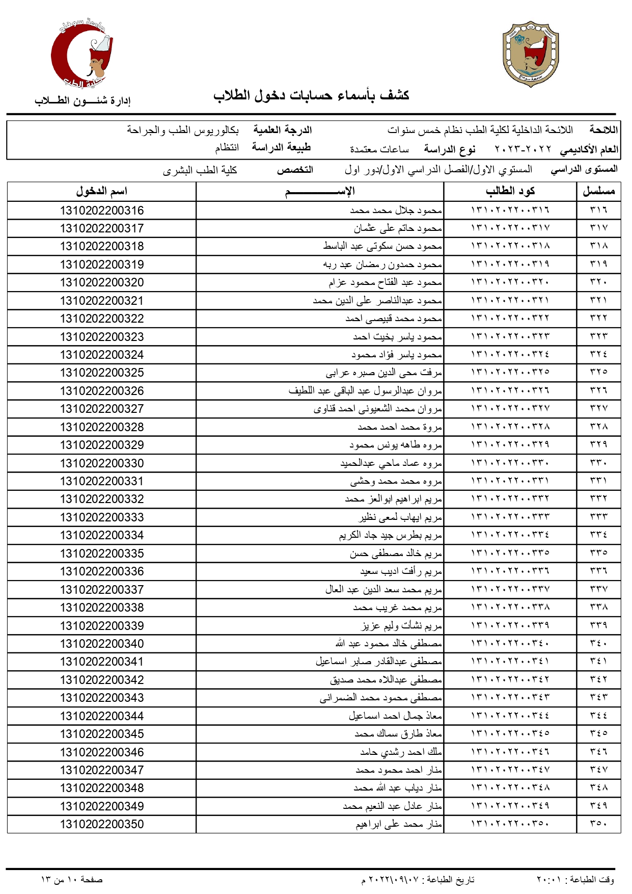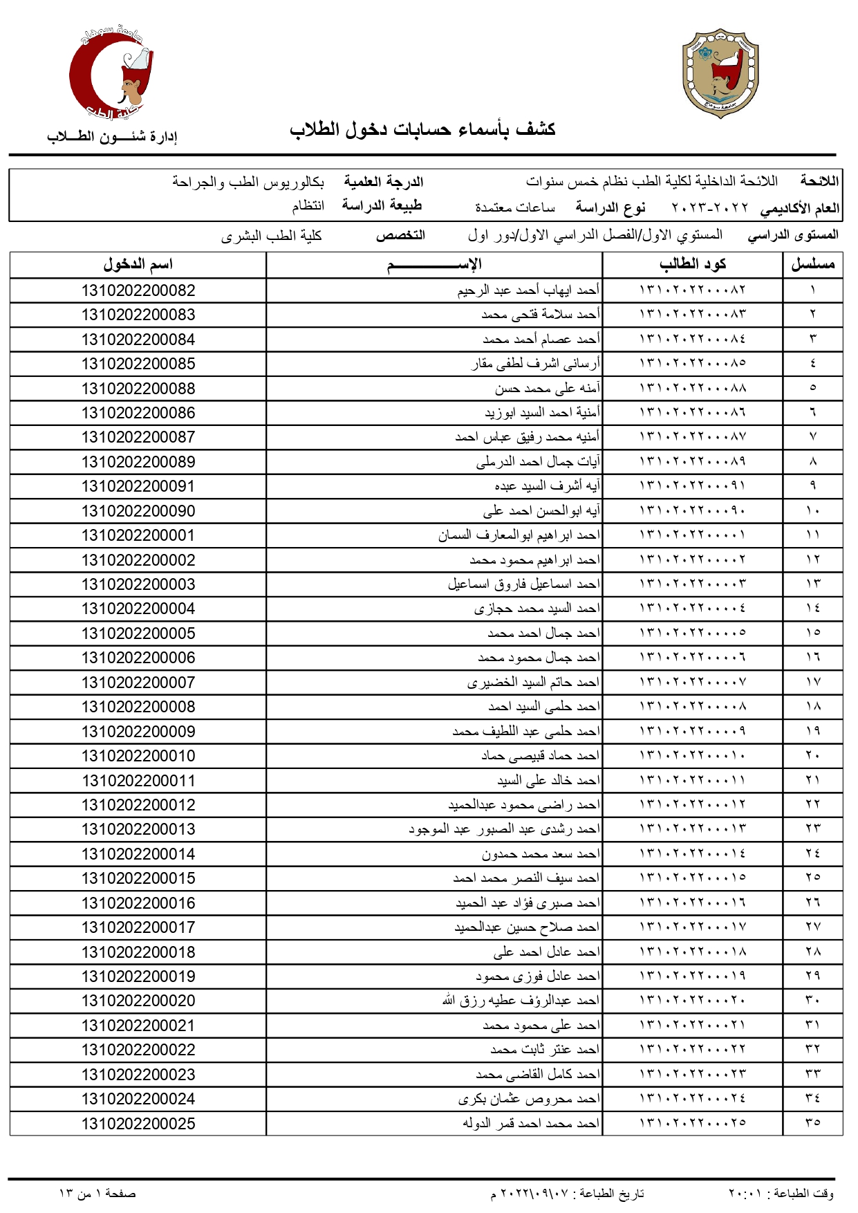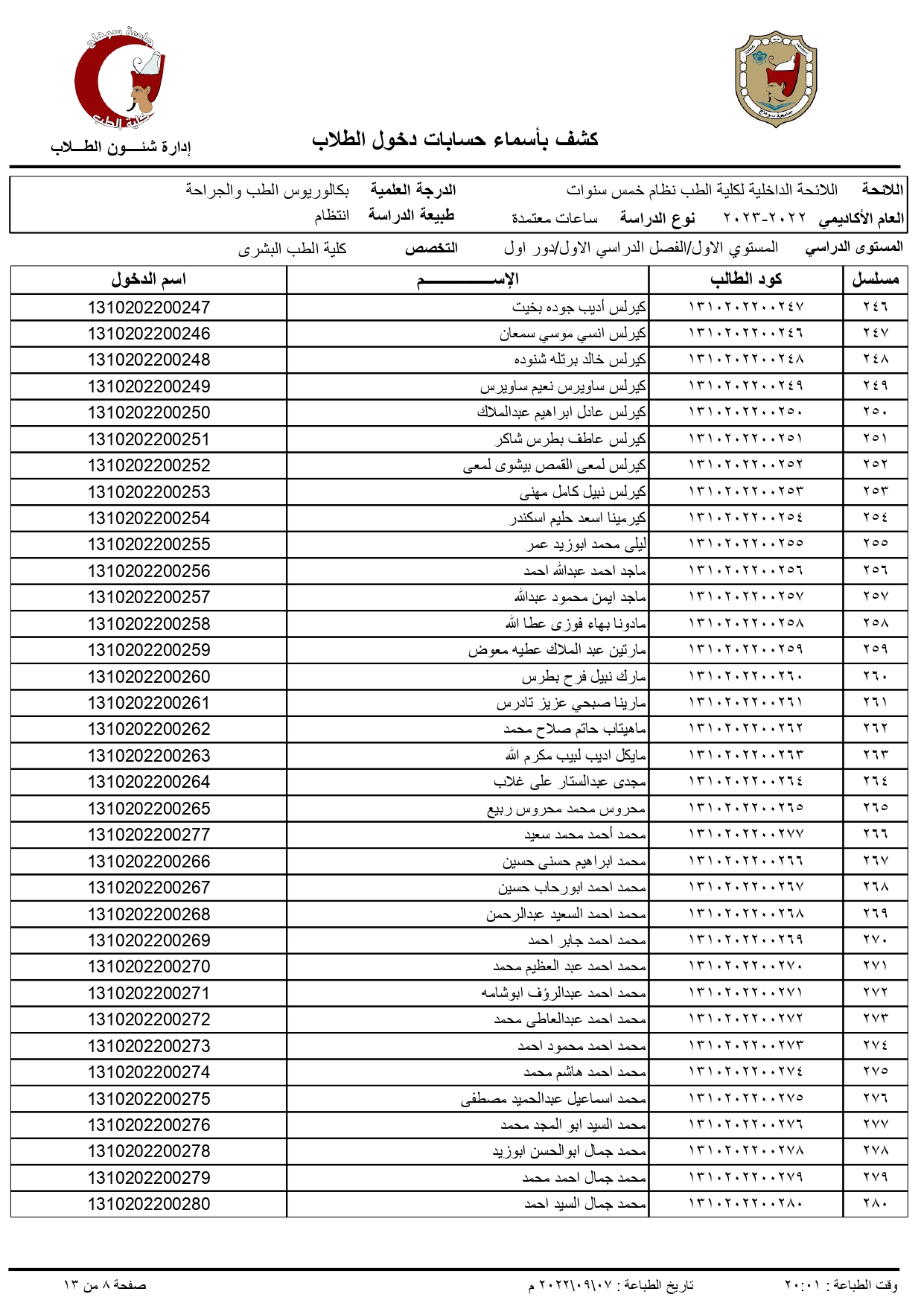 الرئيسية » Blog » اكواد الطلاب الجدد الفرقة الاولى 2022/2023اكواد الطلاب الجدد الفرقة الاولى 2022/2023by كلية الطب2022-09-07