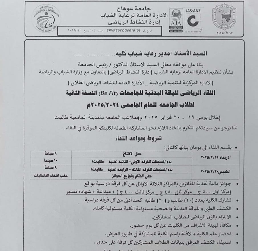 الرئيسية » Blog » اللقاء الرياضي للياقة البدنية للجامعات (Be fit) النسخة الثانيةاللقاء الرياضي للياقة البدنية للجامعات (Be fit) النسخة الثانيةby كلية الطب2025-02-19