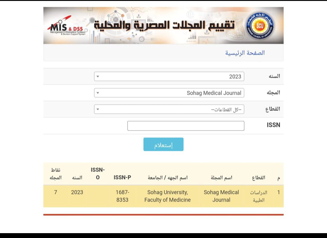 المجلة الطبية بكلية الطب البشري سوهاج ( SMJ )تحصل علي أعلي تقييم من المجلس الأعلي للجامعات (٧/٧)المجلة الطبية بكلية الطب البشري سوهاج ( SMJ )تحصل علي أعلي تقييم من المجلس الأعلي للجامعات (٧/٧) …..