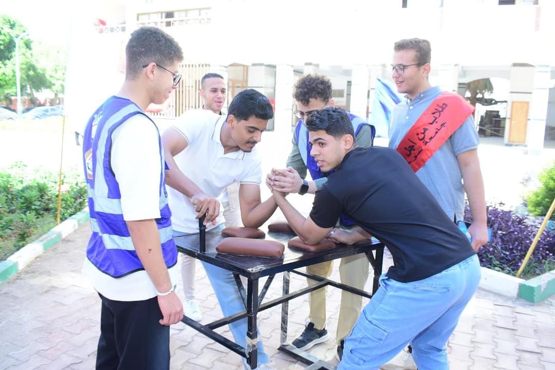واضافت ايمان الفولي مدير إدارة رعاية الشباب بالكلية.أن رئيس الجامعة تفقد مقرات عدد من المسابقات الطلابية التي تنظمها الإدارة ، والتى تضم أنشطة رياضية، ثقافية، اجتماعية، وعلمية، حيث شارك رئيس الجامعة الطلاب فى ممارسة بعض الألعاب الرياضية مثل ألعاب تنس الطاولة، شد الحبل، الشطرنج، وألعاب القوي.