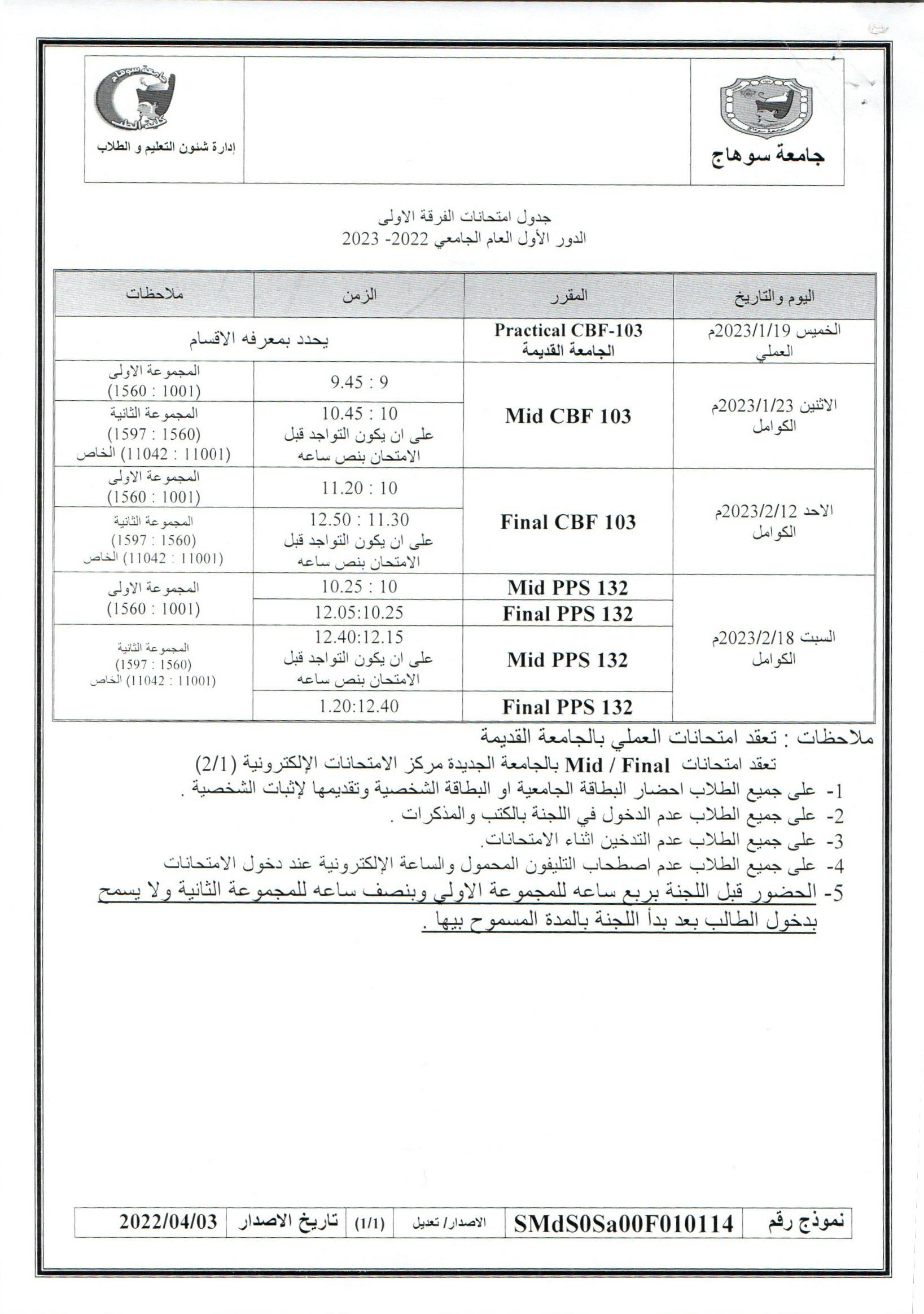 الرئيسية » Blog » جدول امتحانات الفرقة الاولى الدور الاول العام الجامعي 2022/2023جدول امتحانات الفرقة الاولى الدور الاول العام الجامعي 2022/2023by كلية الطب2023-01-01