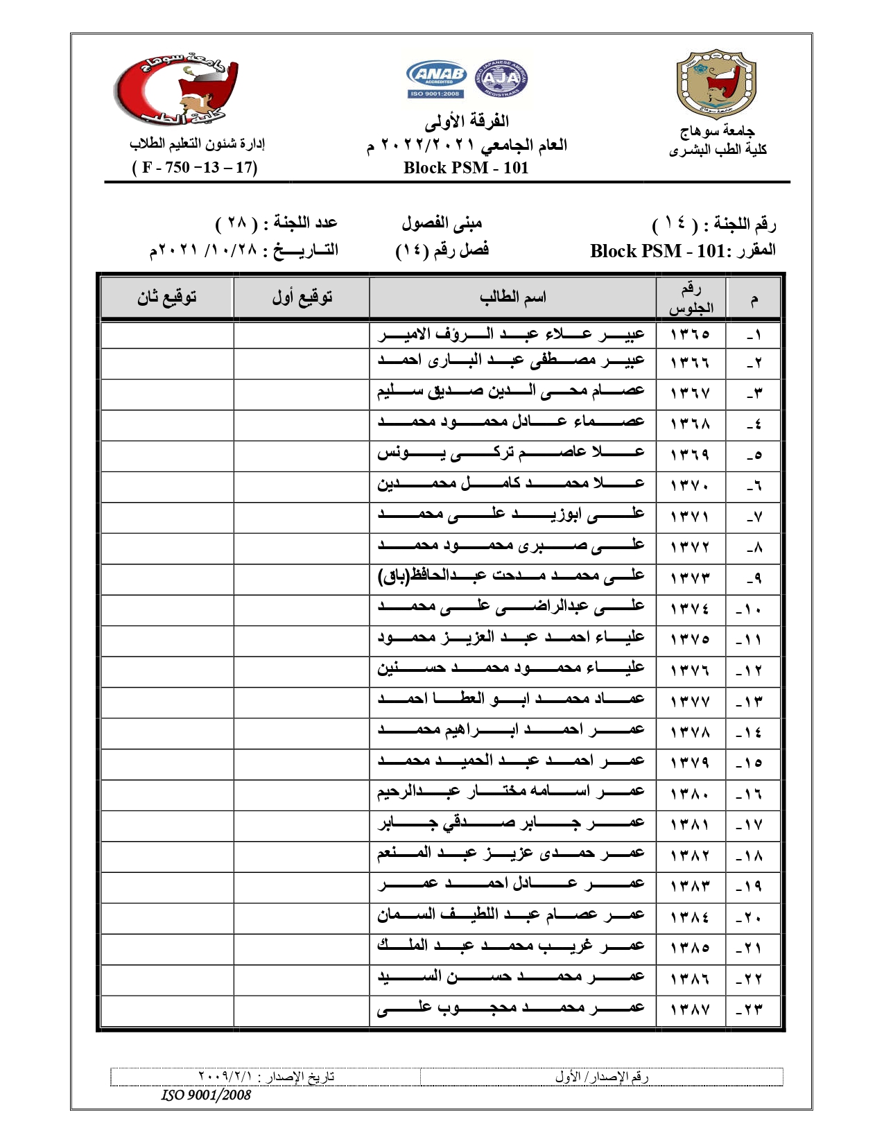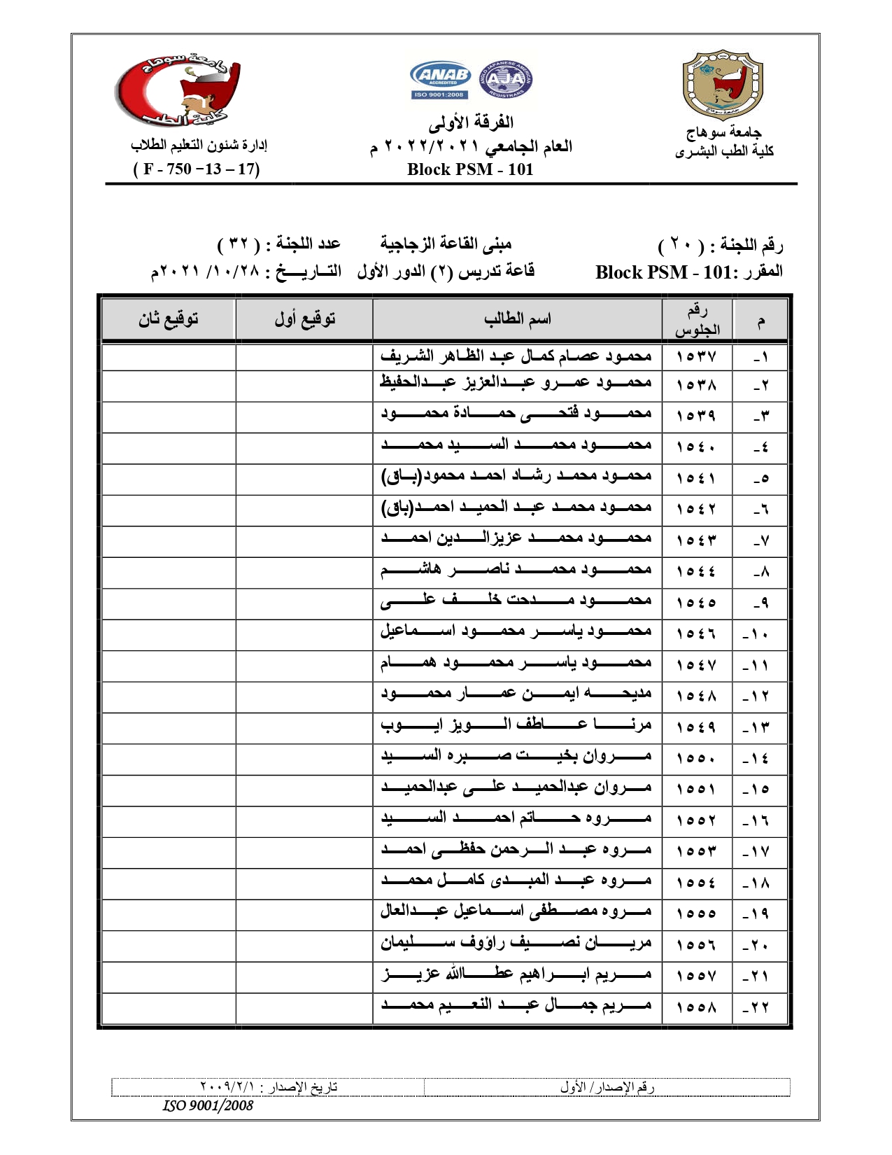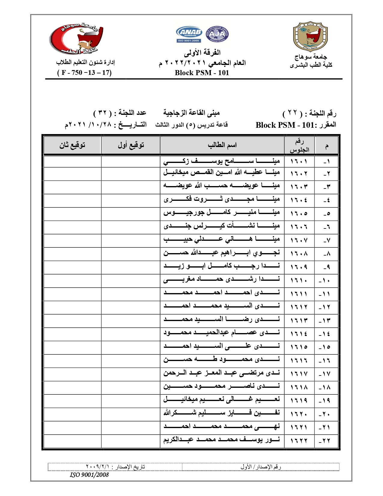دليل لجان الفرقة الاولى العام الجامعي 2021/2022
