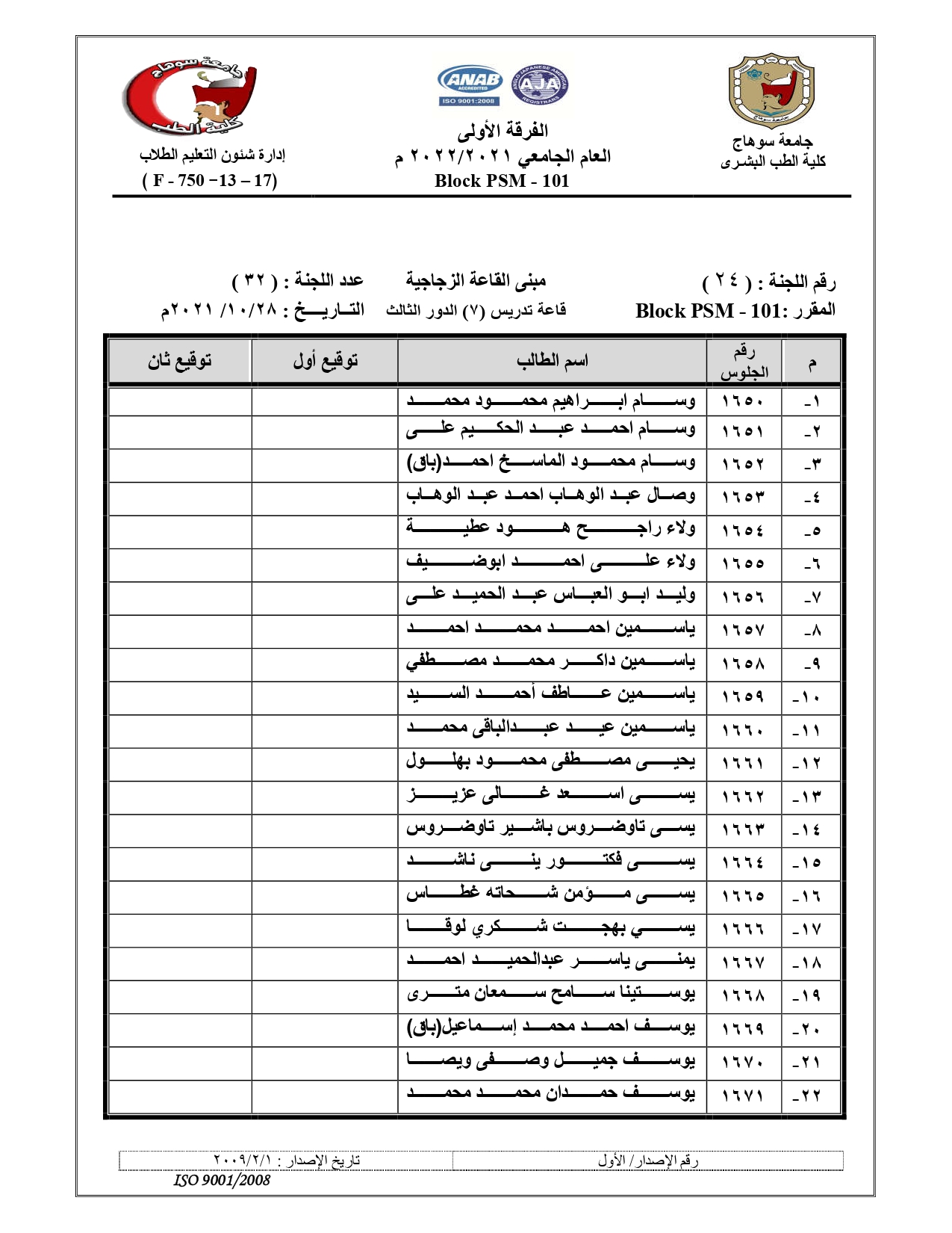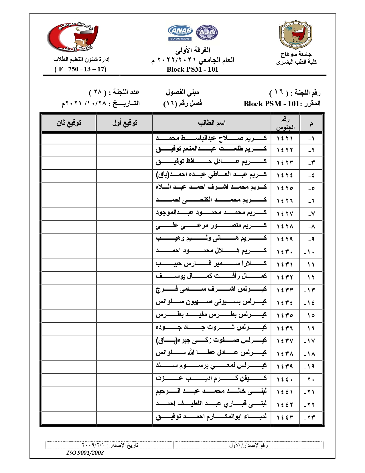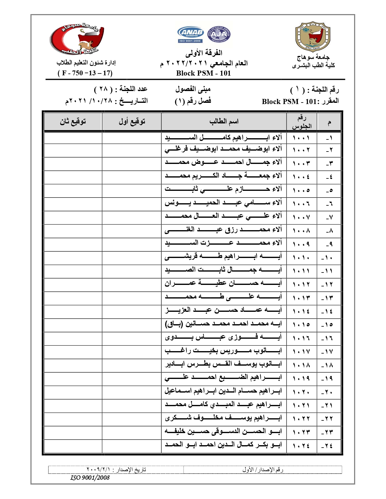 دليل لجان الفرقة الاولى العام الجامعي 2021/2022