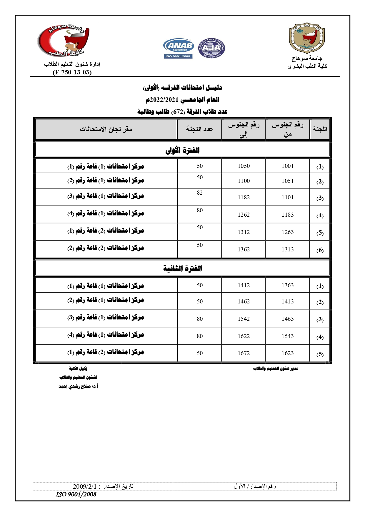 دليل لجان امتحانات الفرقة الاولى بالكوامل