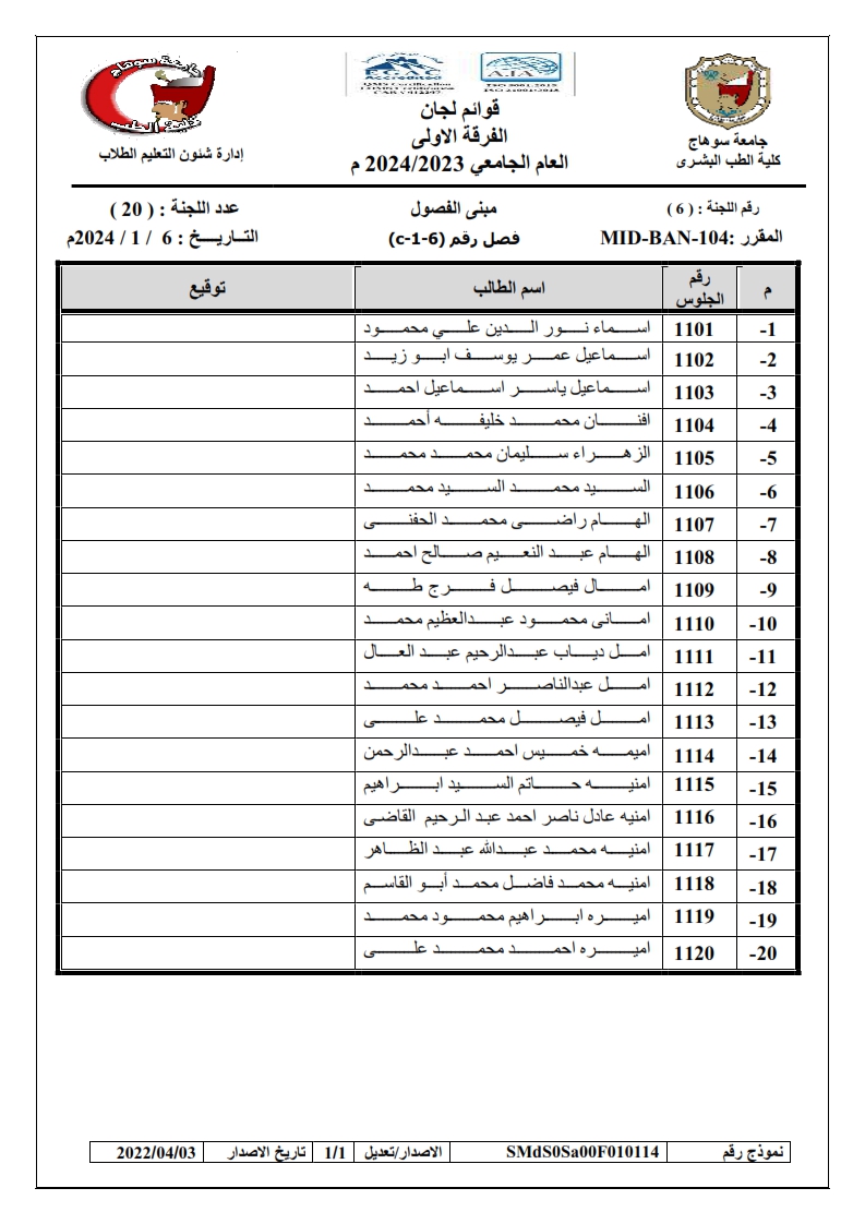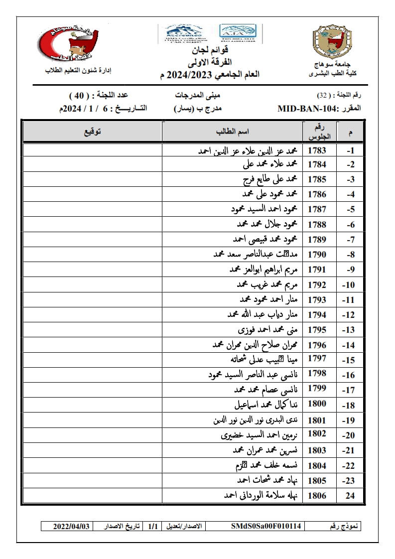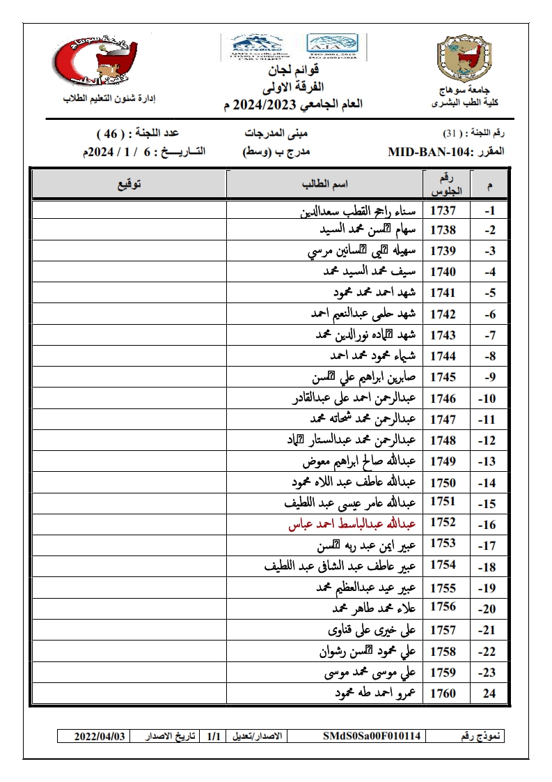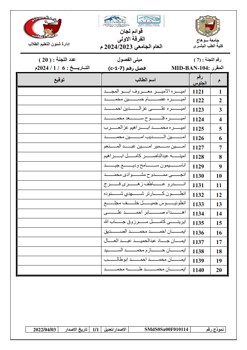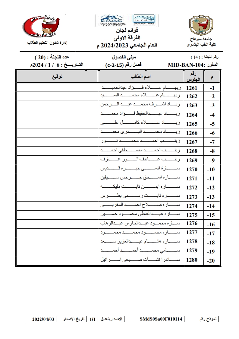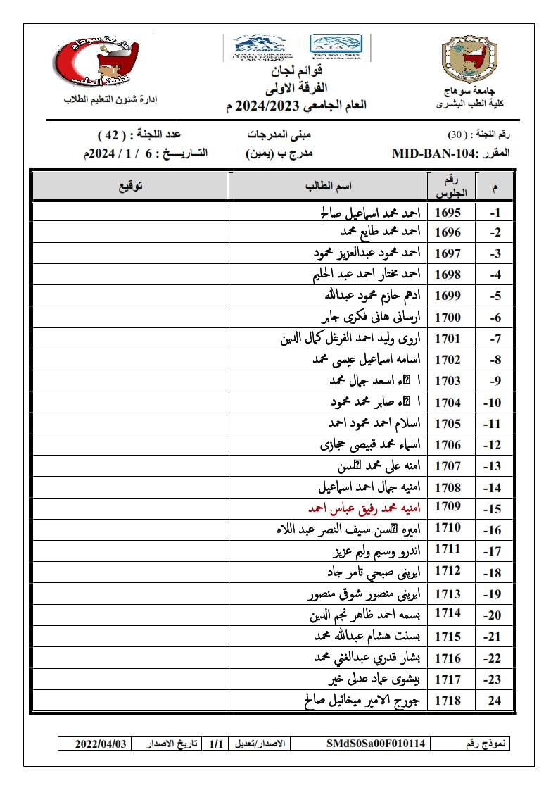الرئيسية » Blog » قوائم لجان امتحانات الفرقة الاولى MID BAN-104قوائم لجان امتحانات الفرقة الاولى MID BAN-104by كلية الطب2024-01-032024-01-03