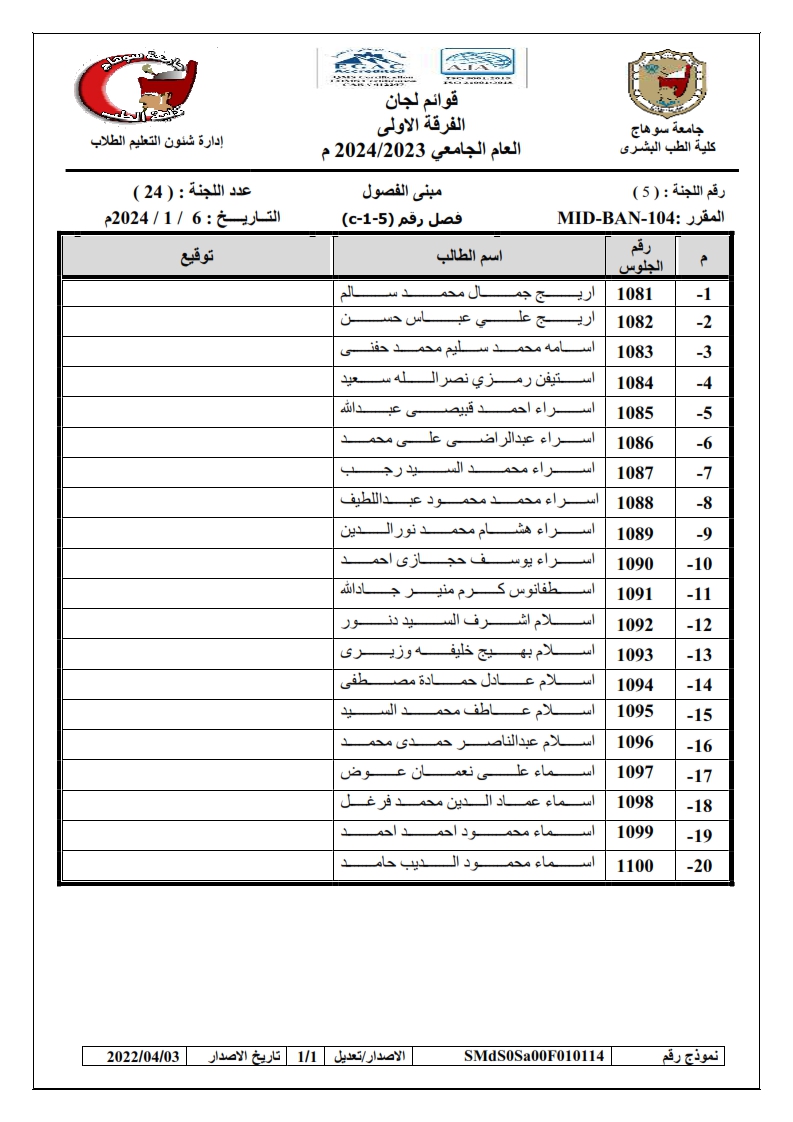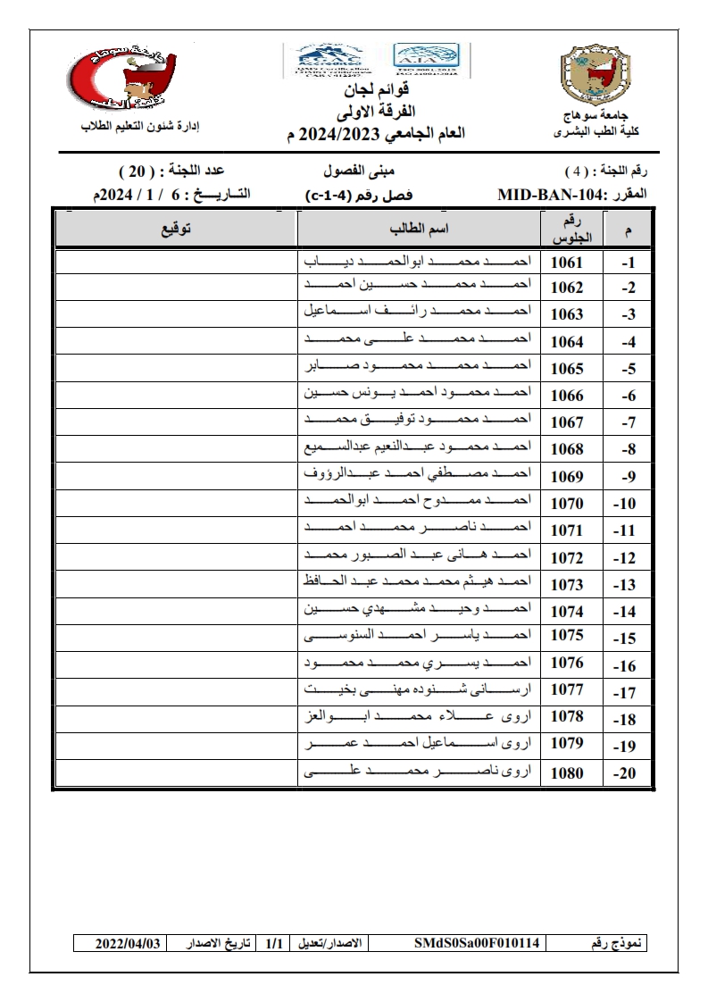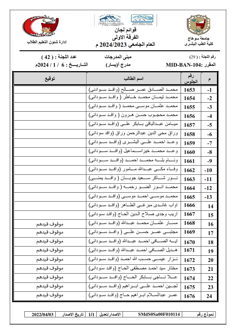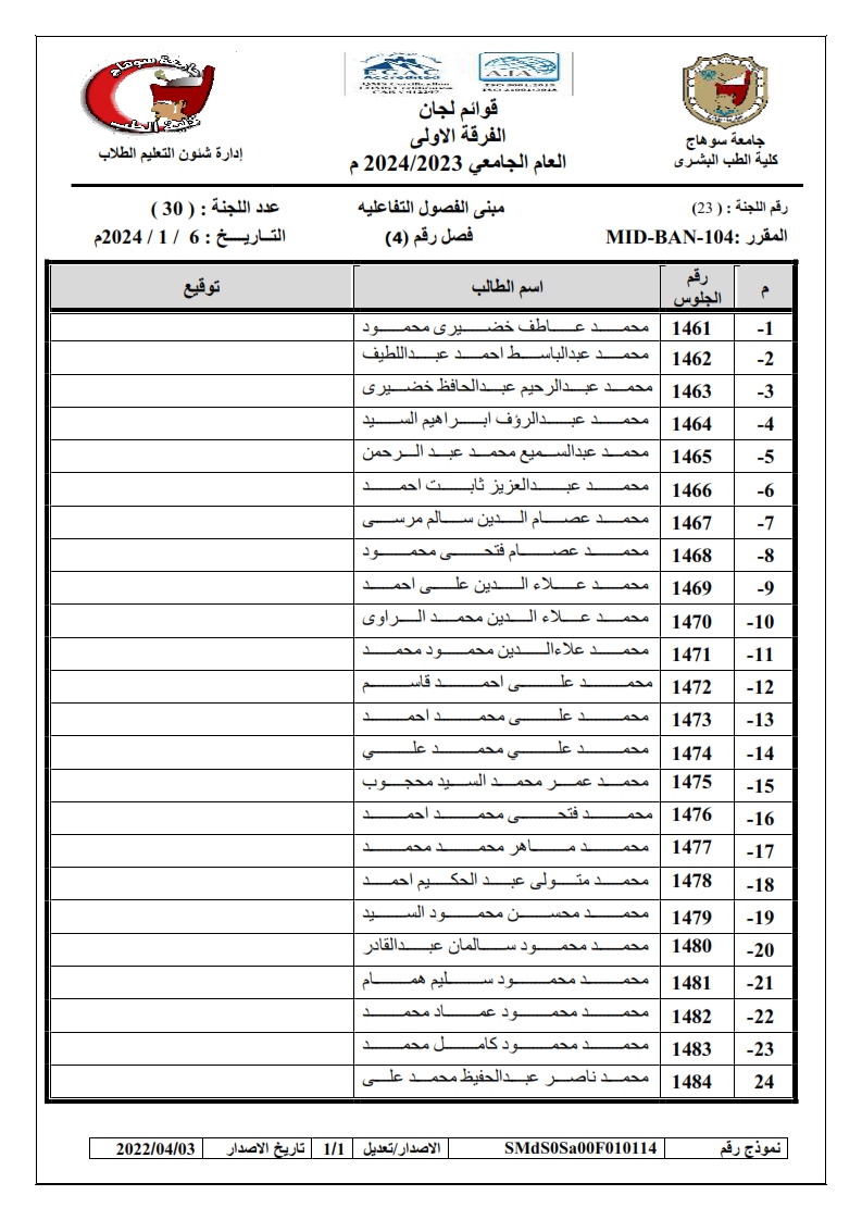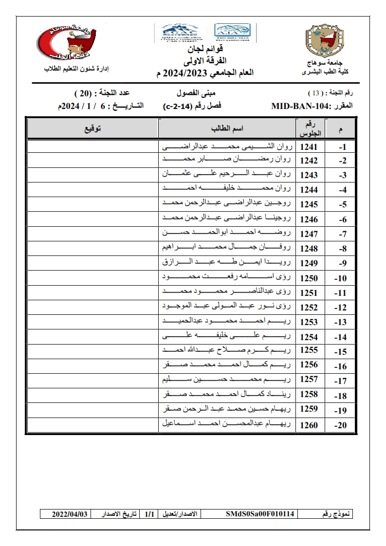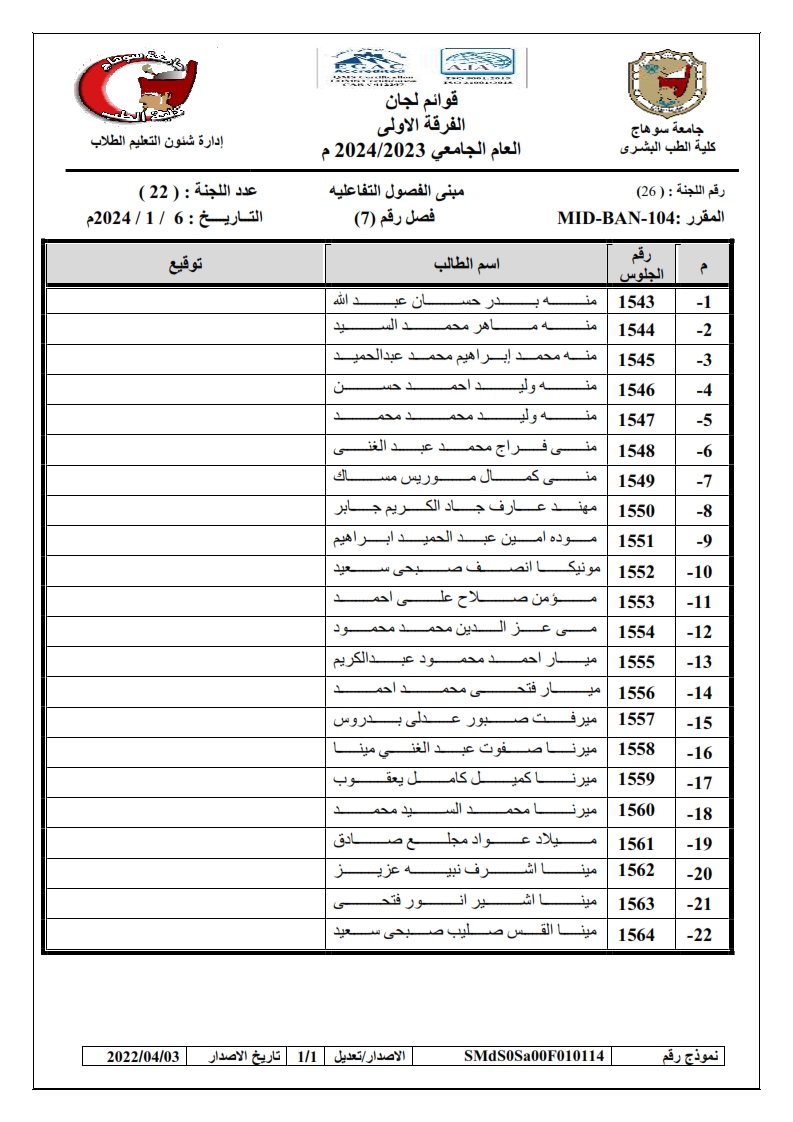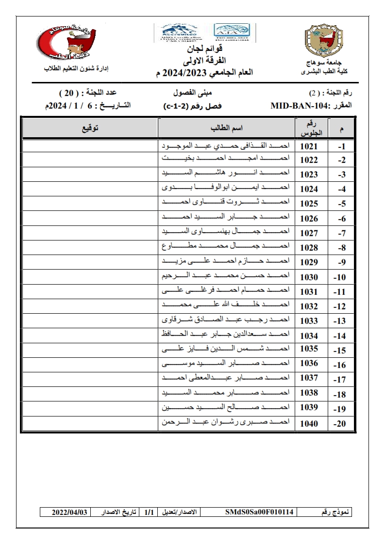 الرئيسية » Blog » قوائم لجان امتحانات الفرقة الاولى MID BAN-104قوائم لجان امتحانات الفرقة الاولى MID BAN-104by كلية الطب2024-01-032024-01-03