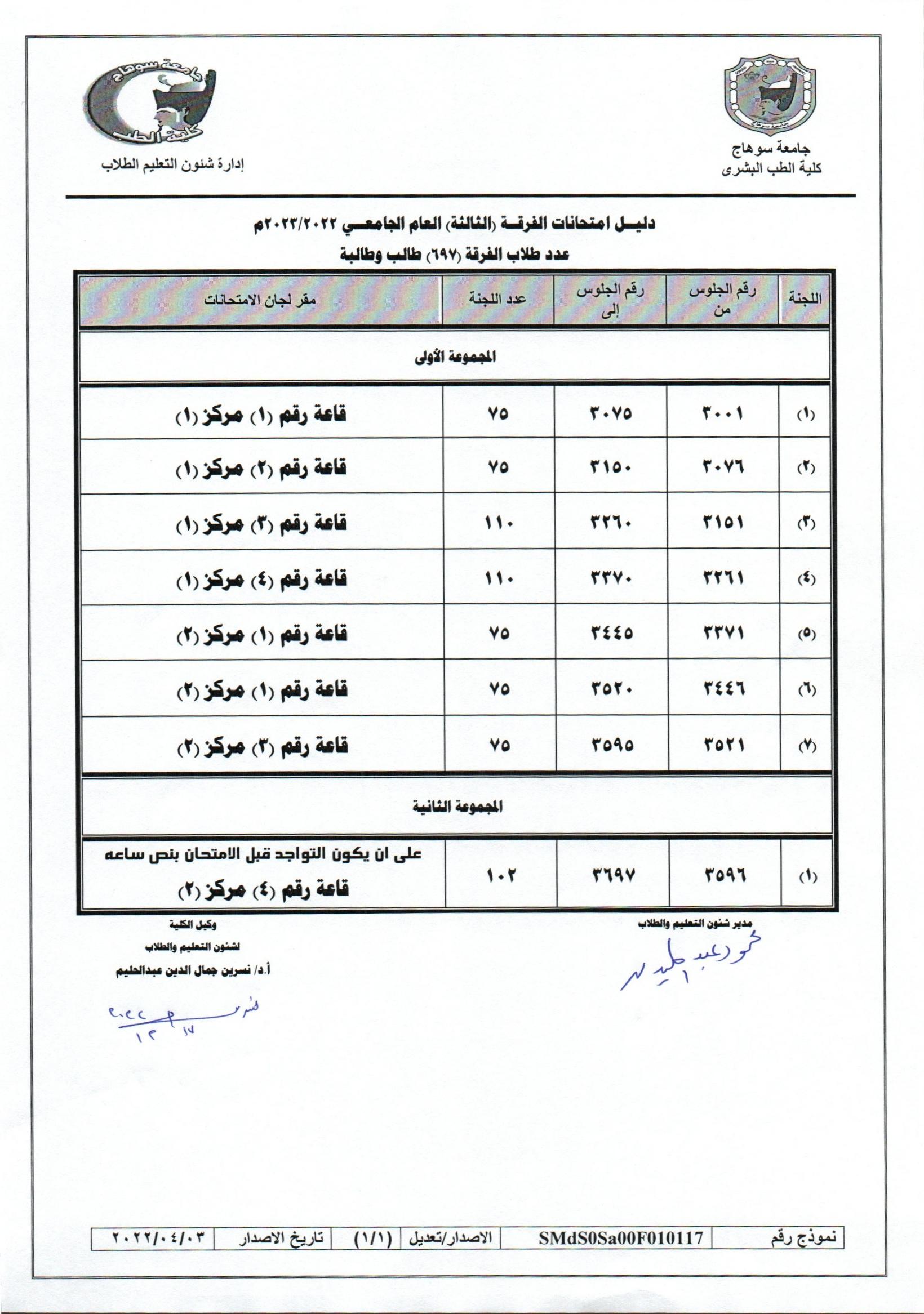 دليل لجان امتحانات الفرقة الثالثة العام الجامعي 2022/2023