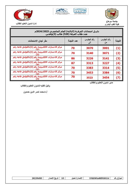 دليل لجان امتحانات الفرقة الثالثة العام الجامعي 2023/2024