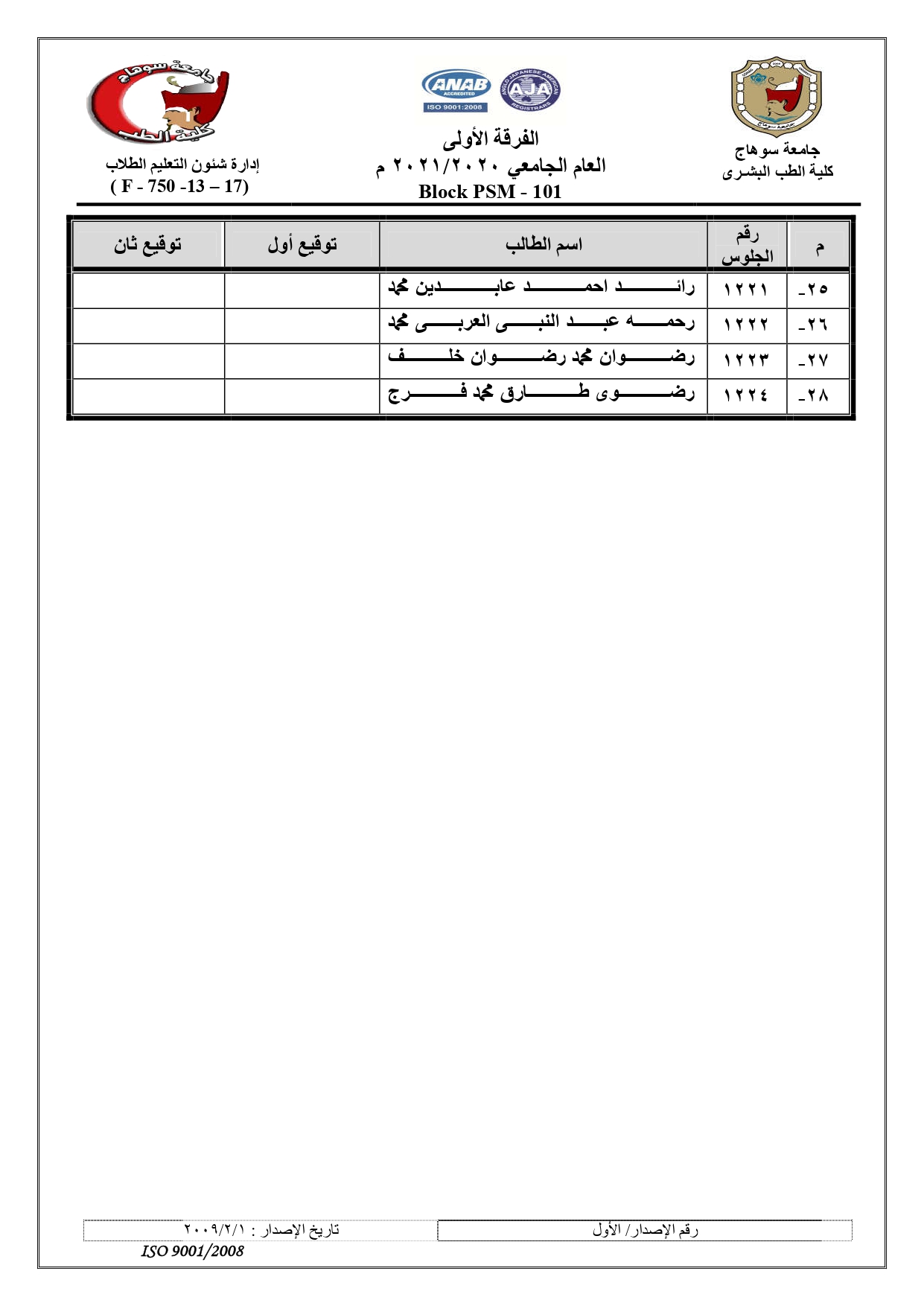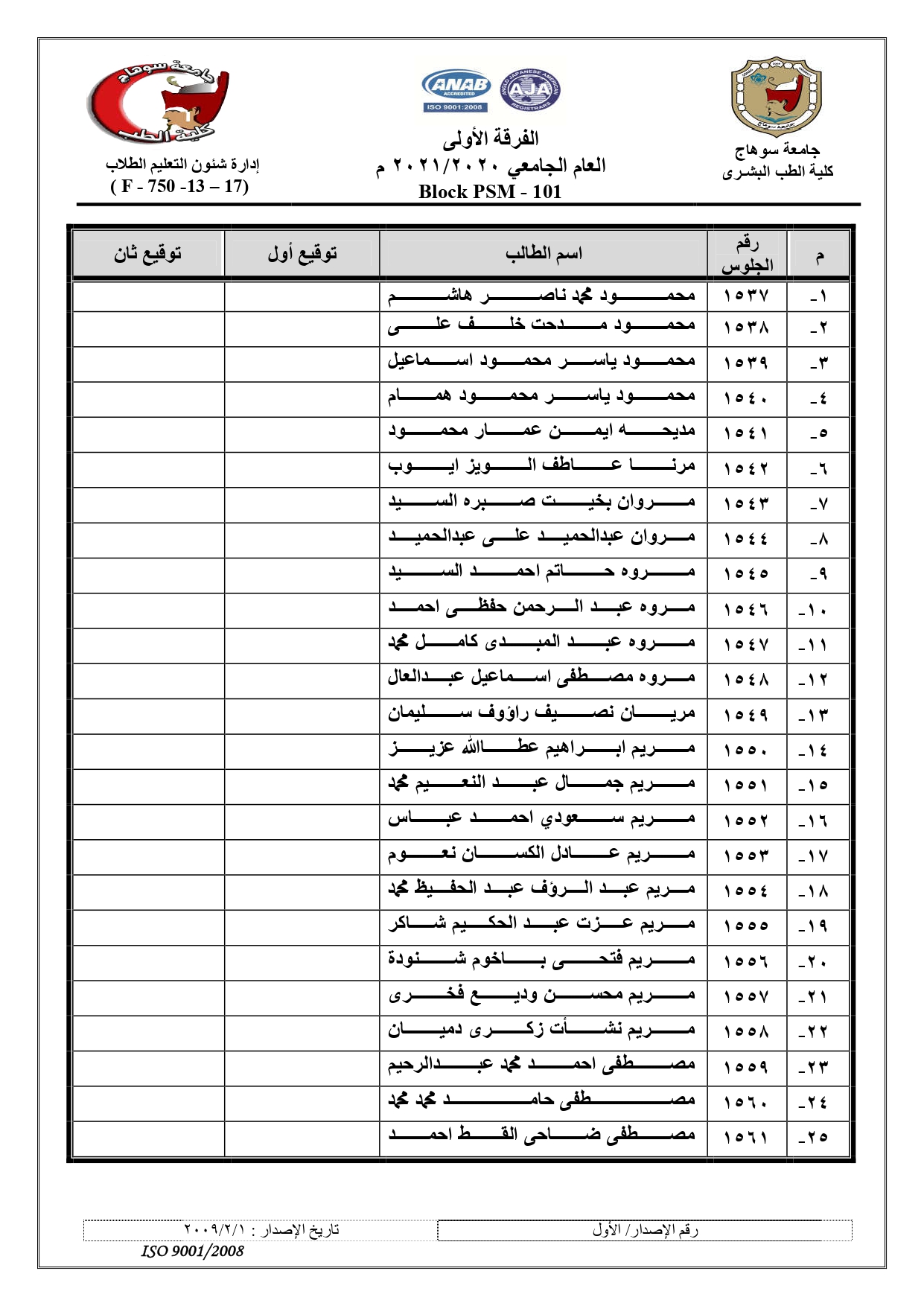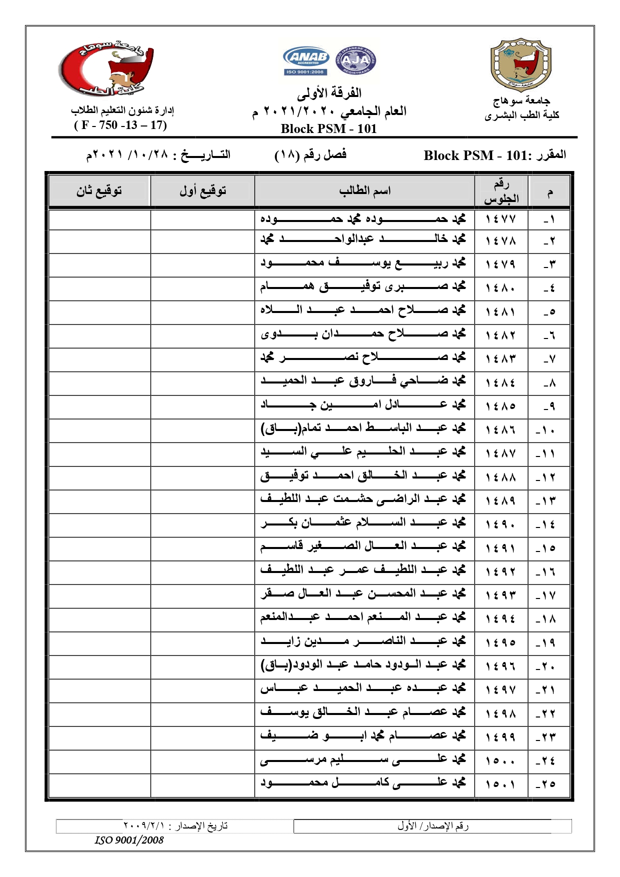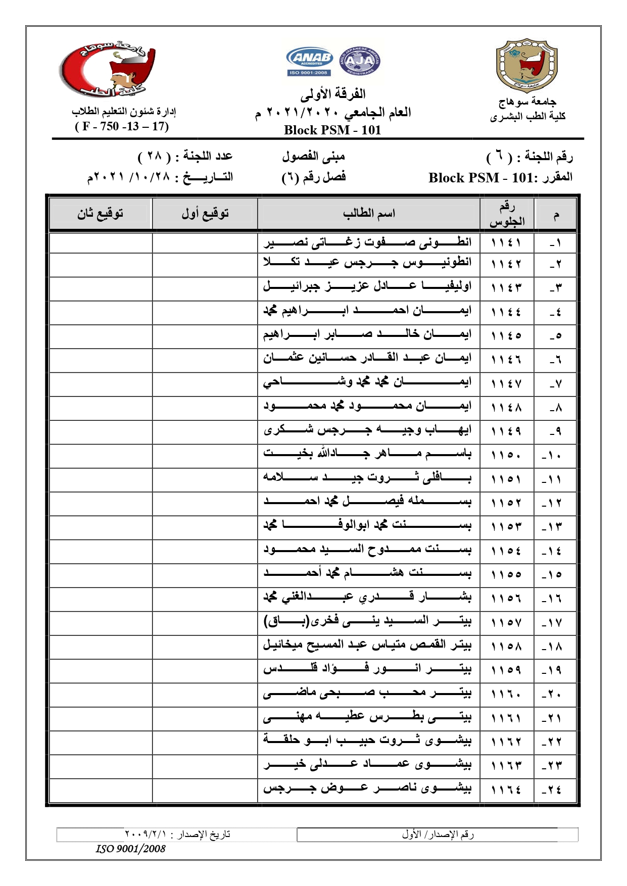 الرئيسية » Blog » دليل لجان وارقام جلوس الفرقة الاولى العام الجامعي 2022/2021 (Block PSM-101)دليل لجان وارقام جلوس الفرقة الاولى العام الجامعي 2022/2021 (Block PSM-101)by كلية الطب2021-10-142021-10-14