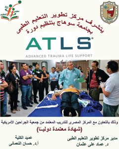 وفى خطوة رائدة بكلية الطب بسوهاج وتحت رعاية الأستاذ الدكتور/ أحمد عزيز رئيس الجامعة وريادة الأستاذ الدكتور / حسان النعمانى عميد كلية الطب و الدكتور / عماد على عثمان مدير مركز تطوير التعليم الطبى وبالتعاون مع المركز المصرى للتدريب والمعتمد من جمعية الجراحيين الأمريكية فقد تم الموافقة على انطلاق أولى دورات “Advanced Trauma Life Support” (شهادة معتمدة دوليــاً).