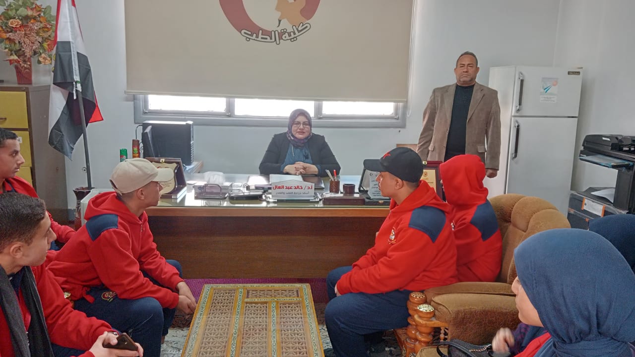 كان في استقبالها معالي ا.د/ مجدي أمين القاضي عميد كلية الطب البشري