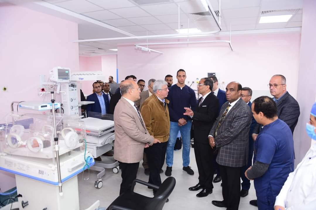 كما قدم رئيس الجامعة عرضا تفصيليا عن المشفي الجديد الذي اقيم بتكلفة مليار و ١٧٨ مليون جنية وبمساحه ٢٤ الف متر مربع ويضم ١٦ غرفة عمليات و ٢٨ سرير اقامة للمرضي و ٤٥ سرير عناية مركزة وعدد ٣٢ حضانة اطفال و ٣٢ ماكينة غسيل كلوي والمستشفي مجهز بأحدث الأجهزة الطبية بتكلفة ٣٠٠ مليون جنية .