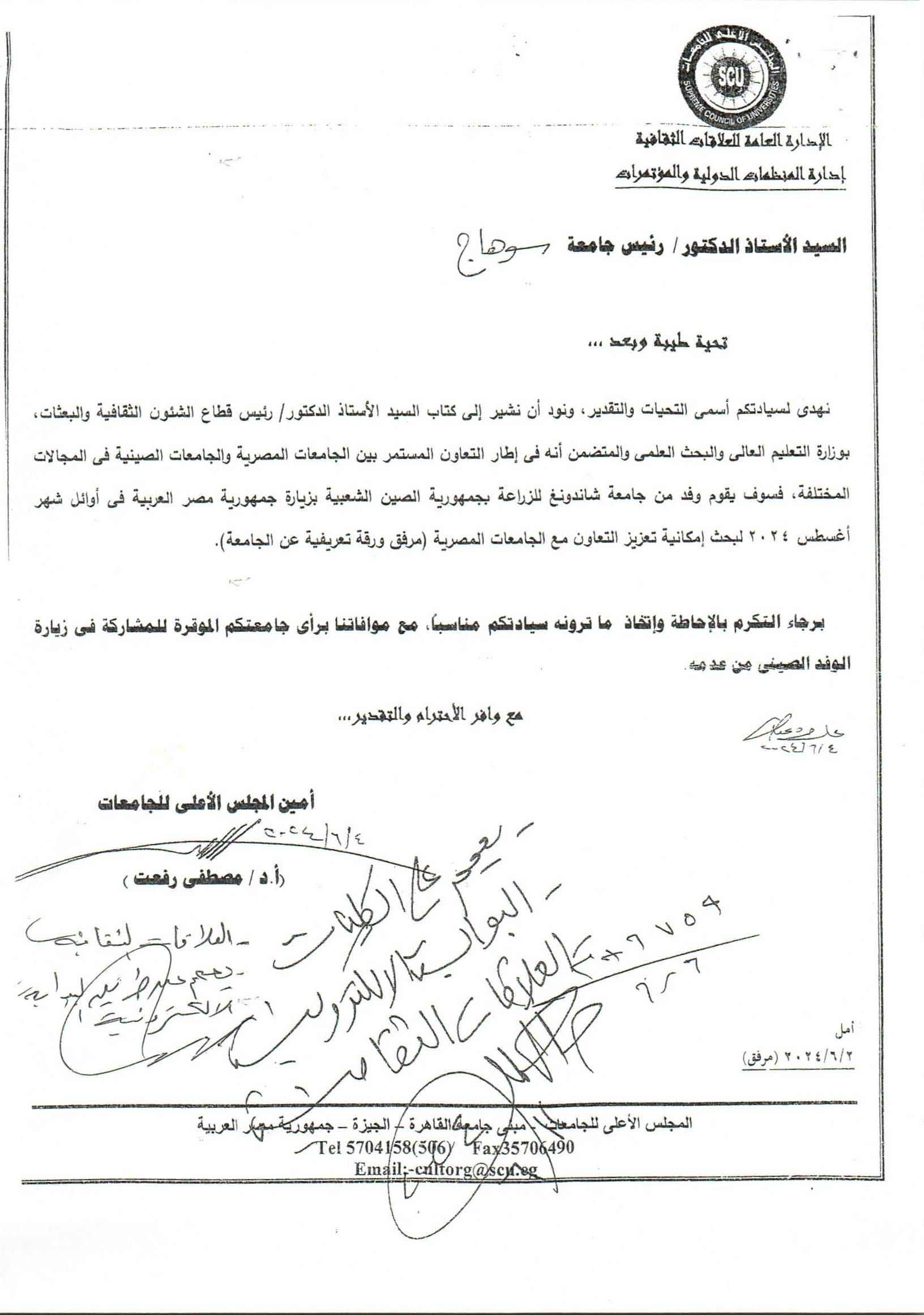 الرئيسية » Blog » زيارة وفد من جامعة شاندونغ للزراعة بجمورية الصين الشعبية لجمورية مصر العربيةزيارة وفد من جامعة شاندونغ للزراعة بجمورية الصين الشعبية لجمورية مصر العربيةby كلية الطب2024-06-23