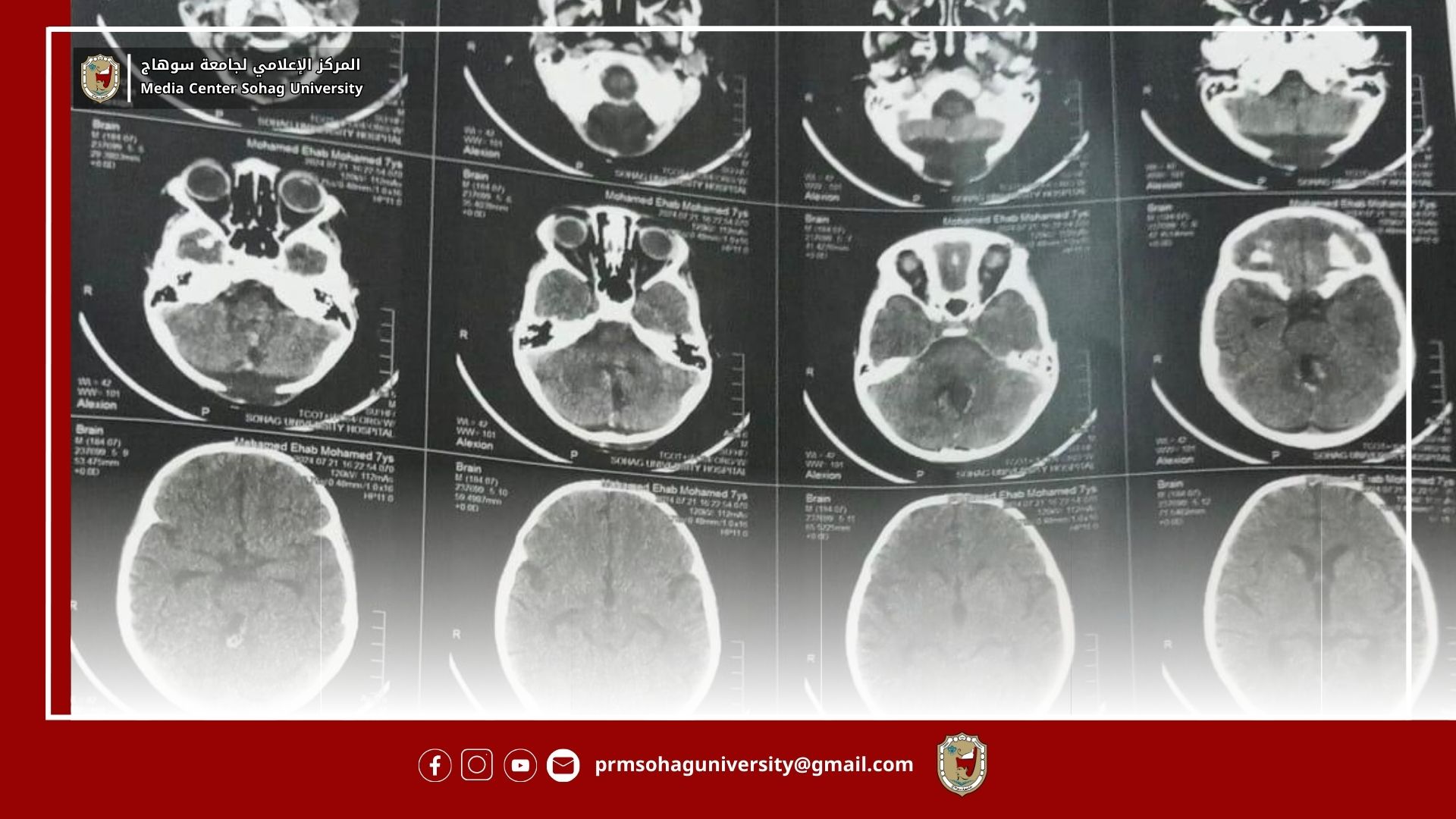 نجح فريق طبي من قسم جراحة المخ والأعصاب بمستشفي سوهاج الجامعي، وبالتعاون مع قسم التخدير في إنقاذ حياة طفل يبلغ من العمر ١٠ سنوات، يعانى من قىء مستمر مع فقدان الإتزان اثناء الحركة، بعدما تبين وجود ورم خبيث يزن ١٠٠ جرام، بالفص الخلفى من المخ ضاغط على المخيخ وجزع المخ، صرح بذلك الدكتور حسان النعماني رئيس الجامعة. وقال أن الفريق الطبي بالمستشفى قام بإجراء التدخل الجراحي الدقيق لإنقاذ حياة الطفل من خلال جراحة دقيقة ومعقدة، استمرت ٦ ساعات متواصلة، تكللت فيها جميع الجهود بنجاح العملية وعودة الطفل الي بيته سالماً.