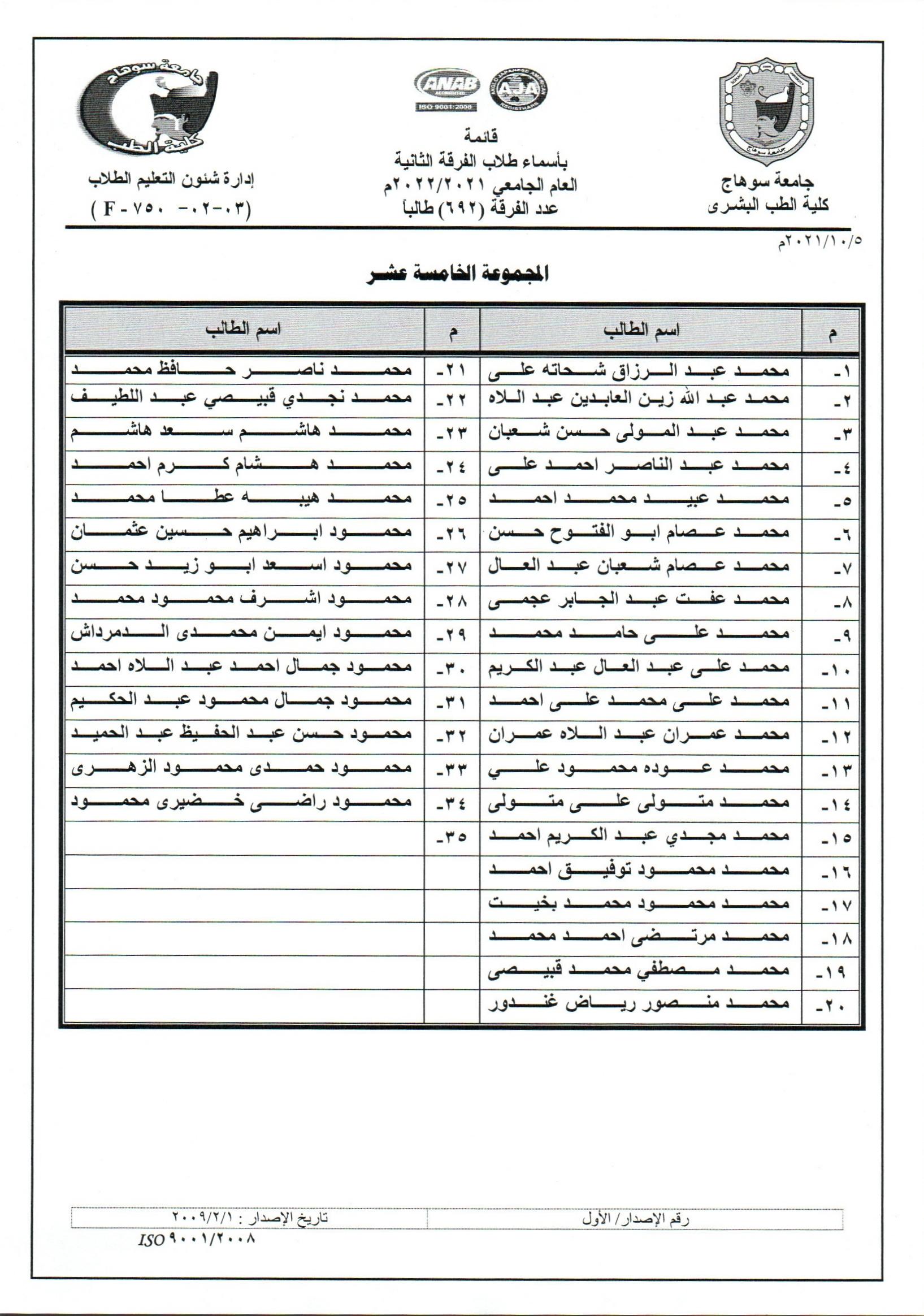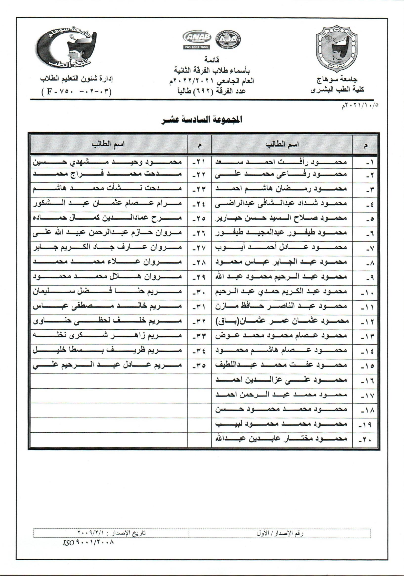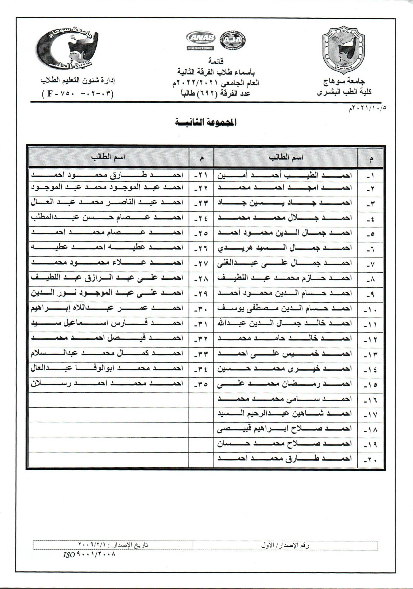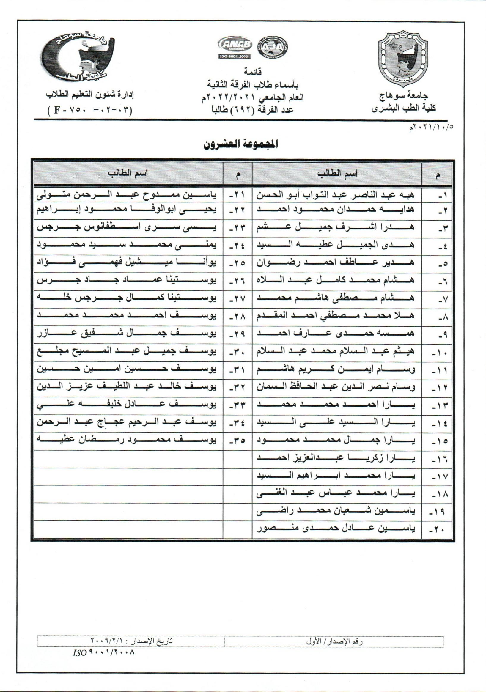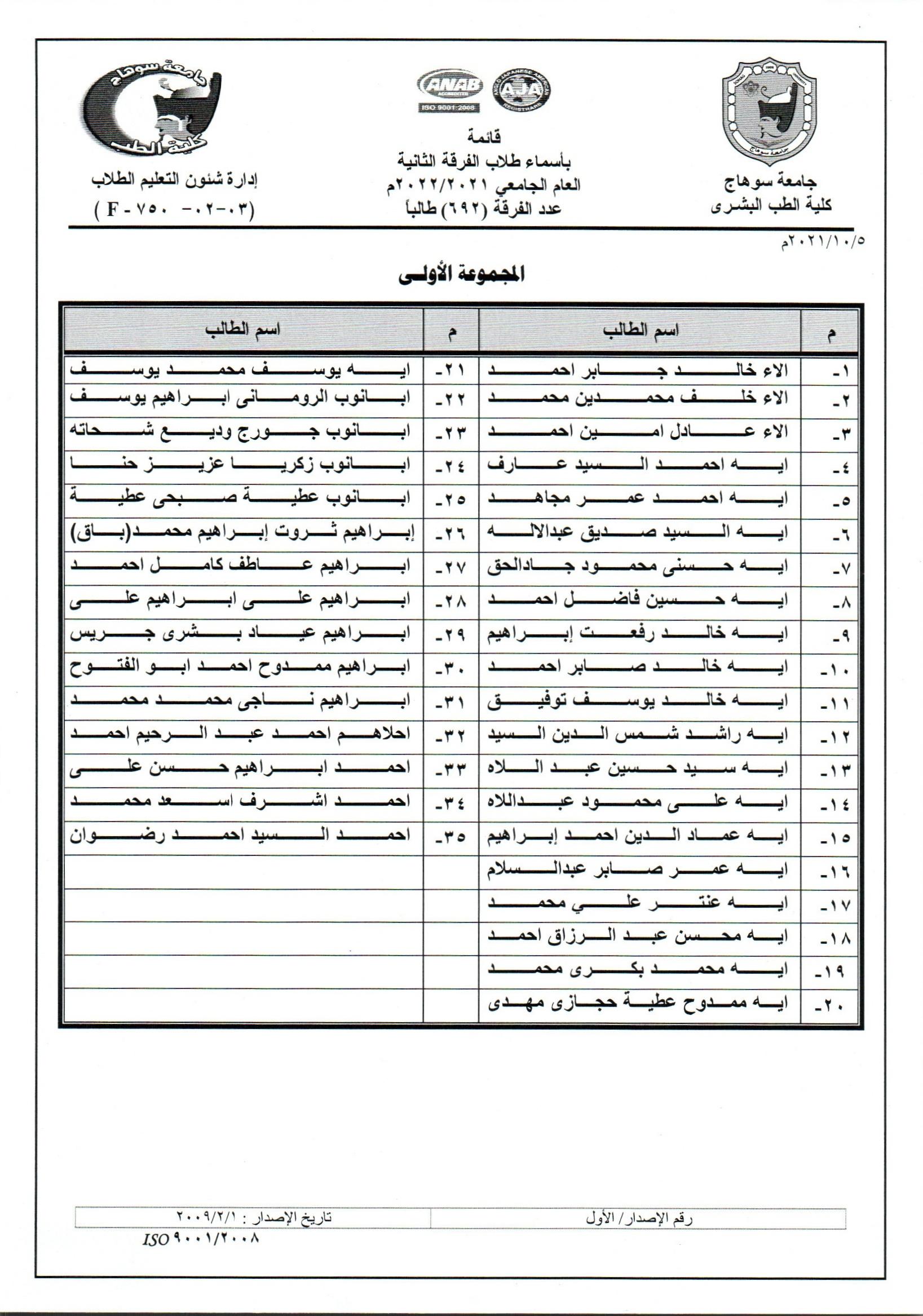 الرئيسية » Blog » قائمة بأسماء طلاب الفرقة الثانيةقائمة بأسماء طلاب الفرقة الثانيةby كلية الطب2021-10-06