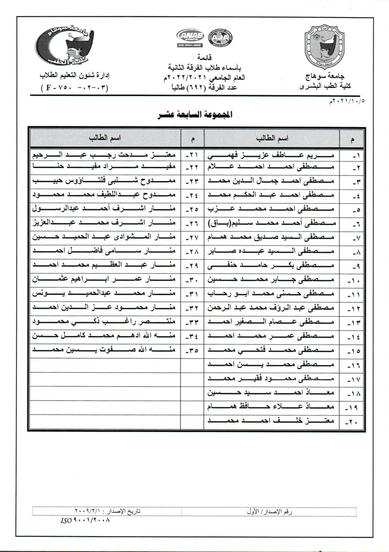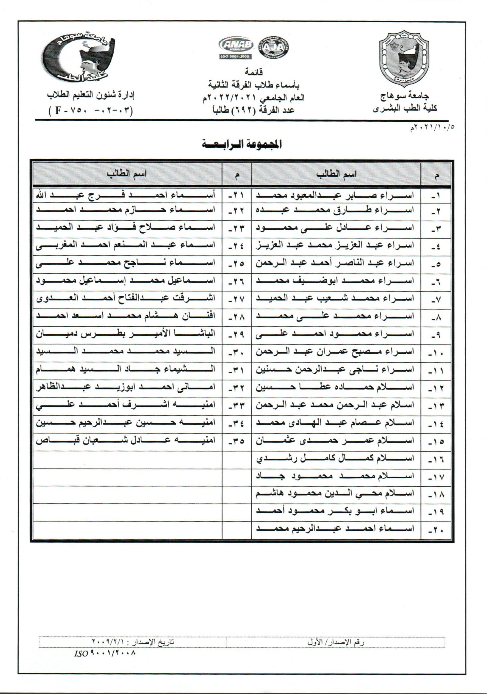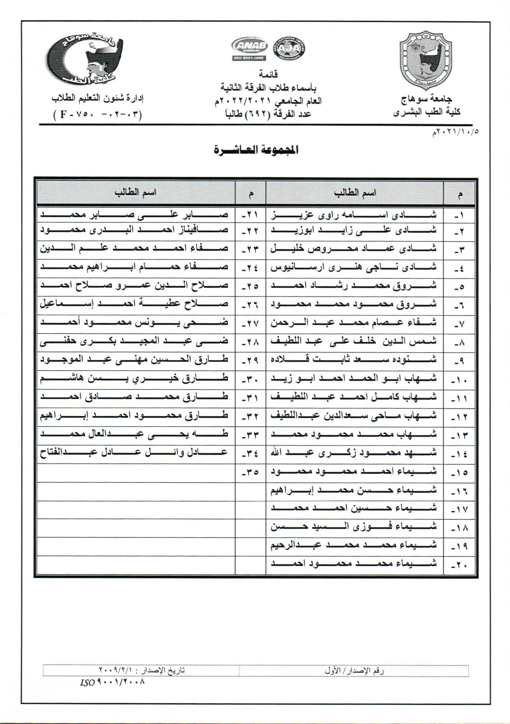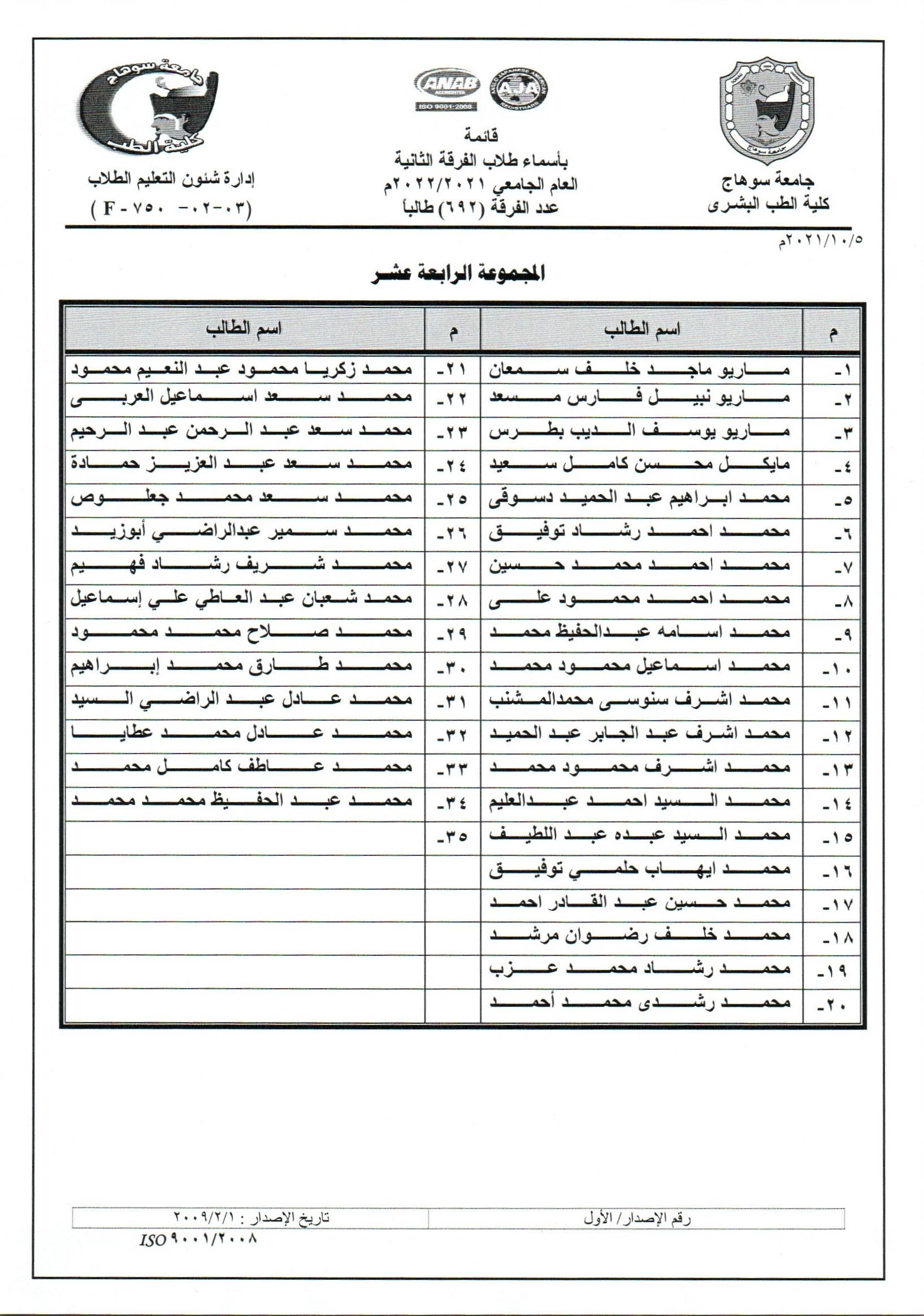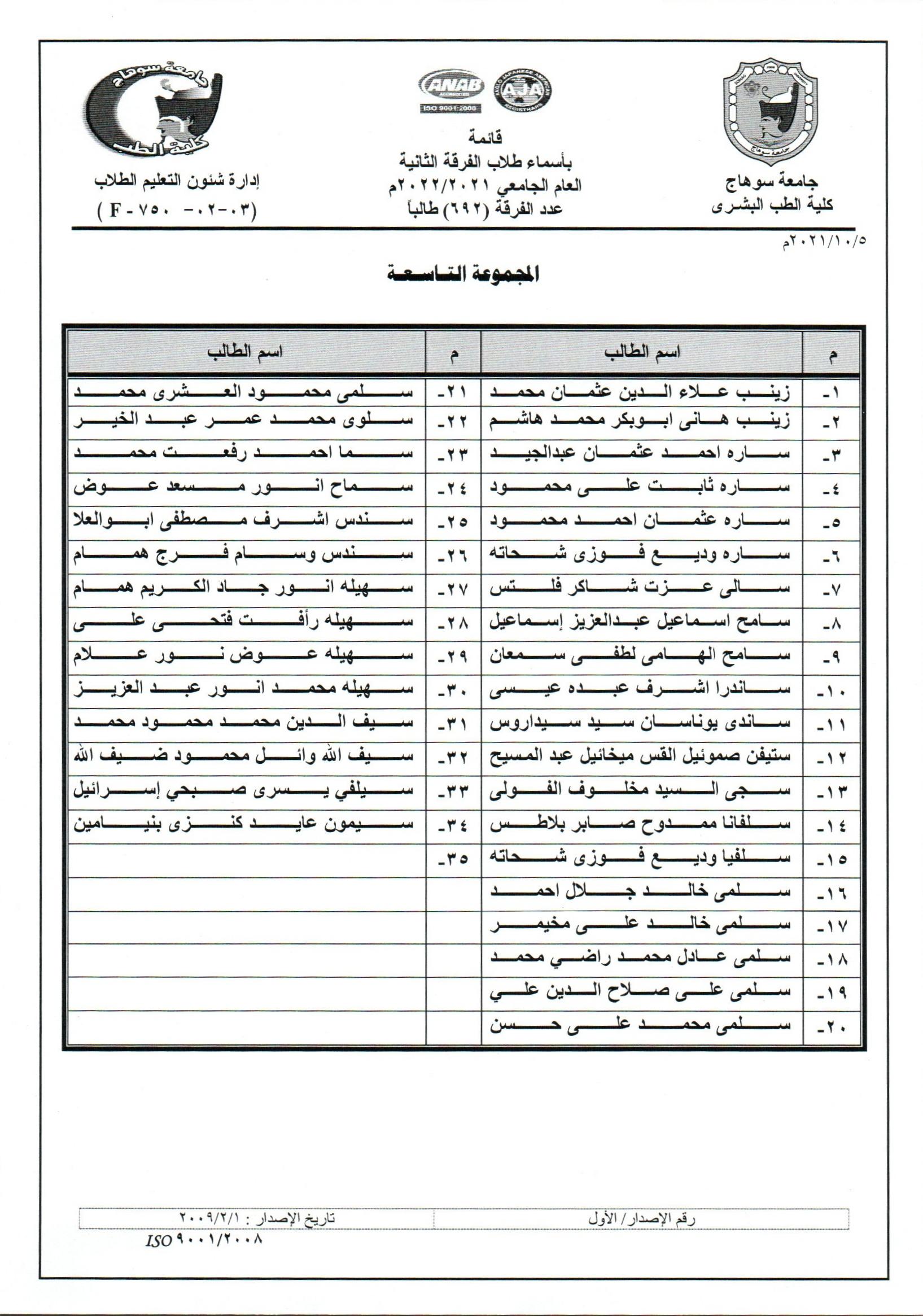 الرئيسية » Blog » قائمة بأسماء طلاب الفرقة الثانيةقائمة بأسماء طلاب الفرقة الثانيةby كلية الطب2021-10-06