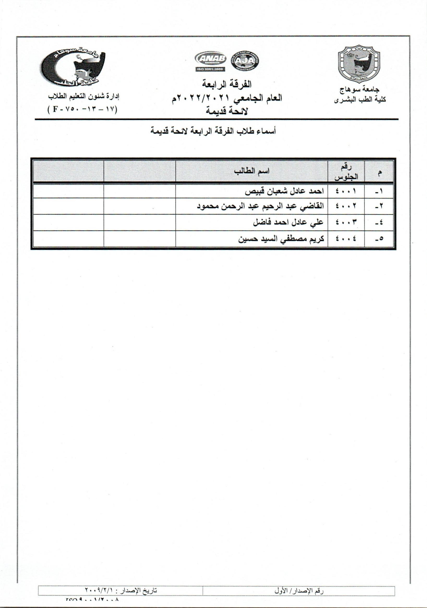 الرئيسية » Blog » قائمة بأسماء طلاب الفرقة الرابعة (لائحة قديمة) والجدول الدراسي الخاص بالائحة القديمة
