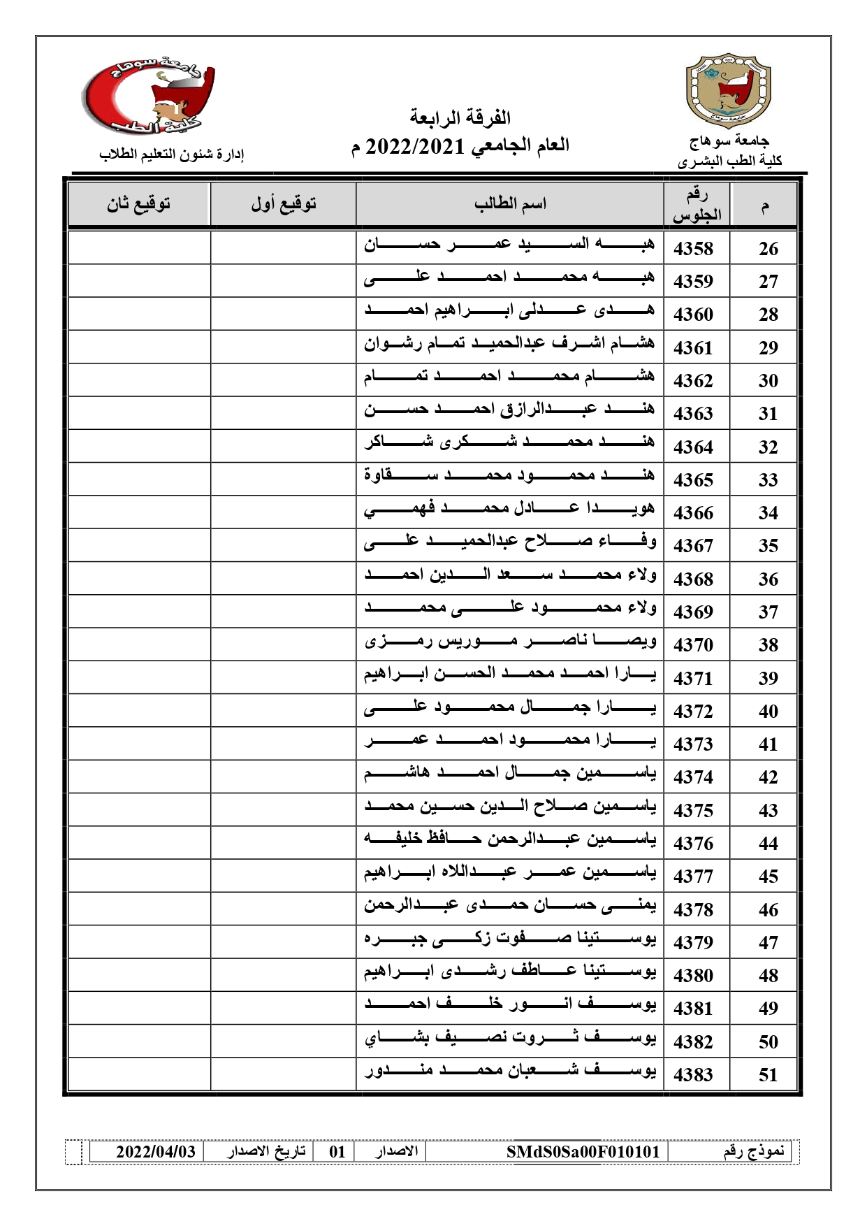 الرئيسية » Blog » قوائم لجان الفرقة الرابعة Block PED-419 العام الجامعي 2021/2022قوائم لجان الفرقة الرابعة Block PED-419 العام الجامعي 2021/2022by كلية الطب2022-10-30
