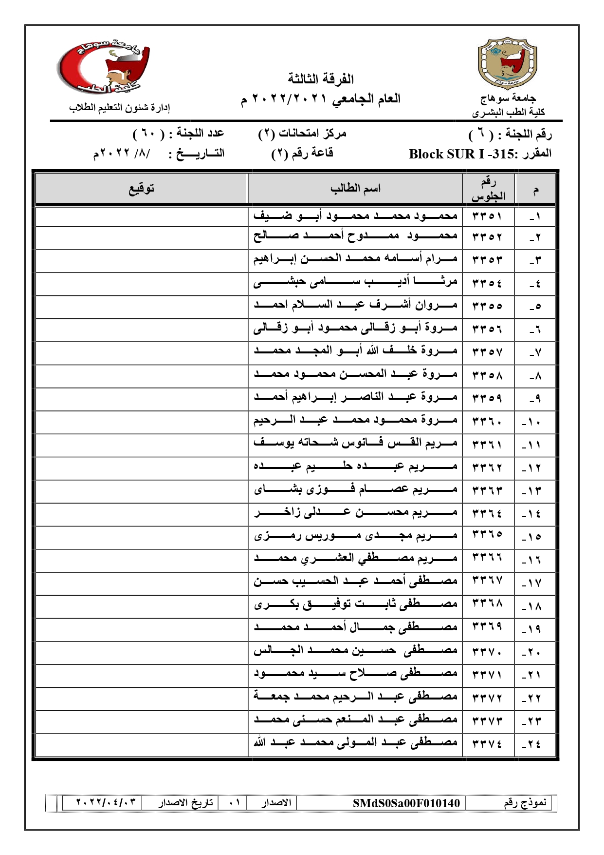 الرئيسية » Blog » قوائم لجان امتحانات الفرقة الثالثة (BLOCK SUR-315) العام الجامعي 2021/2022قوائم لجان امتحانات الفرقة الثالثة (BLOCK SUR-315) العام الجامعي 2021/2022by كلية الطب2022-08-012022-08-01