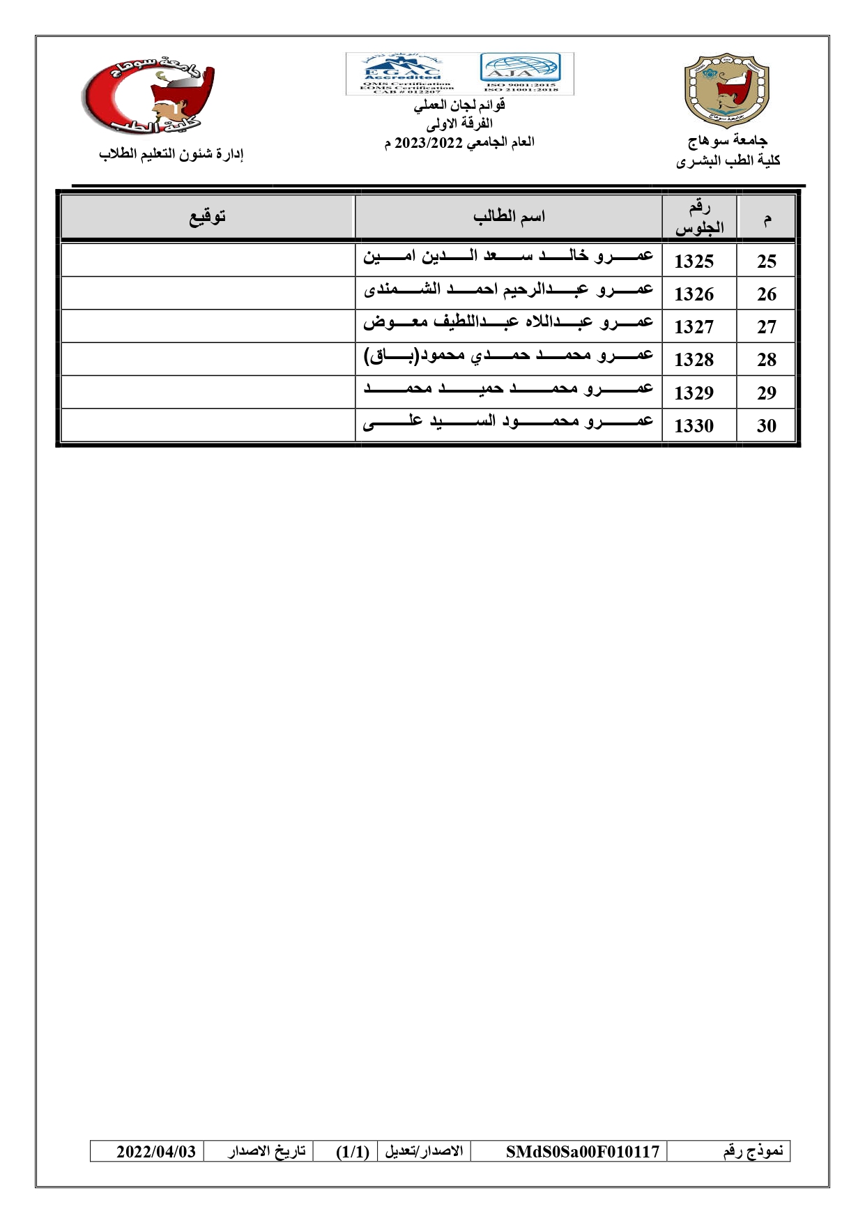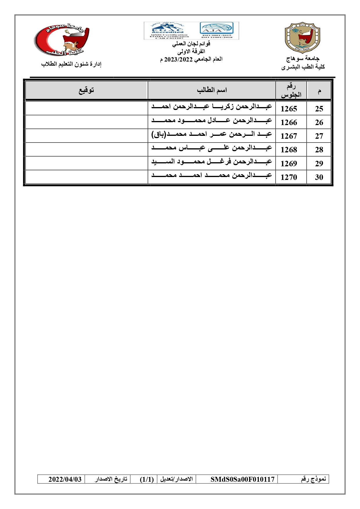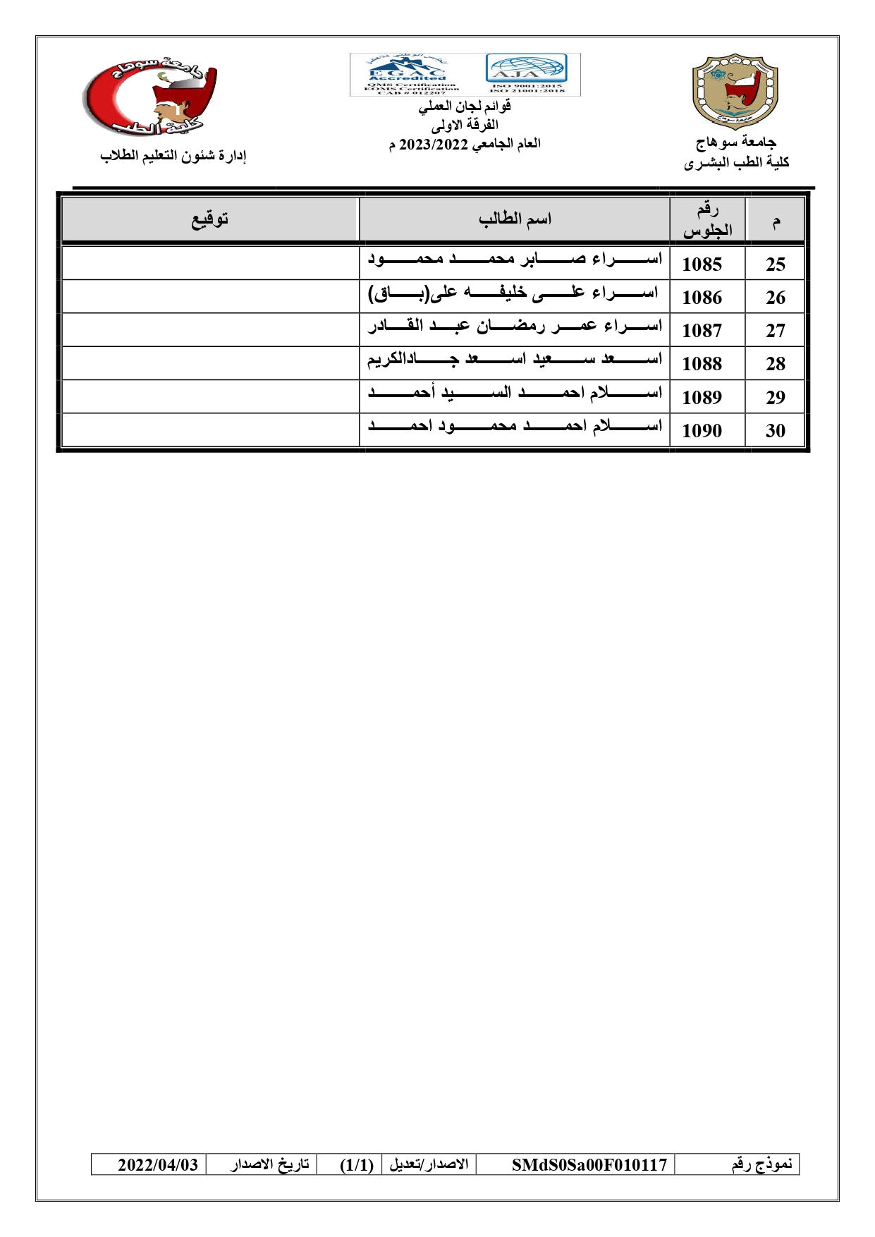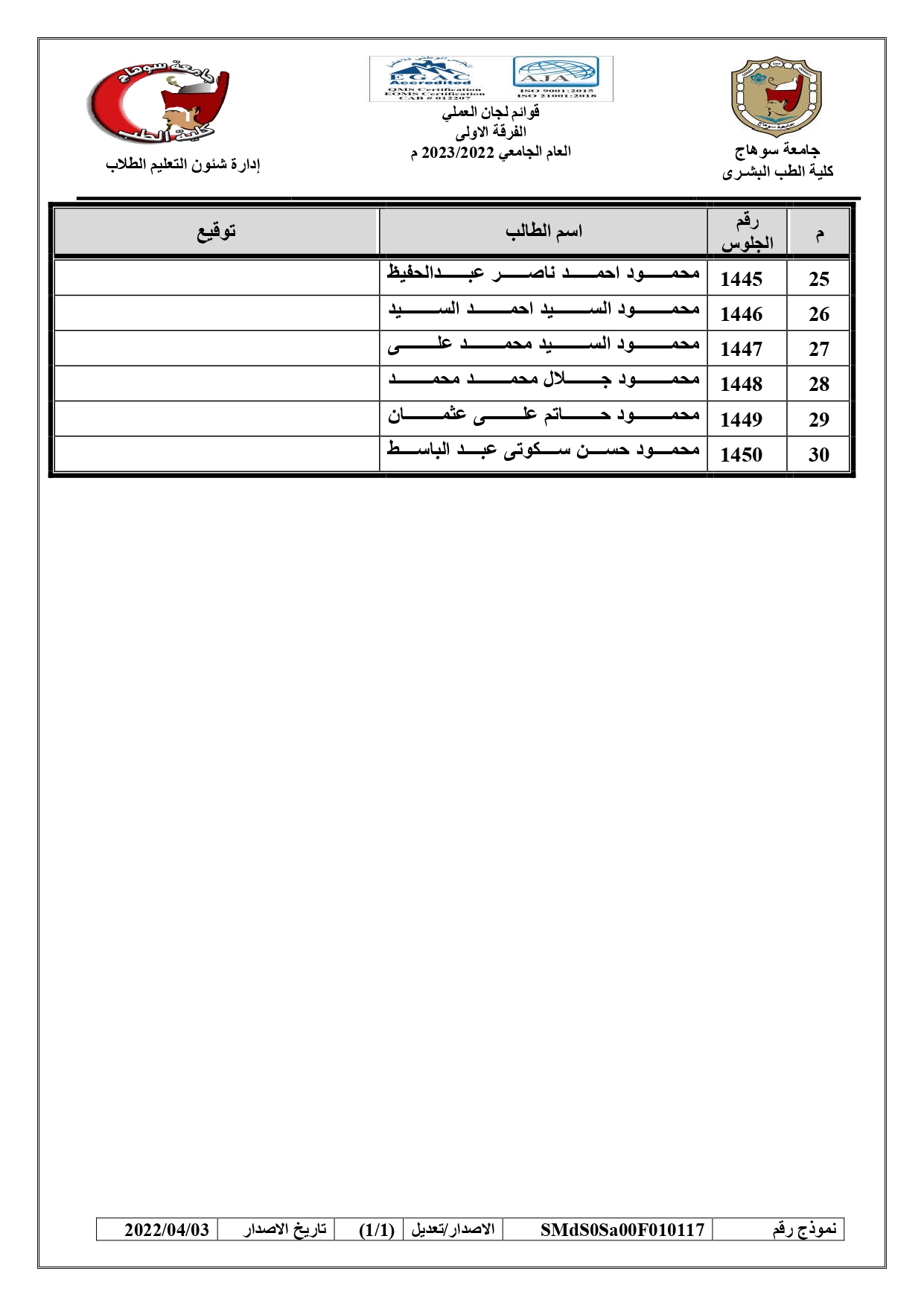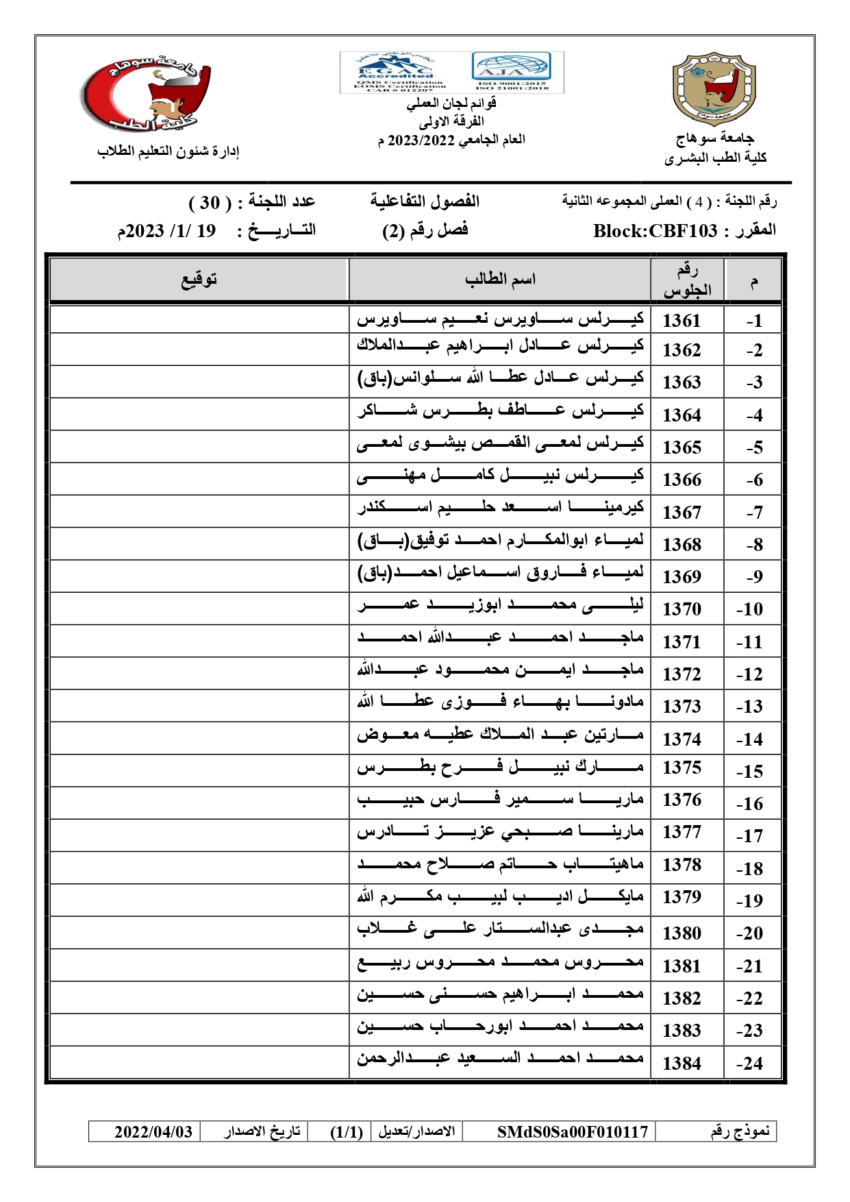 قوائم لجان امتحانات العملي الفرقة الاولى Block CBF 103