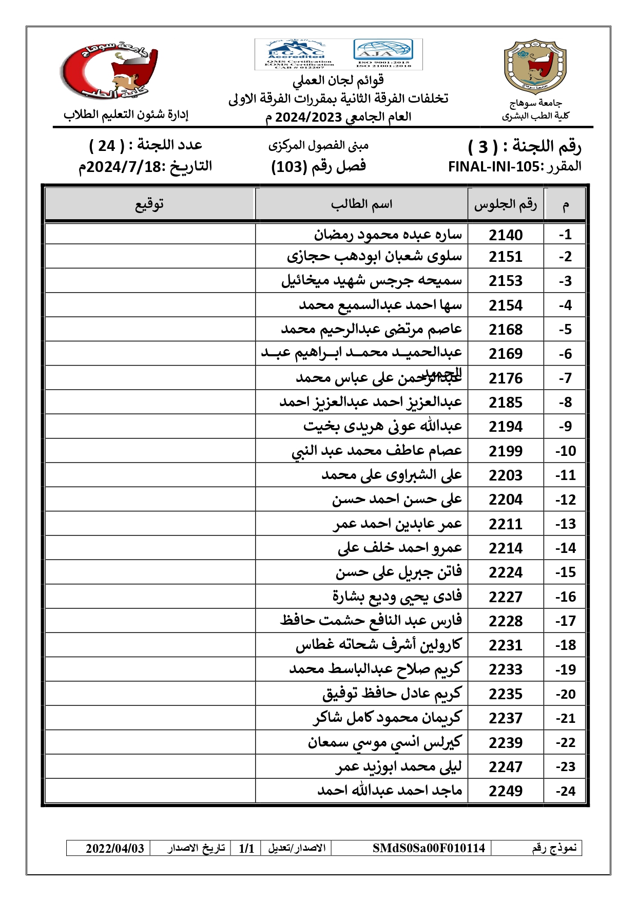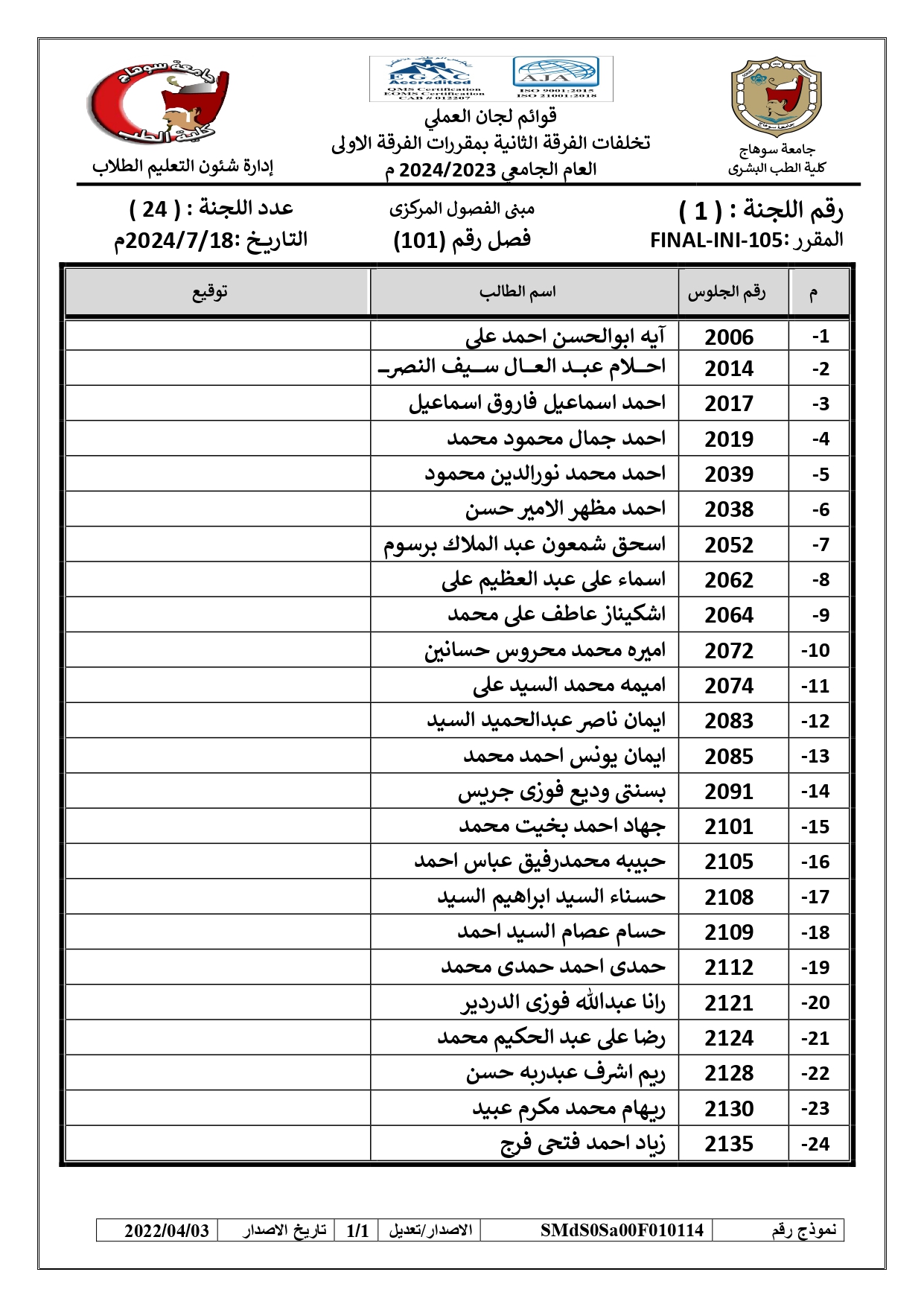 الرئيسية » Blog » قوائم لجان امتحانات العملي تخلفات الفرقة الثانية بمقررات الفرقة الاولىقوائم لجان امتحانات العملي تخلفات الفرقة الثانية بمقررات الفرقة الاولىby كلية الطب2024-07-17