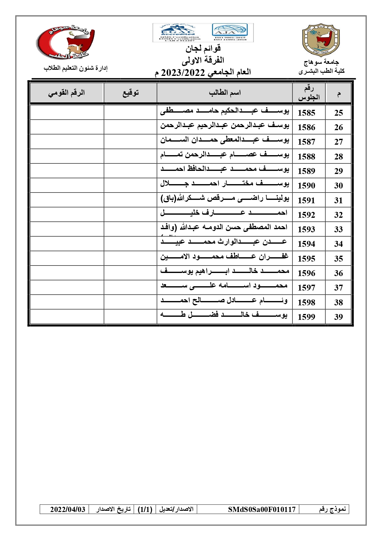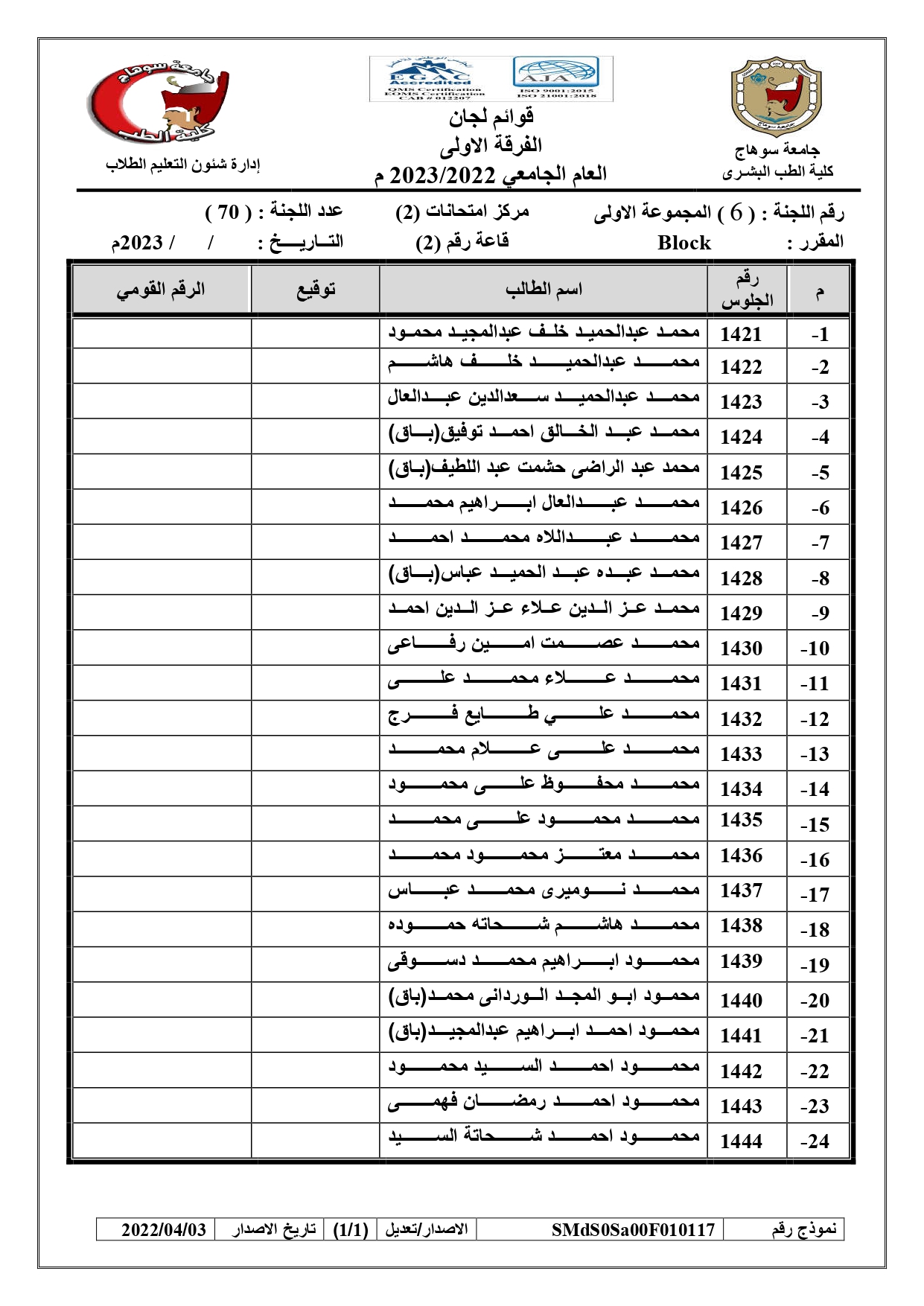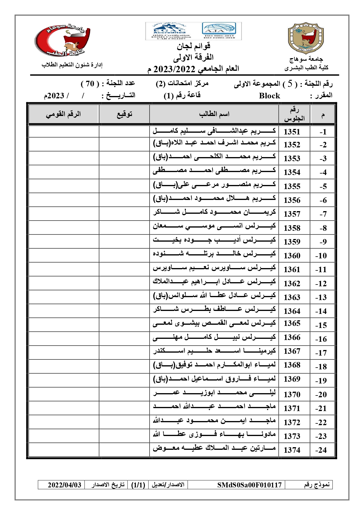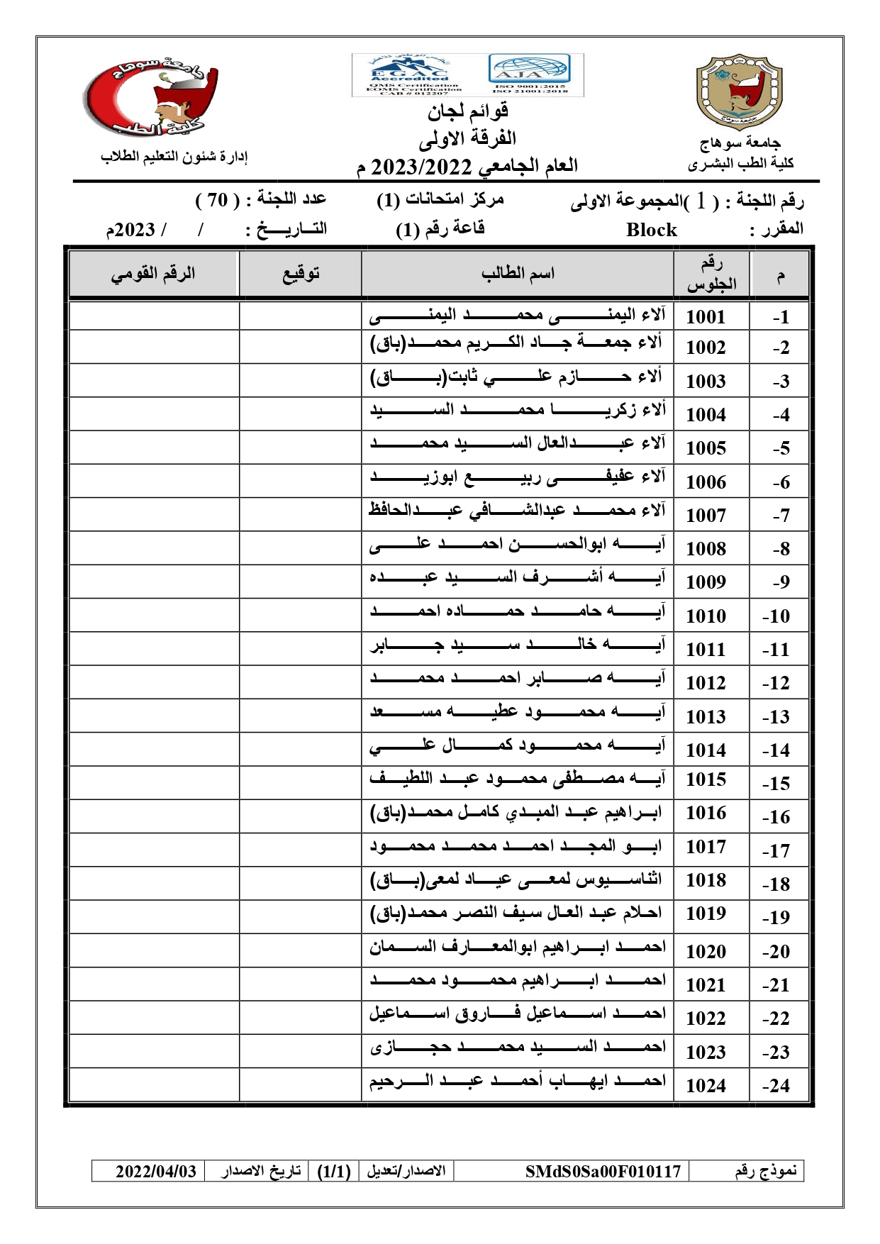 الرئيسية » Blog » قوائم لجان امتحانات الفرقة الاولى العام الجامعي 2022/2023 بالكواملقوائم لجان امتحانات الفرقة الاولى العام الجامعي 2022/2023 بالكواملby كلية الطب2023-01-17