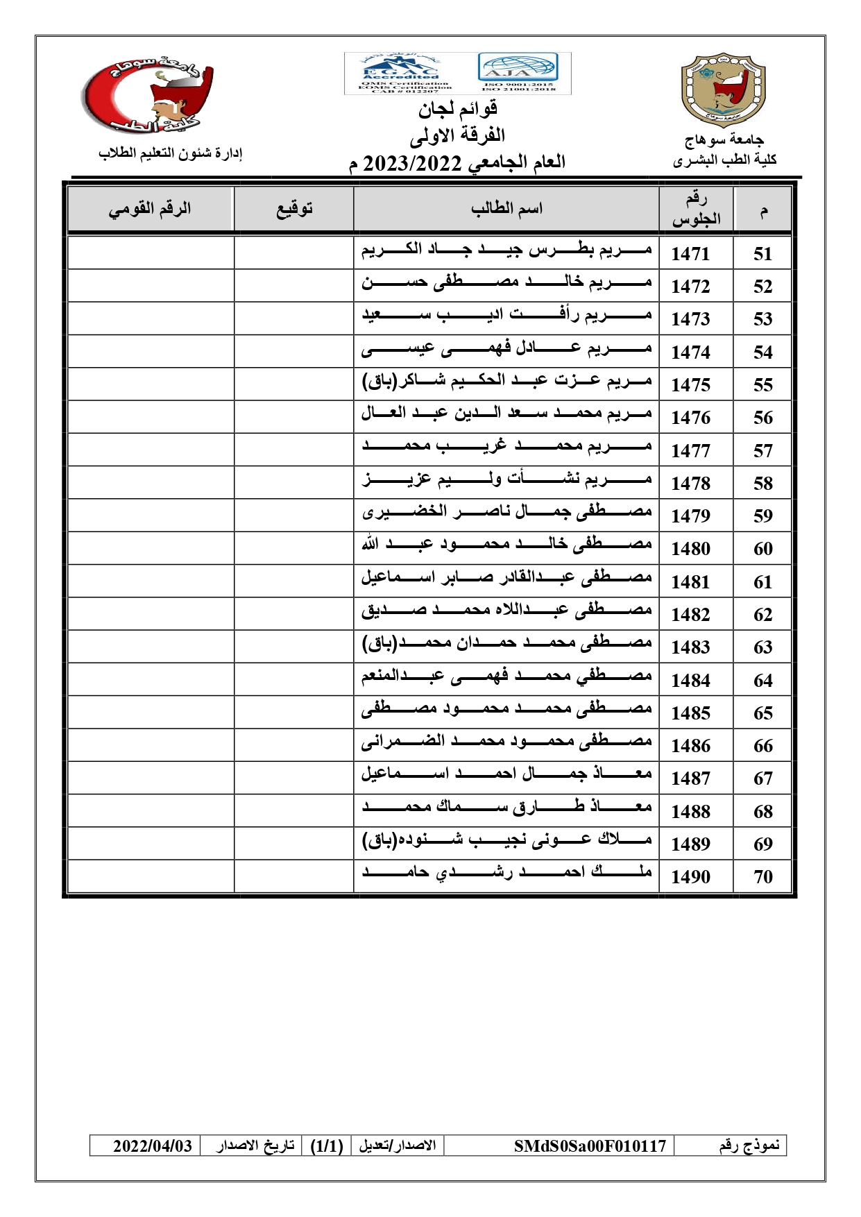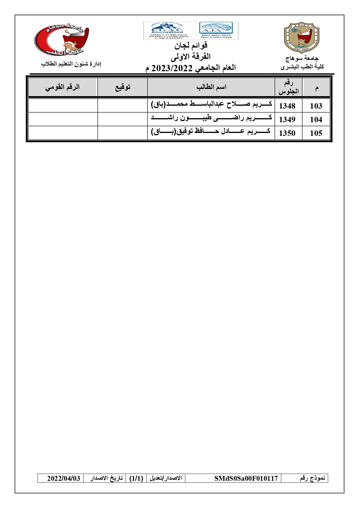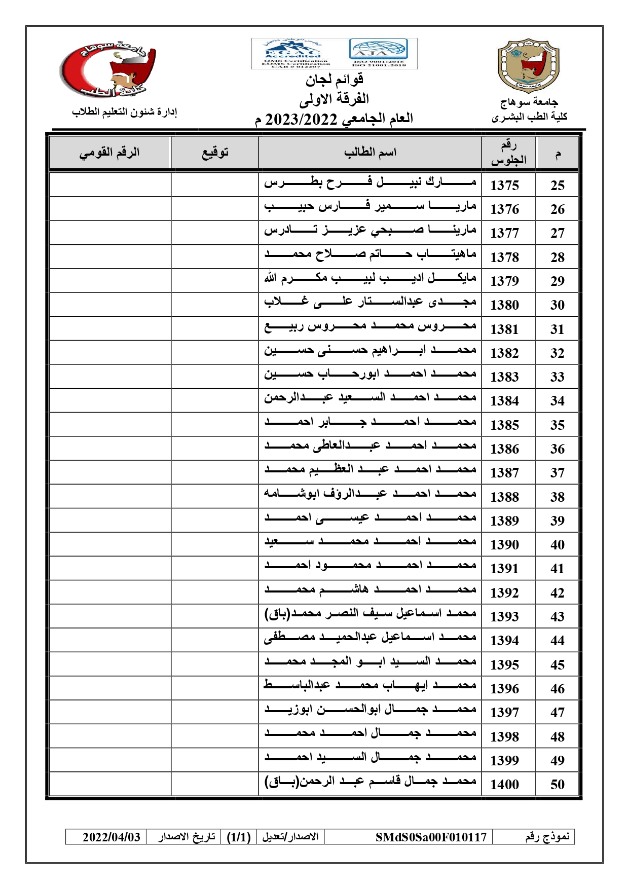 الرئيسية » Blog » قوائم لجان امتحانات الفرقة الاولى العام الجامعي 2022/2023 بالكواملقوائم لجان امتحانات الفرقة الاولى العام الجامعي 2022/2023 بالكواملby كلية الطب2023-01-17