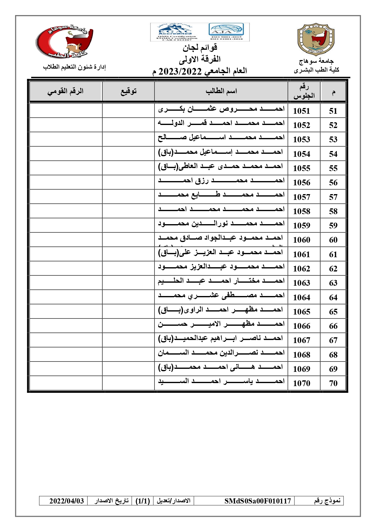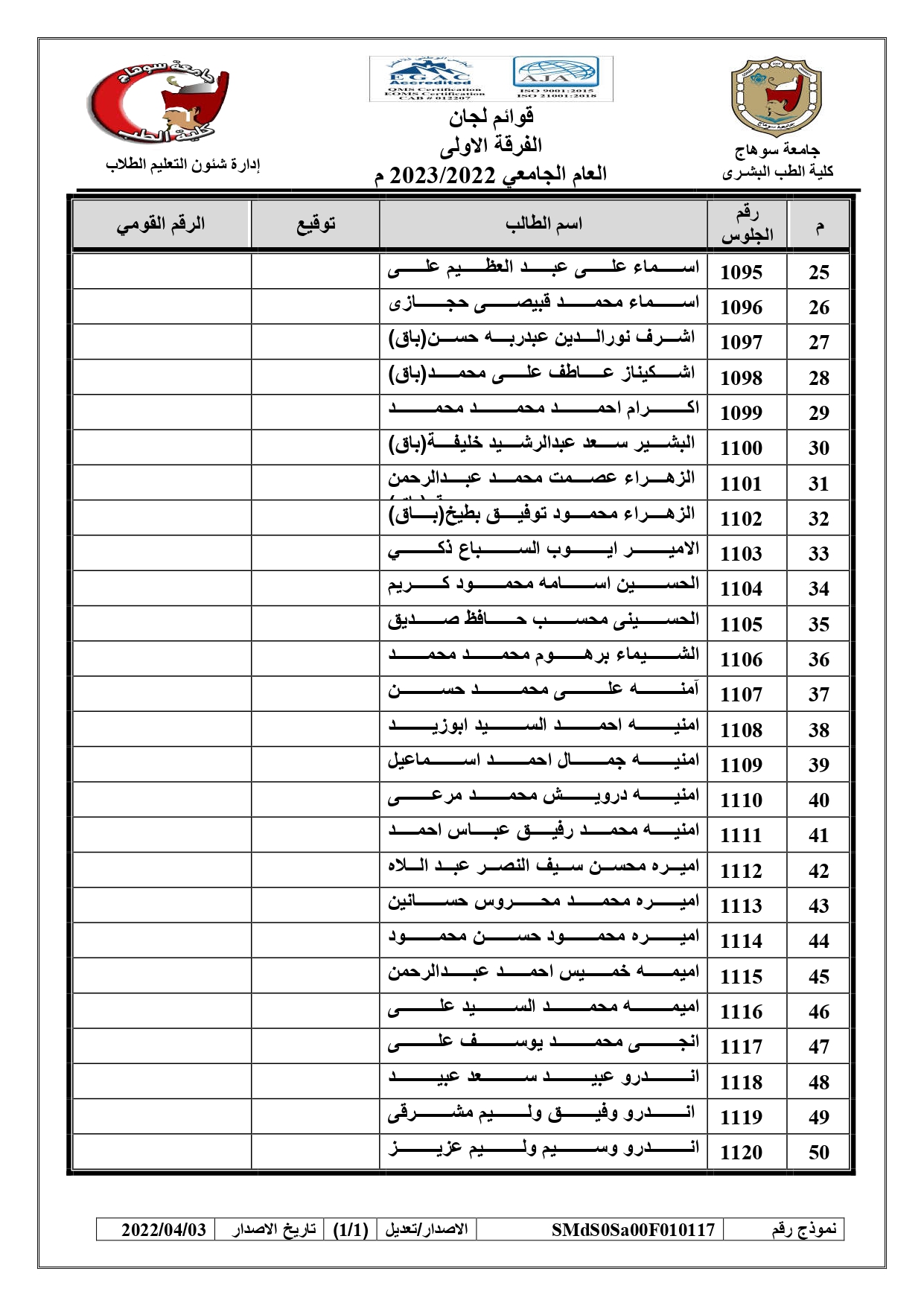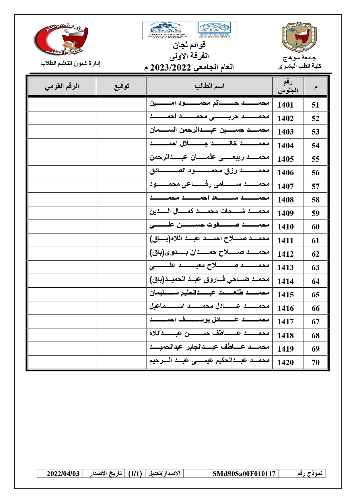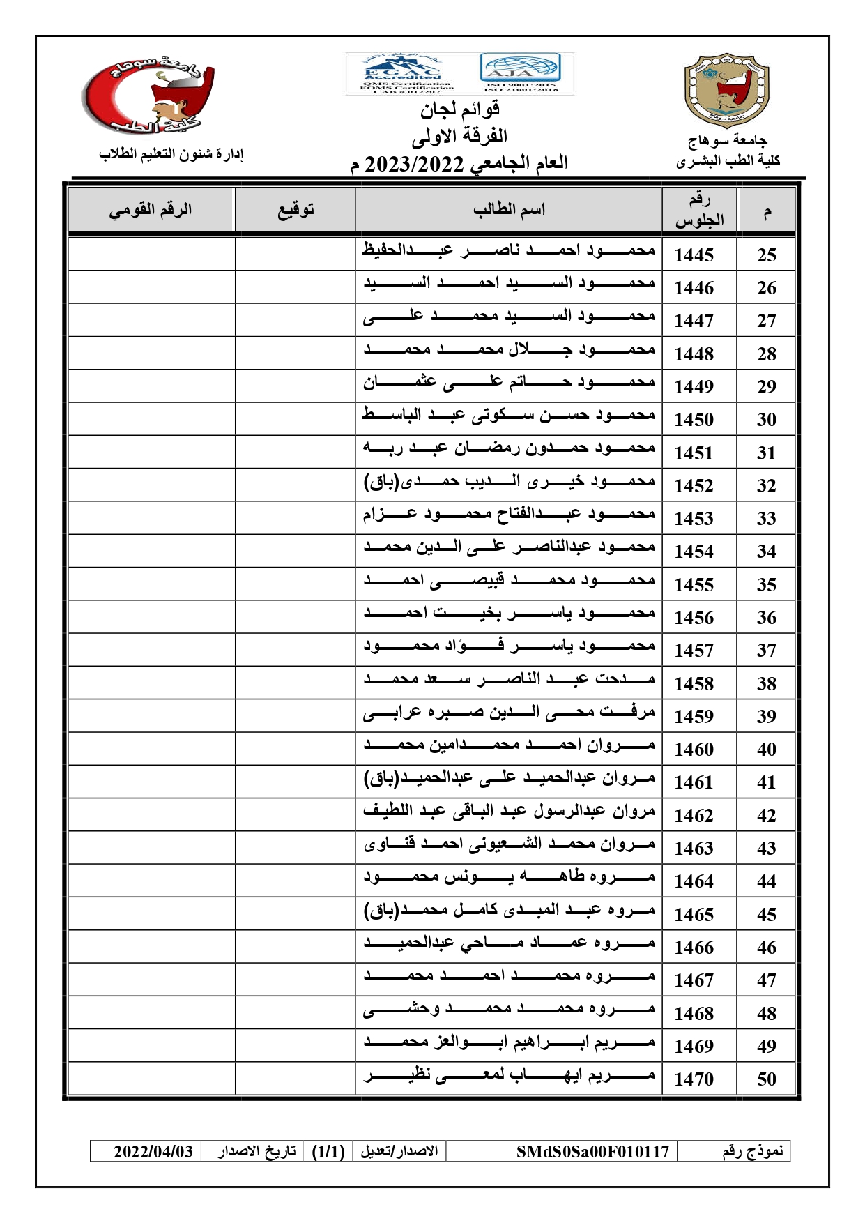 الرئيسية » Blog » قوائم لجان امتحانات الفرقة الاولى العام الجامعي 2022/2023 بالكواملقوائم لجان امتحانات الفرقة الاولى العام الجامعي 2022/2023 بالكواملby كلية الطب2023-01-17