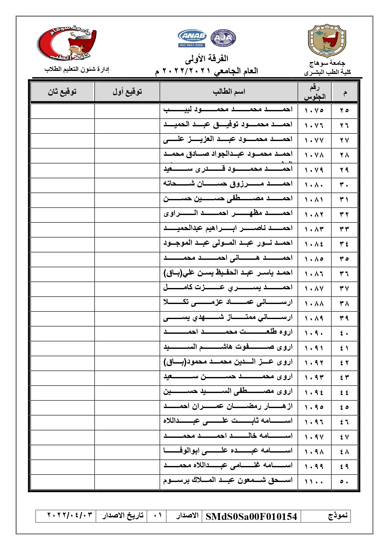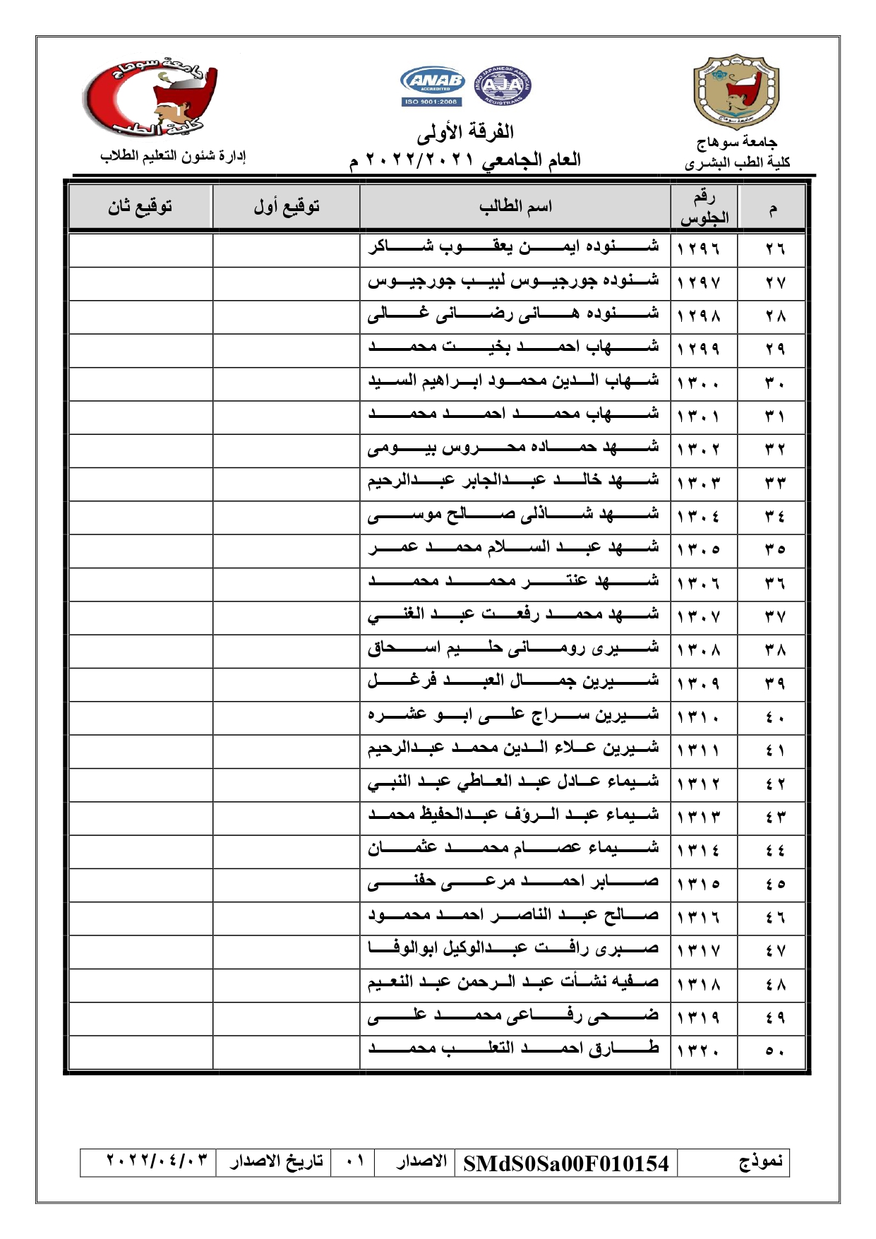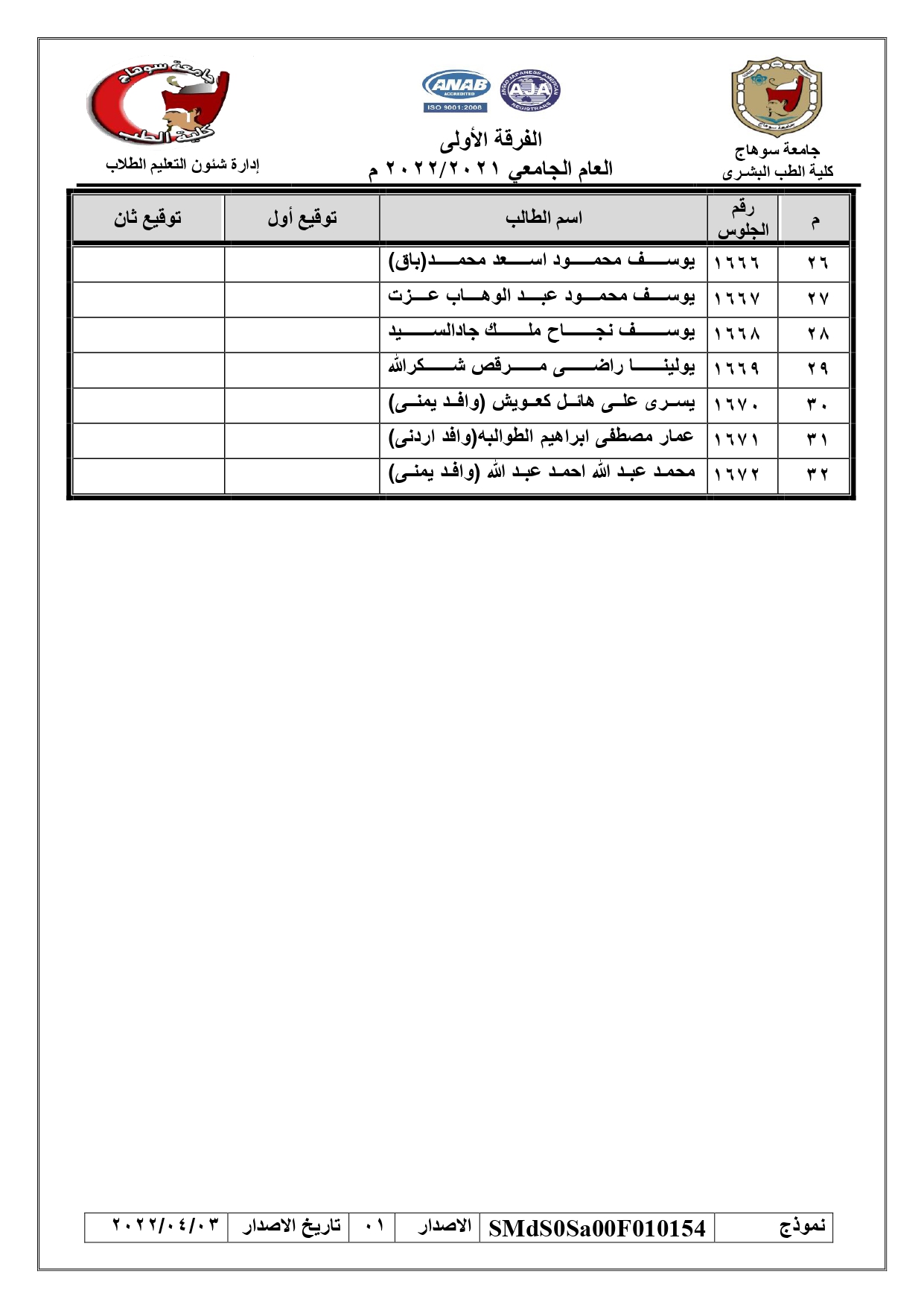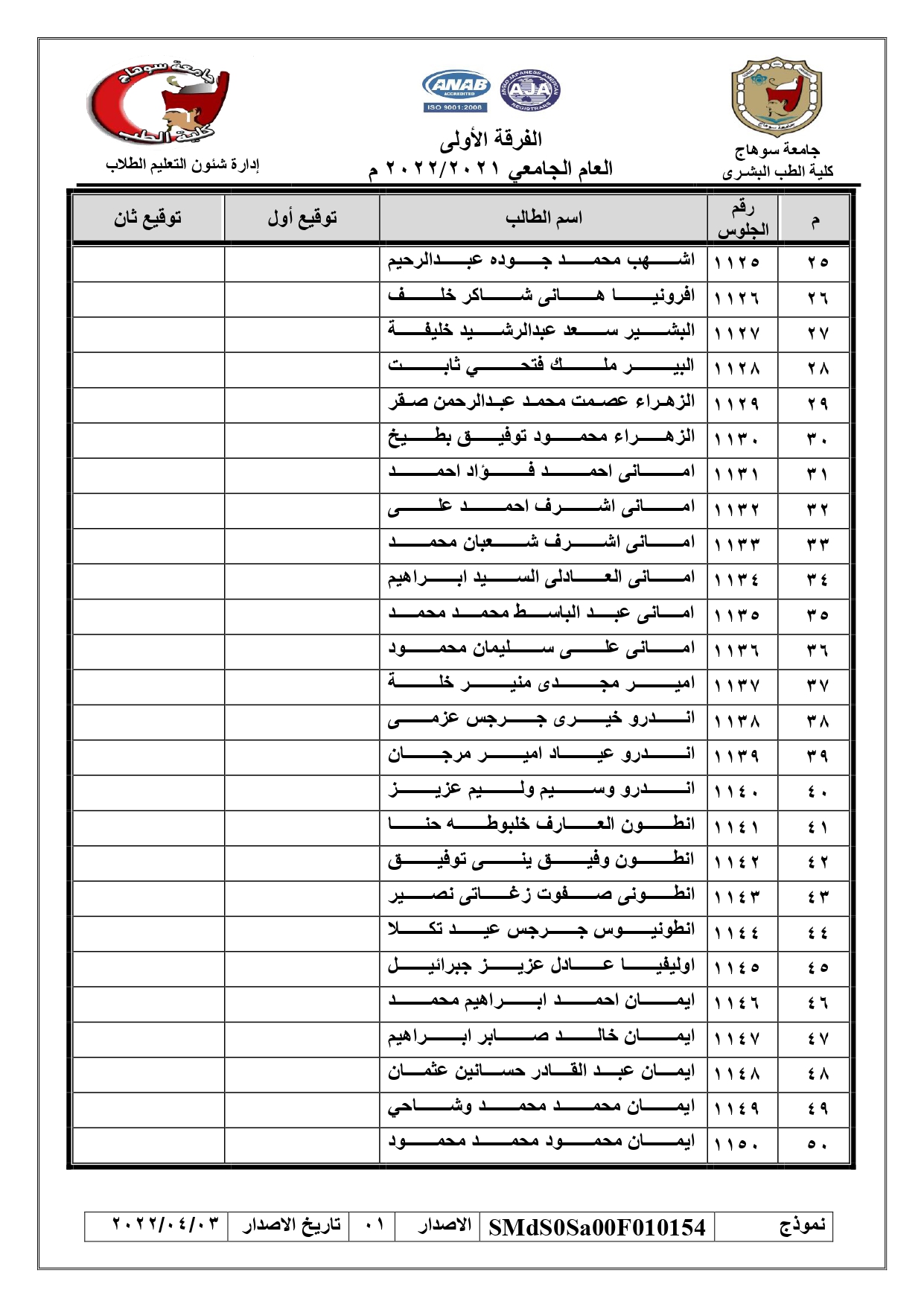 الرئيسية » Blog » قوائم لجان امتحانات الفرقة الاولى امتحان (BLOCK IPC-104) العام الجامعي 2021/2022قوائم لجان امتحانات الفرقة الاولى امتحان (BLOCK IPC-104) العام الجامعي 2021/2022by كلية الطب2022-07-31