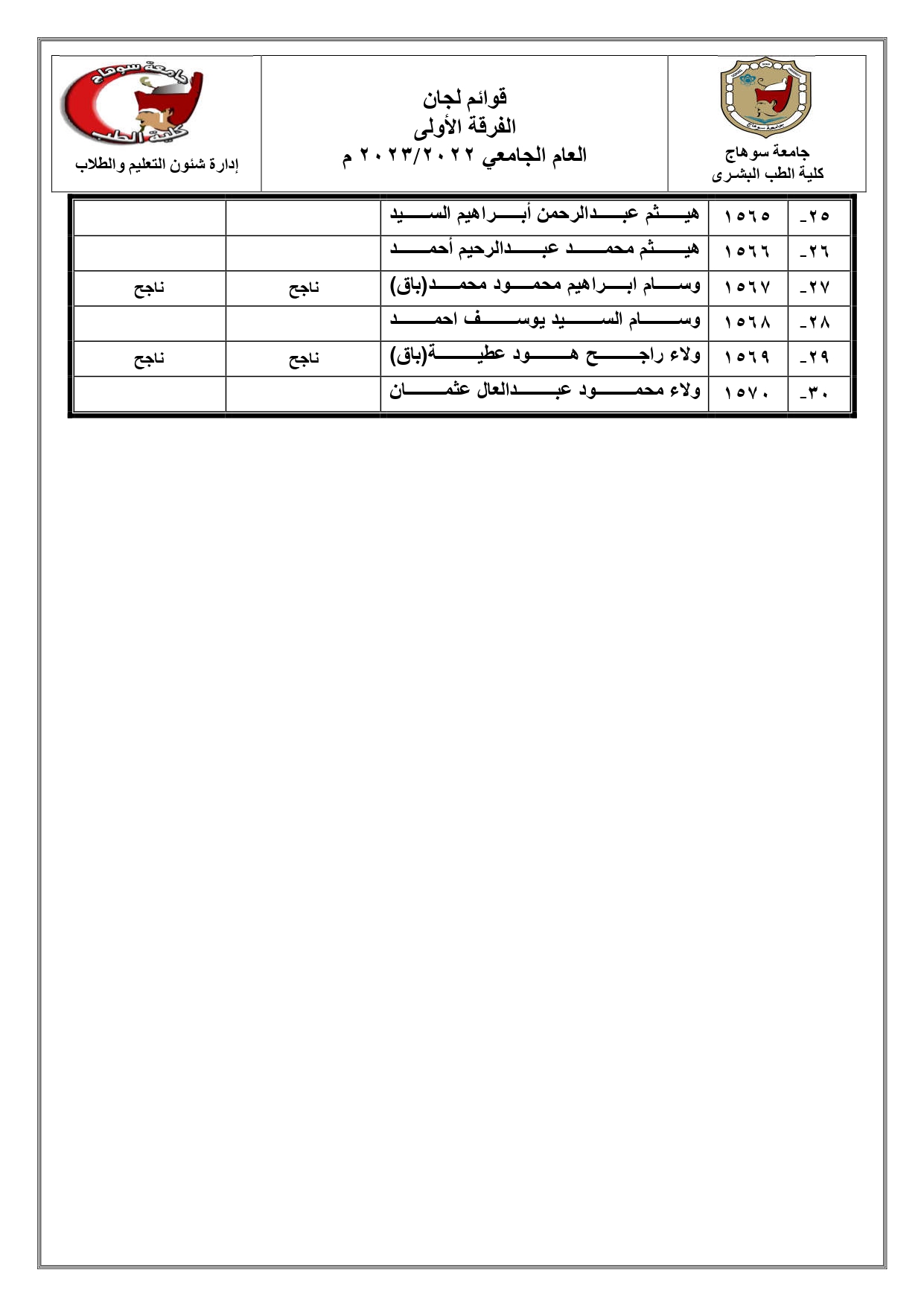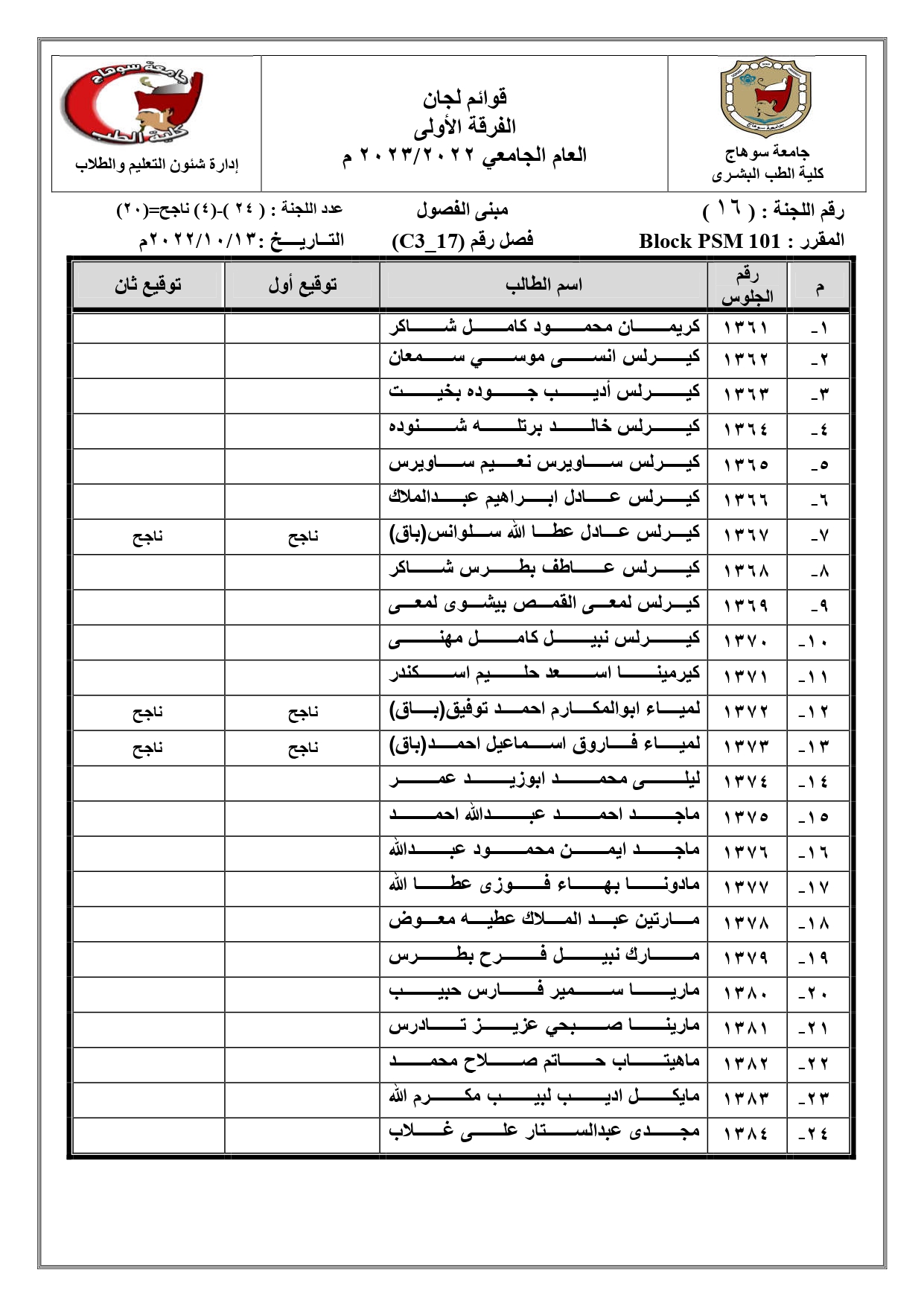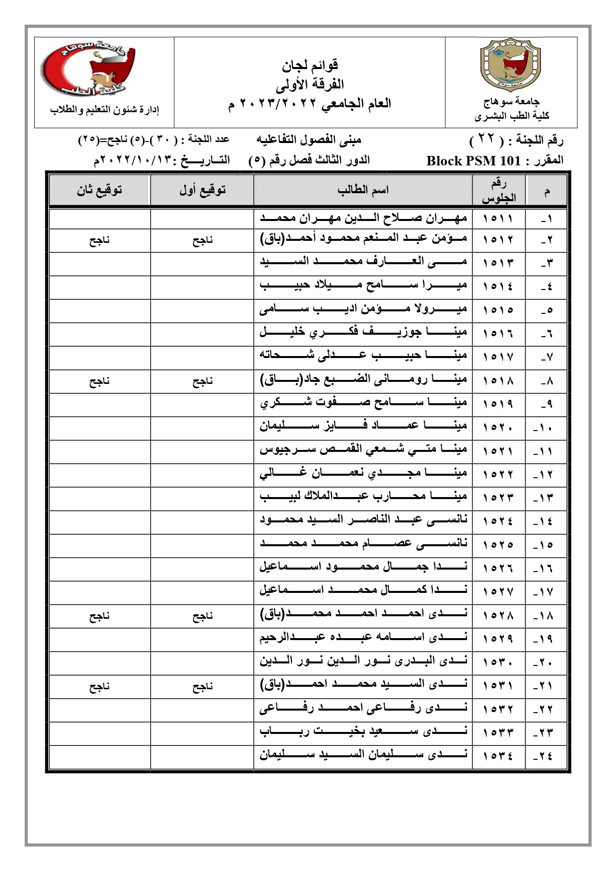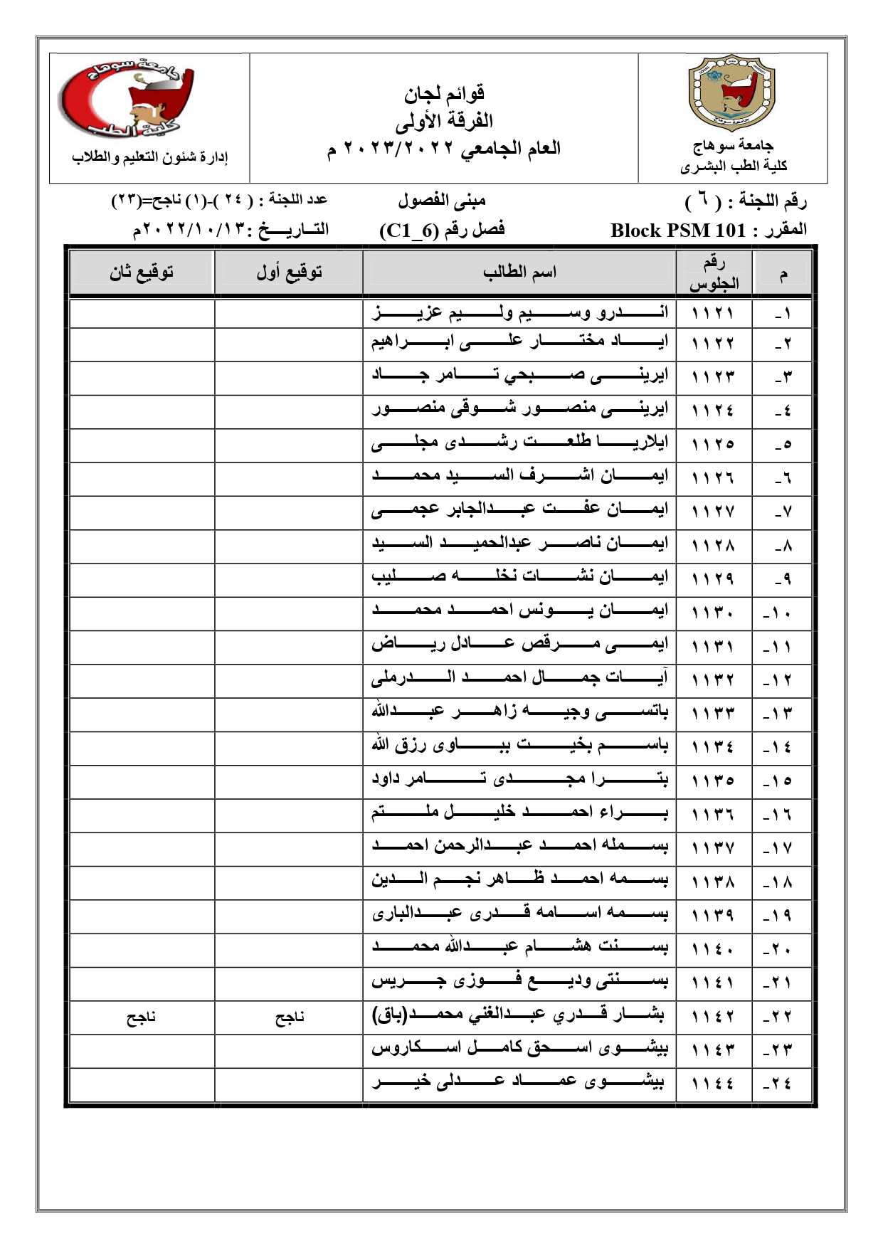 الرئيسية » Blog » قوائم لجان امتحانات الفرقة الاولى Block PSM-101 الدور الاول الفصل الدراسي الاول العام الجامعي 2022/2023قوائم لجان امتحانات الفرقة الاولى Block PSM-101 الدور الاول الفصل الدراسي الاول العام الجامعي 2022/2023by كلية الطب2022-10-102022-10-11
