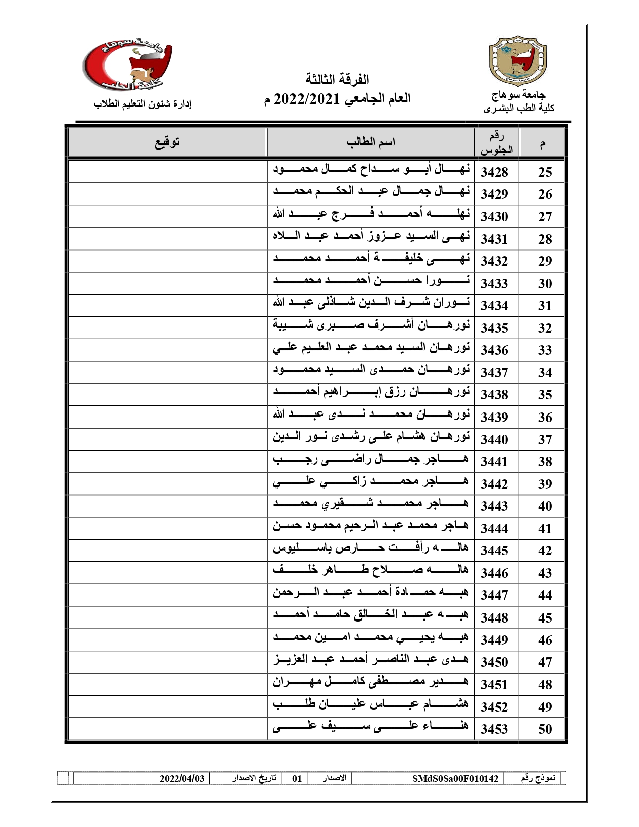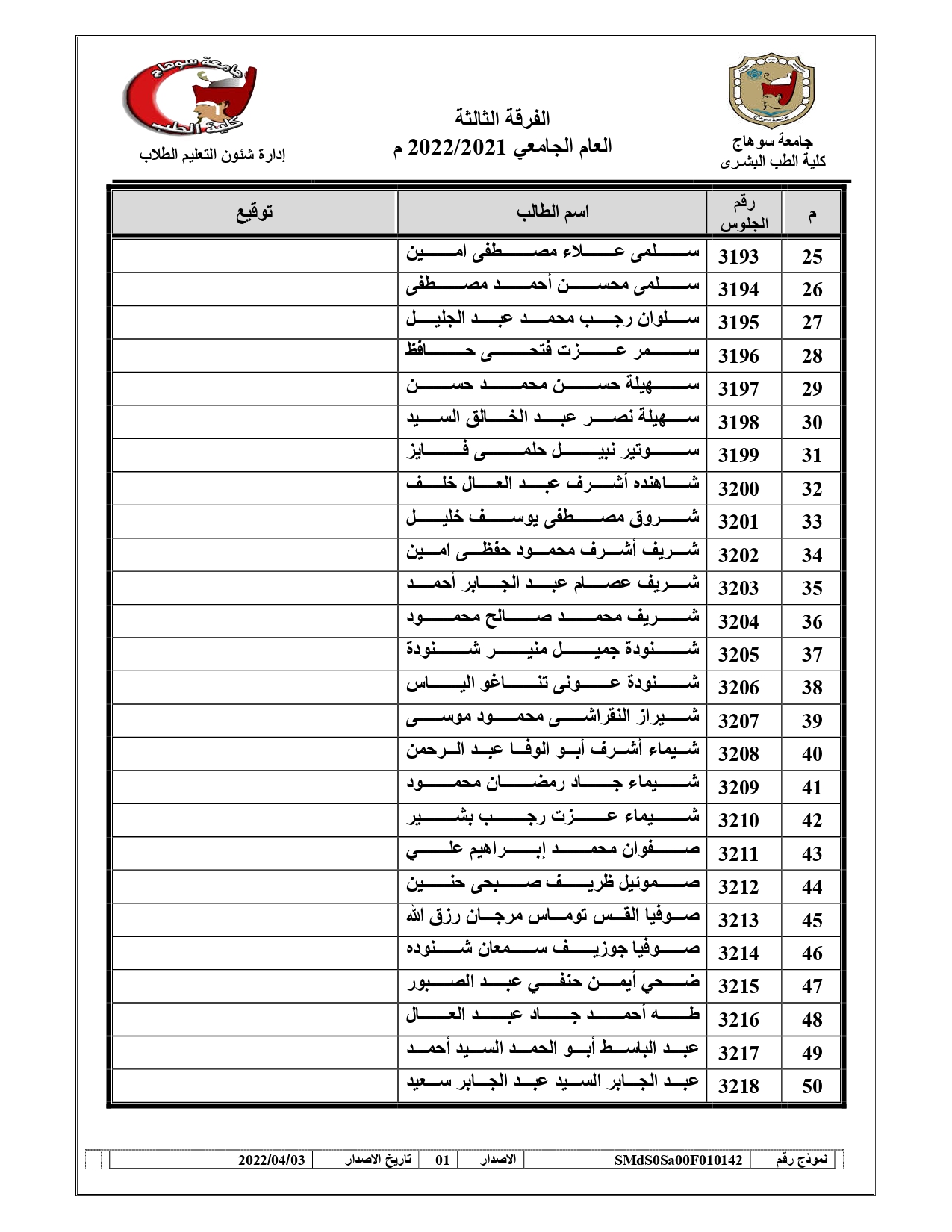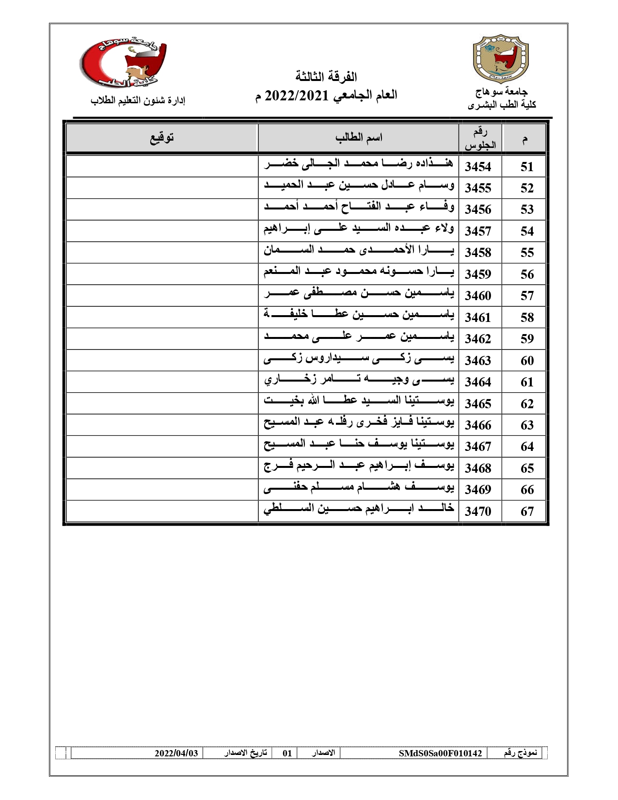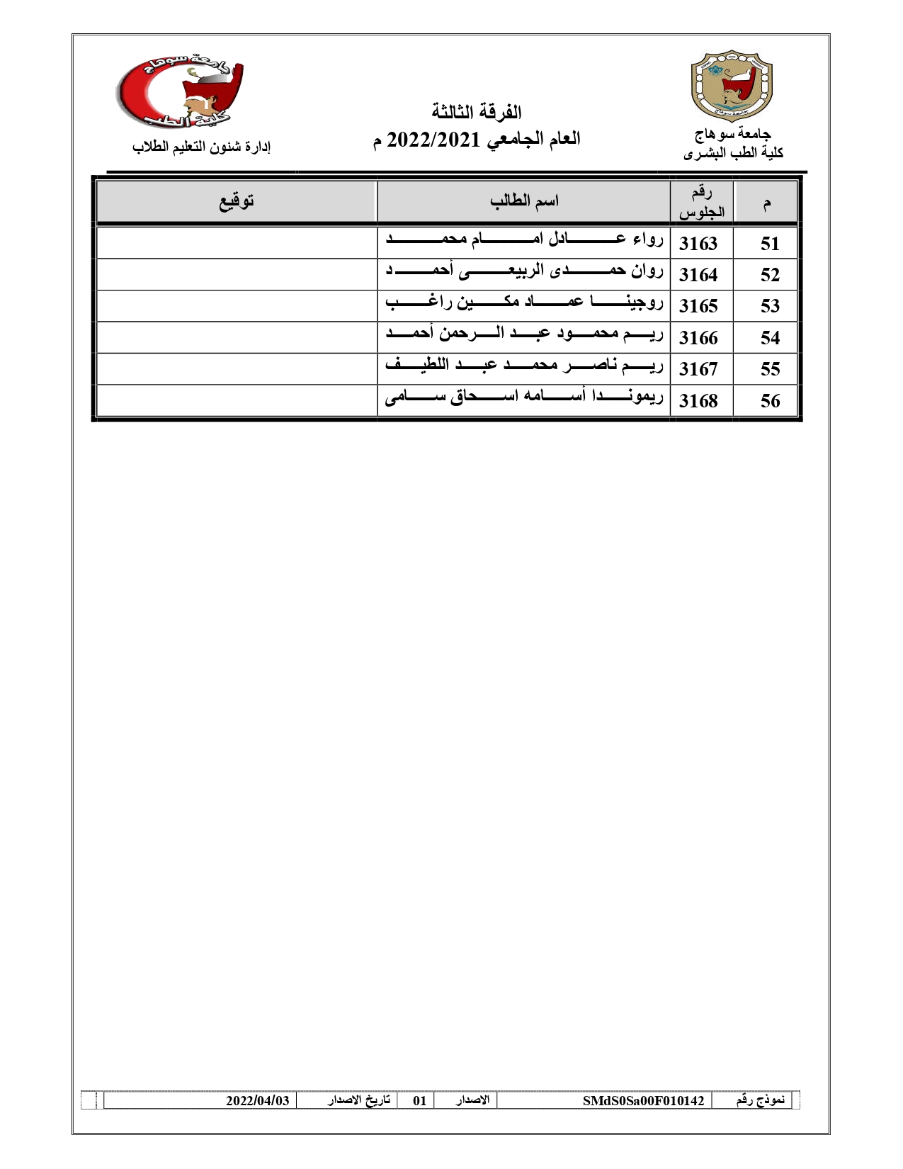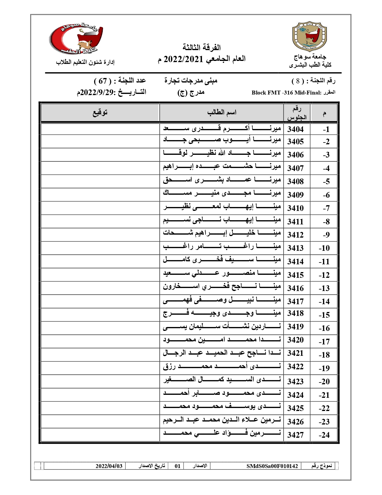 قوائم لجان امتحانات الفرقة الثالثة BLOCK FMT-316