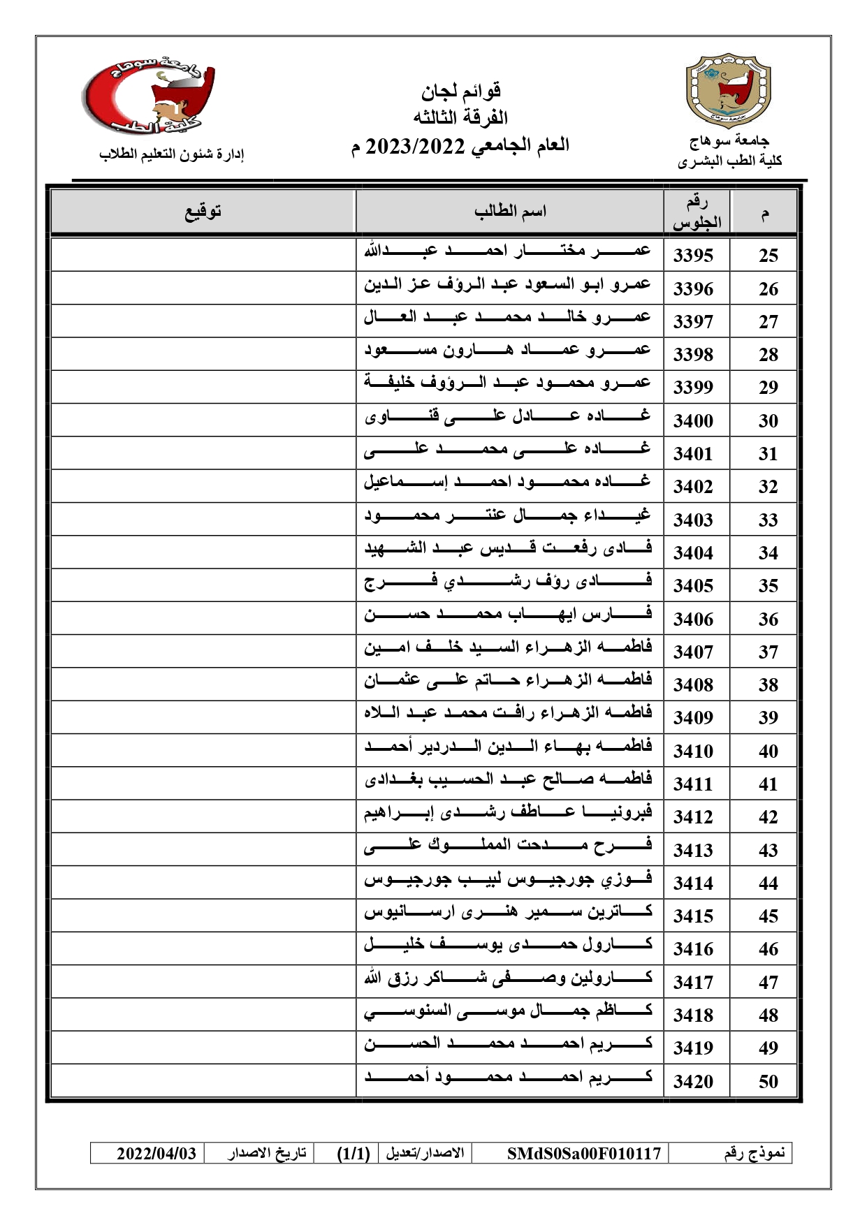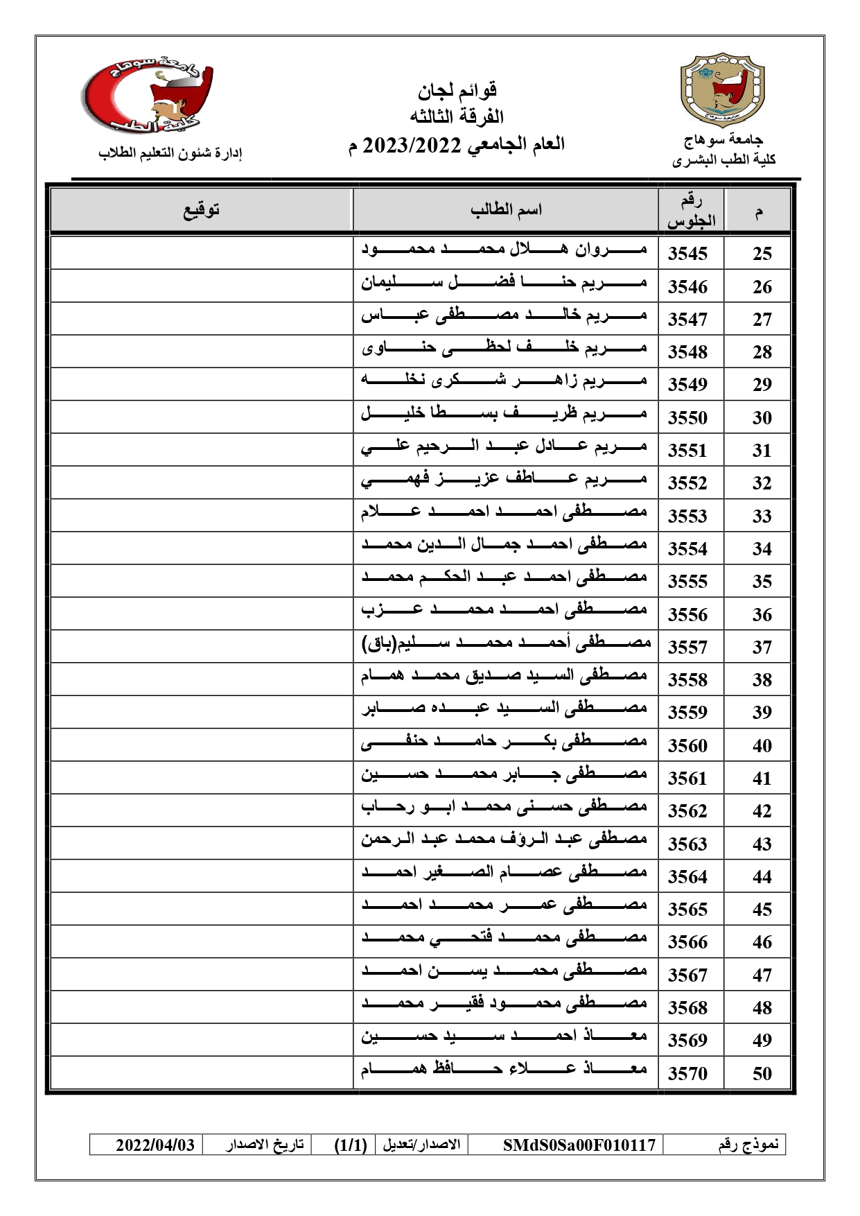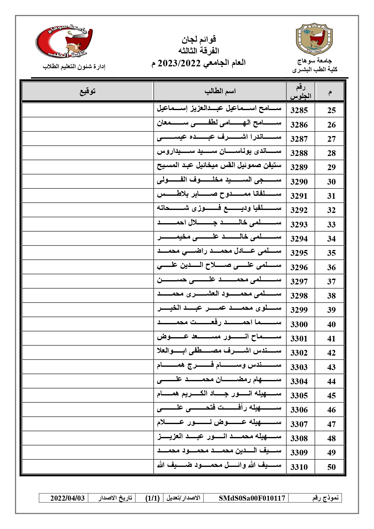 قوائم لجان امتحانات الفرقة الثالثة Final Block NEU-301 العام الجامعي 2022/2023