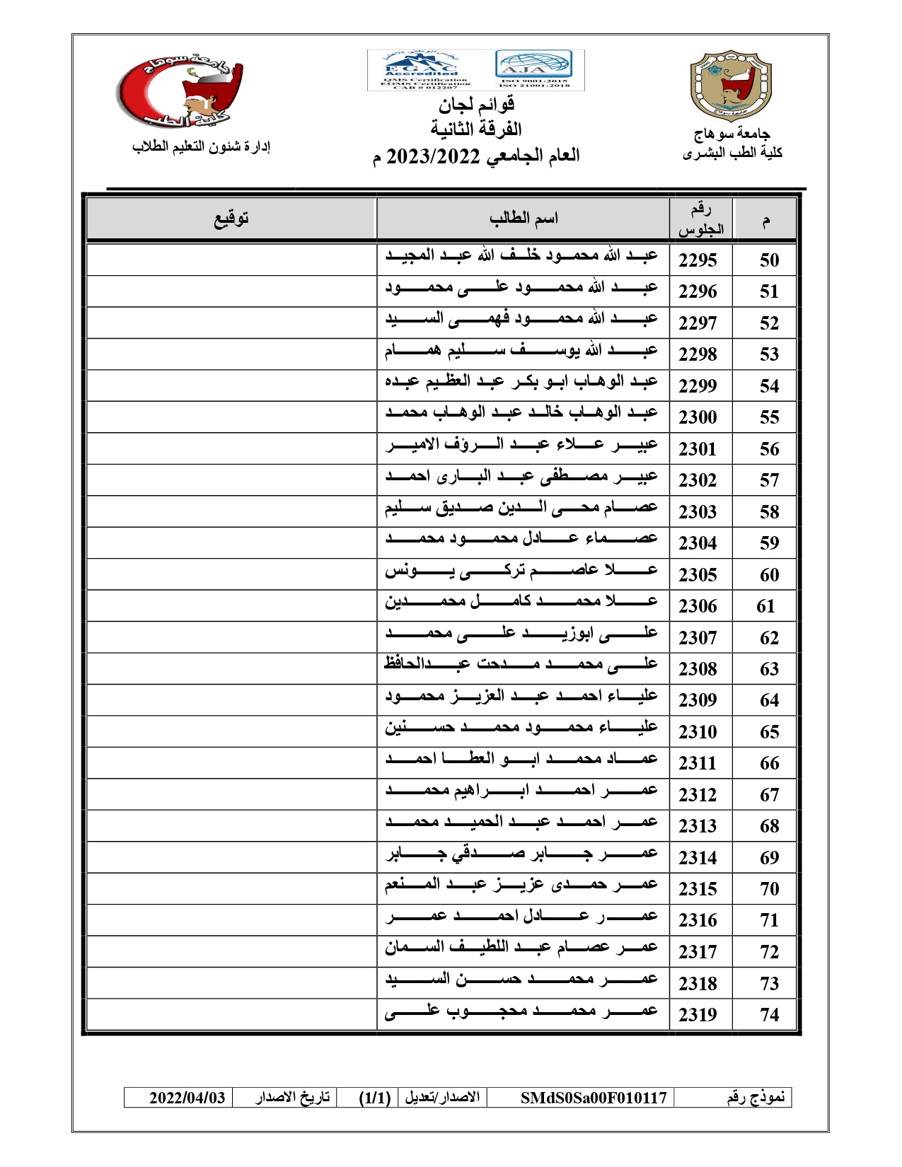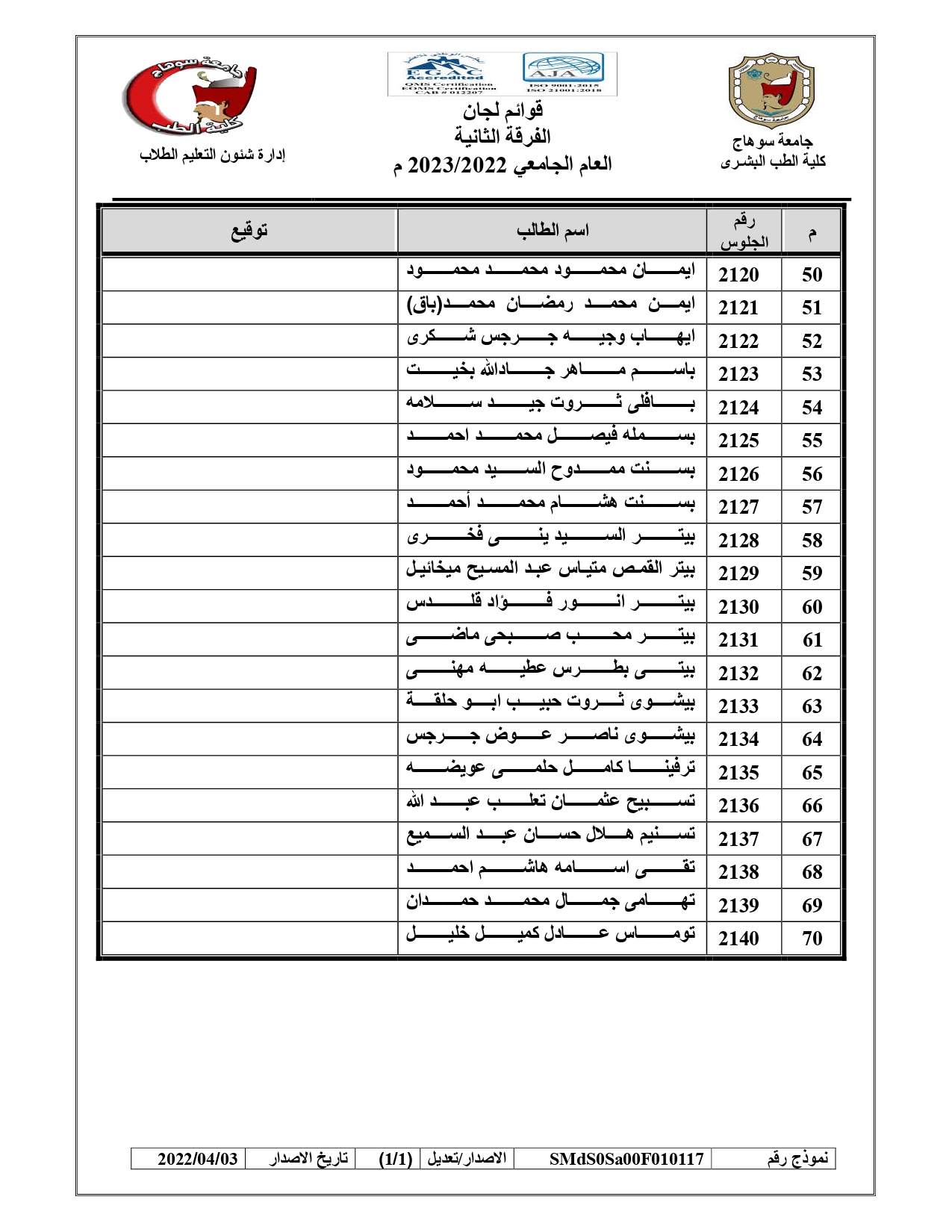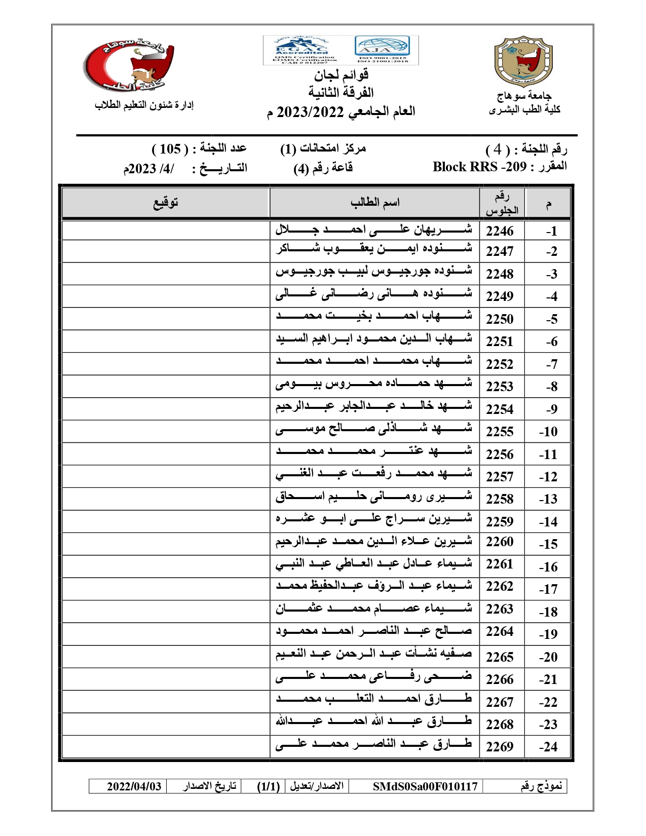 الرئيسية » Blog » قوائم لجان امتحانات الفرقة الثانية الفصل الدراسي الثاني 2022/2023قوائم لجان امتحانات الفرقة الثانية الفصل الدراسي الثاني 2022/2023by كلية الطب2023-04-04