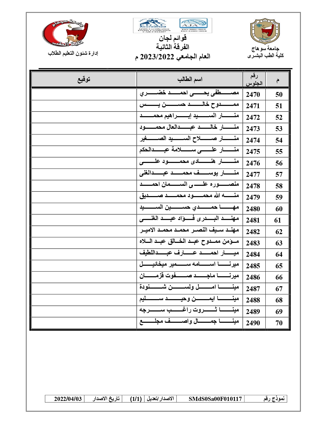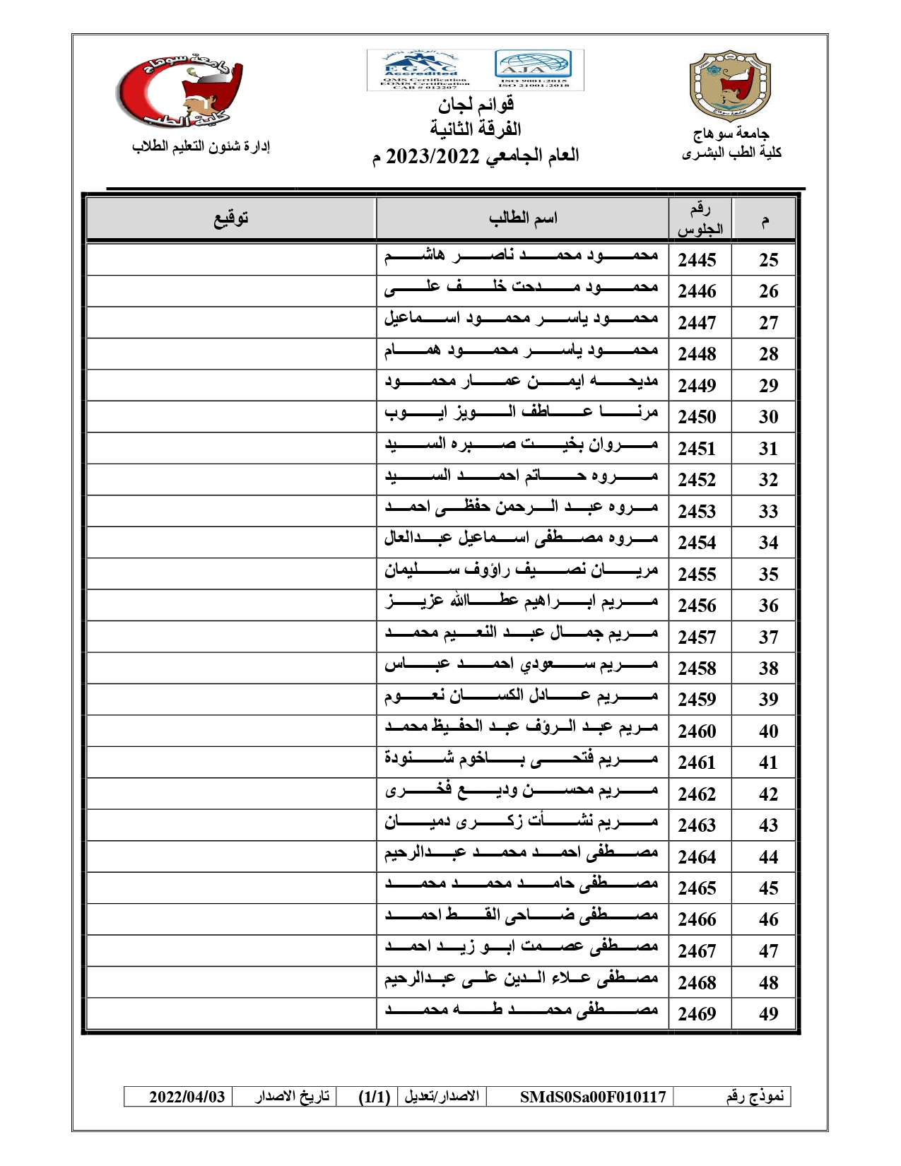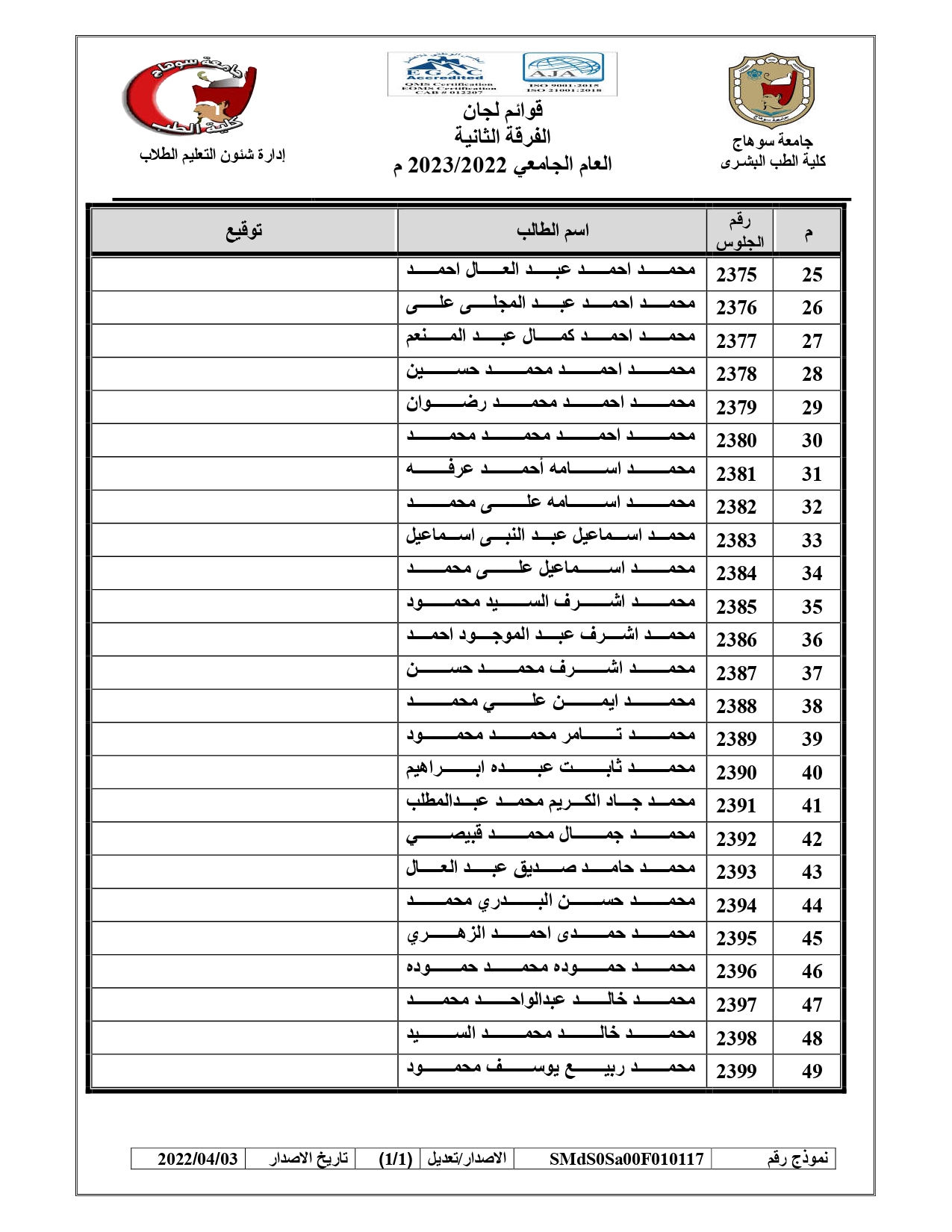 الرئيسية » Blog » قوائم لجان امتحانات الفرقة الثانية الفصل الدراسي الثاني 2022/2023قوائم لجان امتحانات الفرقة الثانية الفصل الدراسي الثاني 2022/2023by كلية الطب2023-04-04