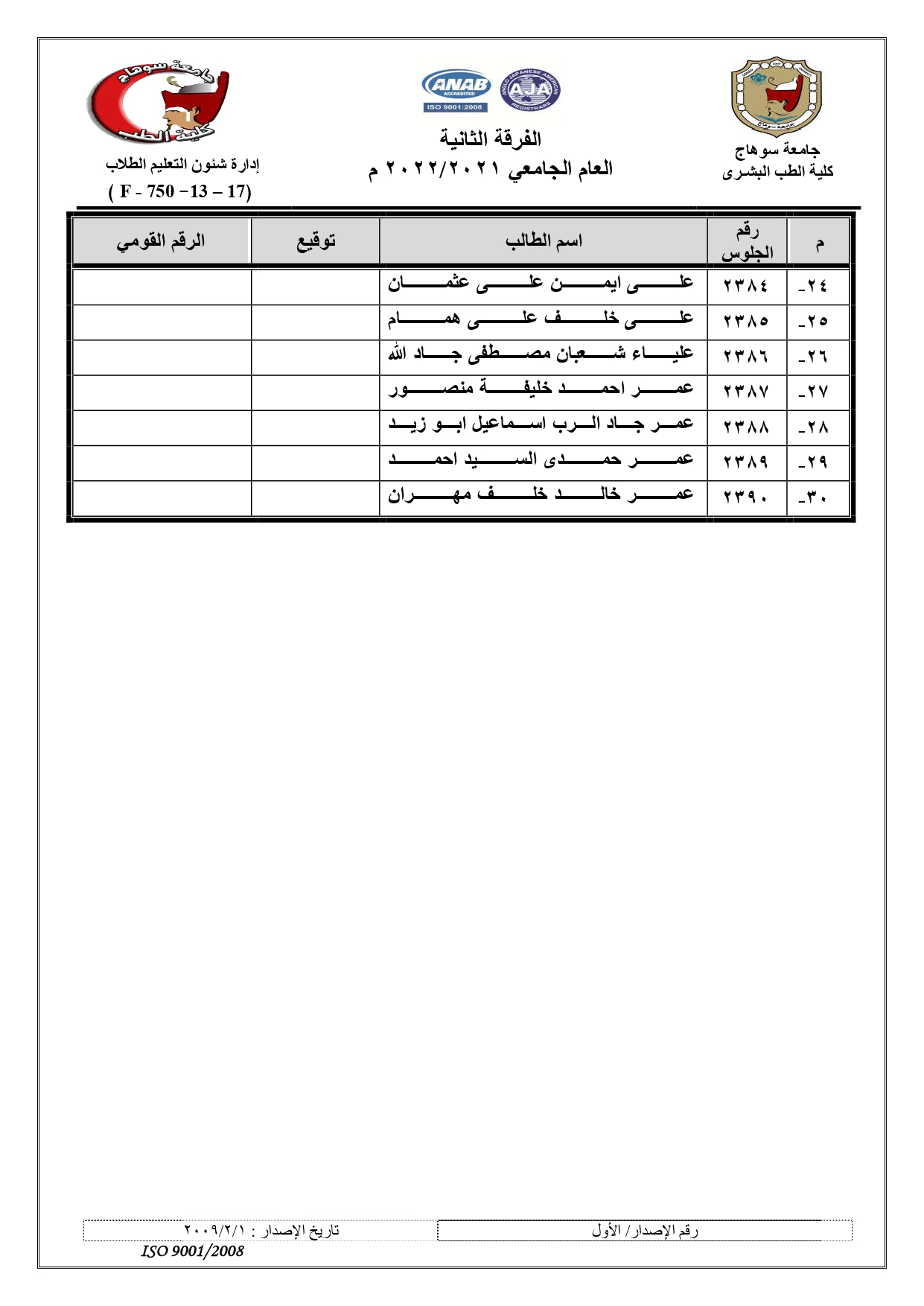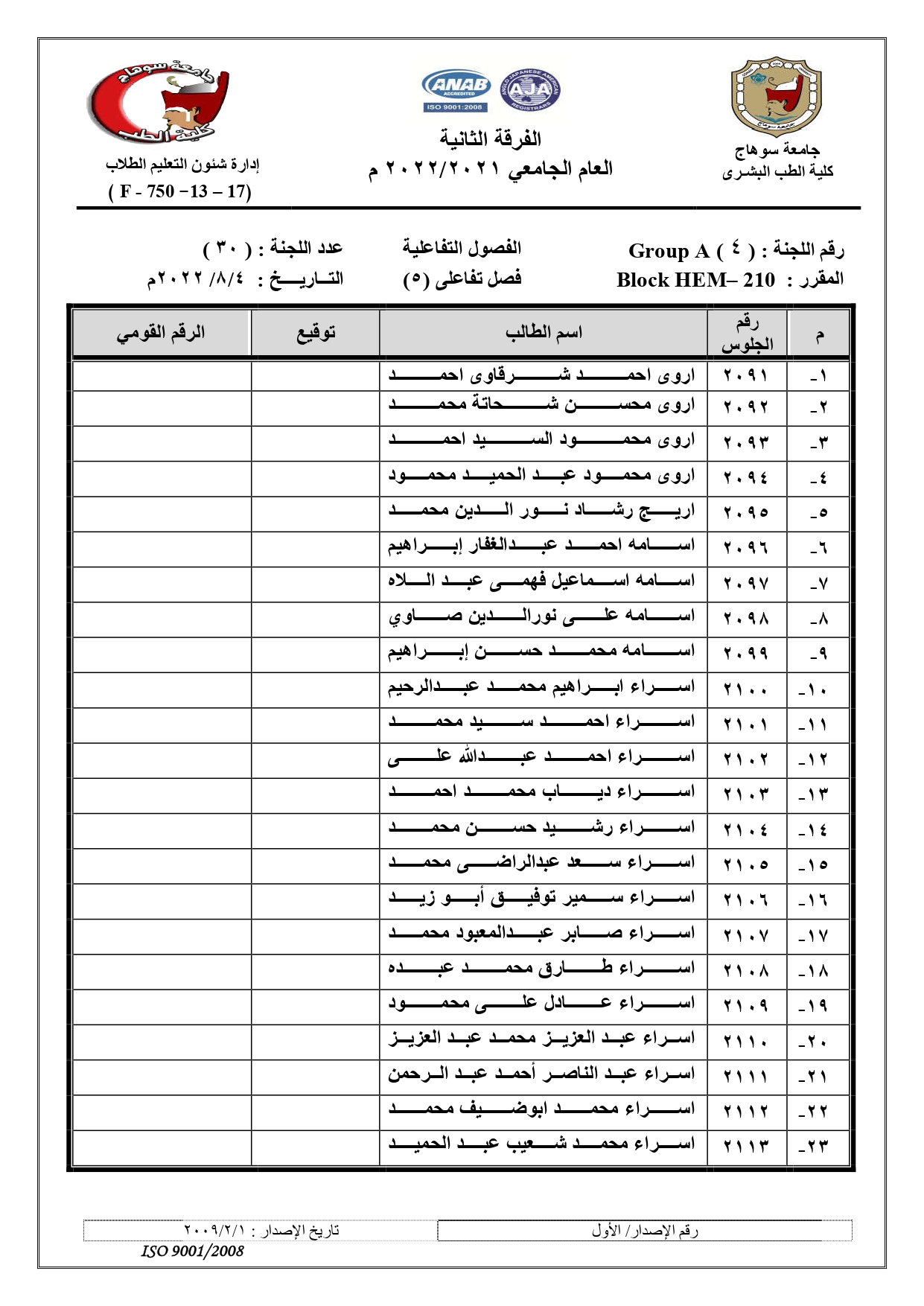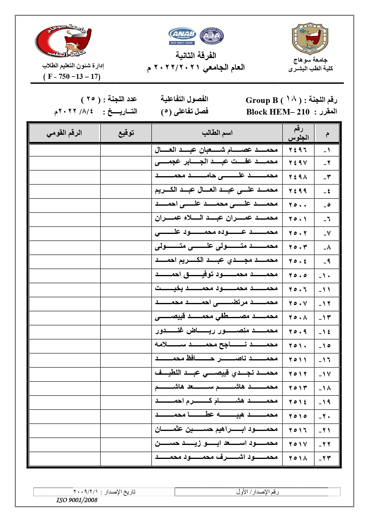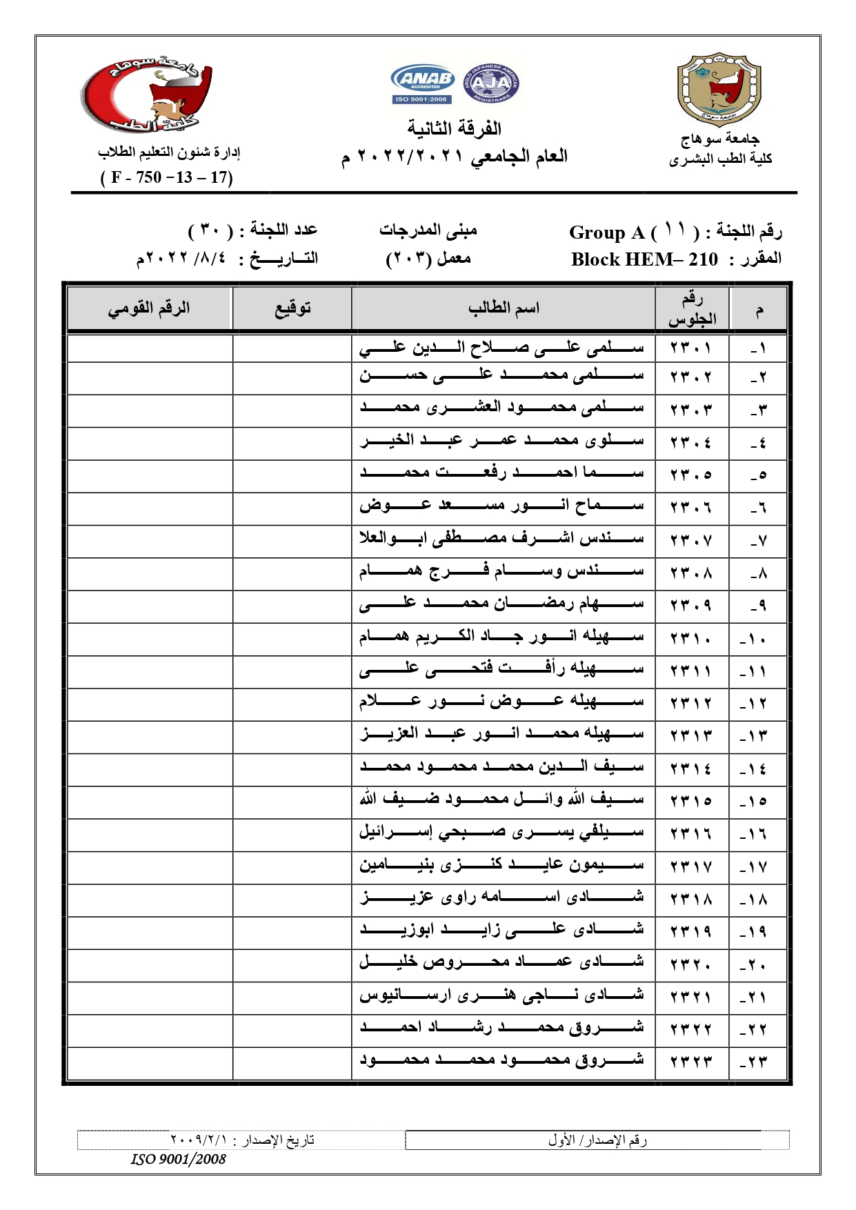 الرئيسية » Blog » قوائم لجان امتحانات الفرقة الثانية امتحان عملي (BLOCK HEM-210) العام الجامعي 2021/2022قوائم لجان امتحانات الفرقة الثانية امتحان عملي (BLOCK HEM-210) العام الجامعي 2021/2022by كلية الطب2022-08-012022-08-01