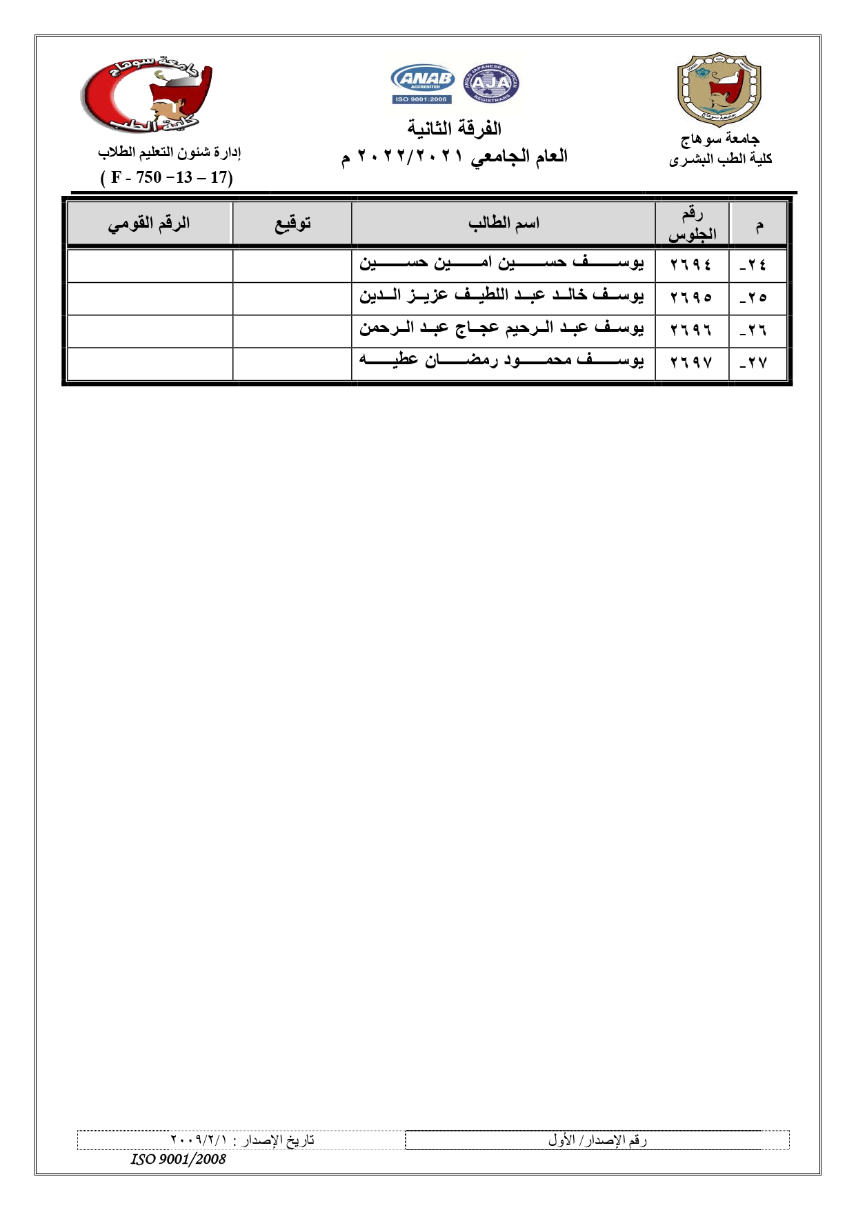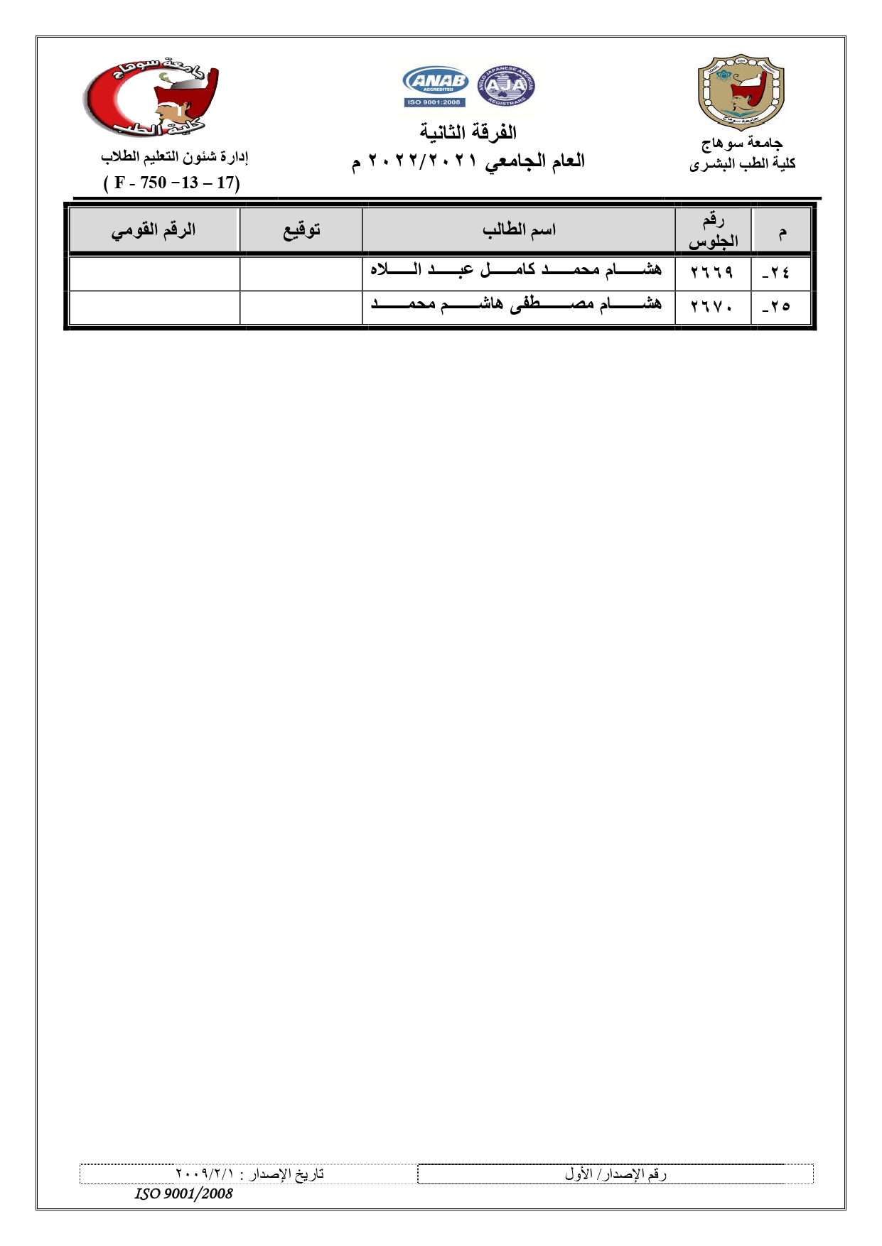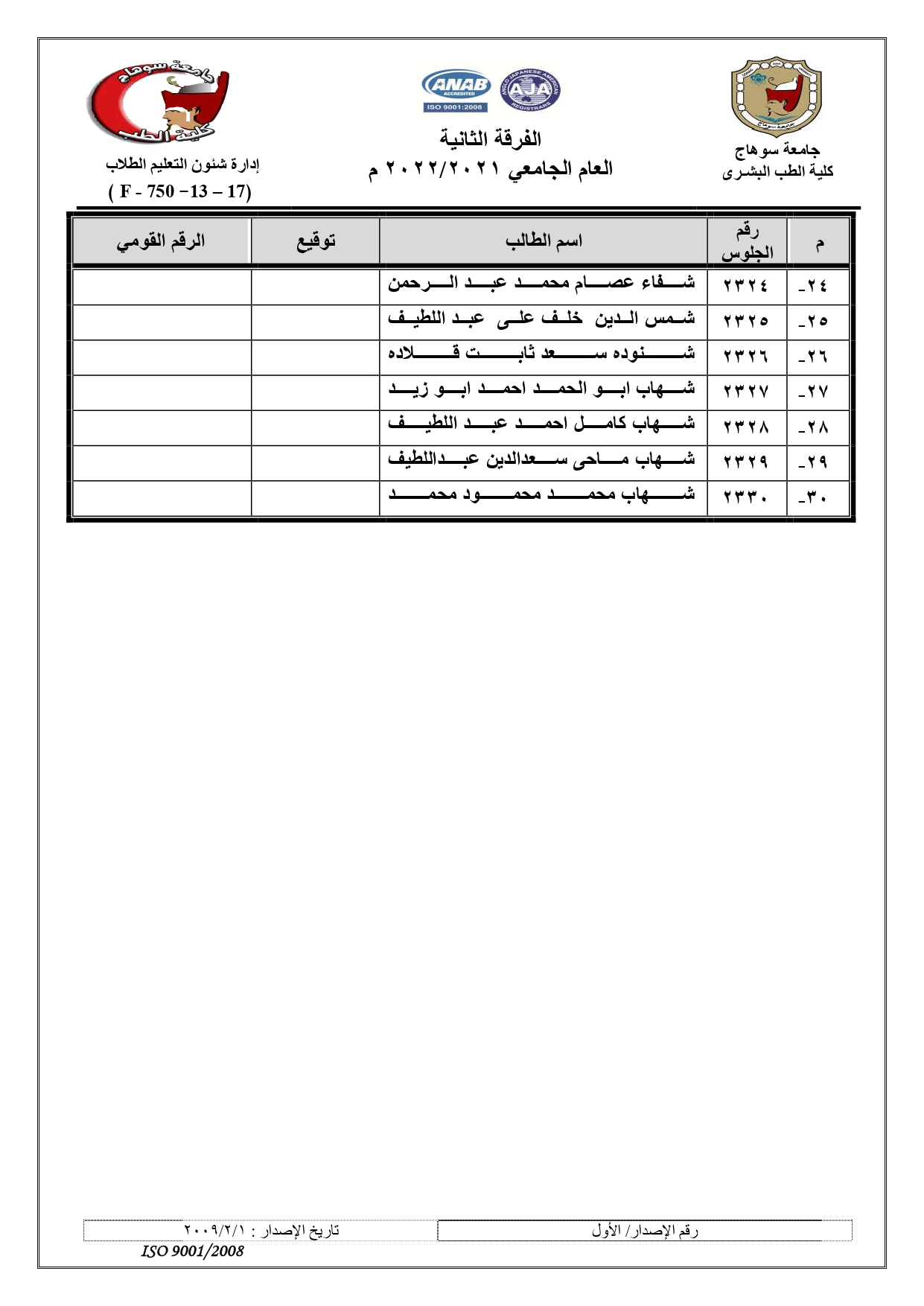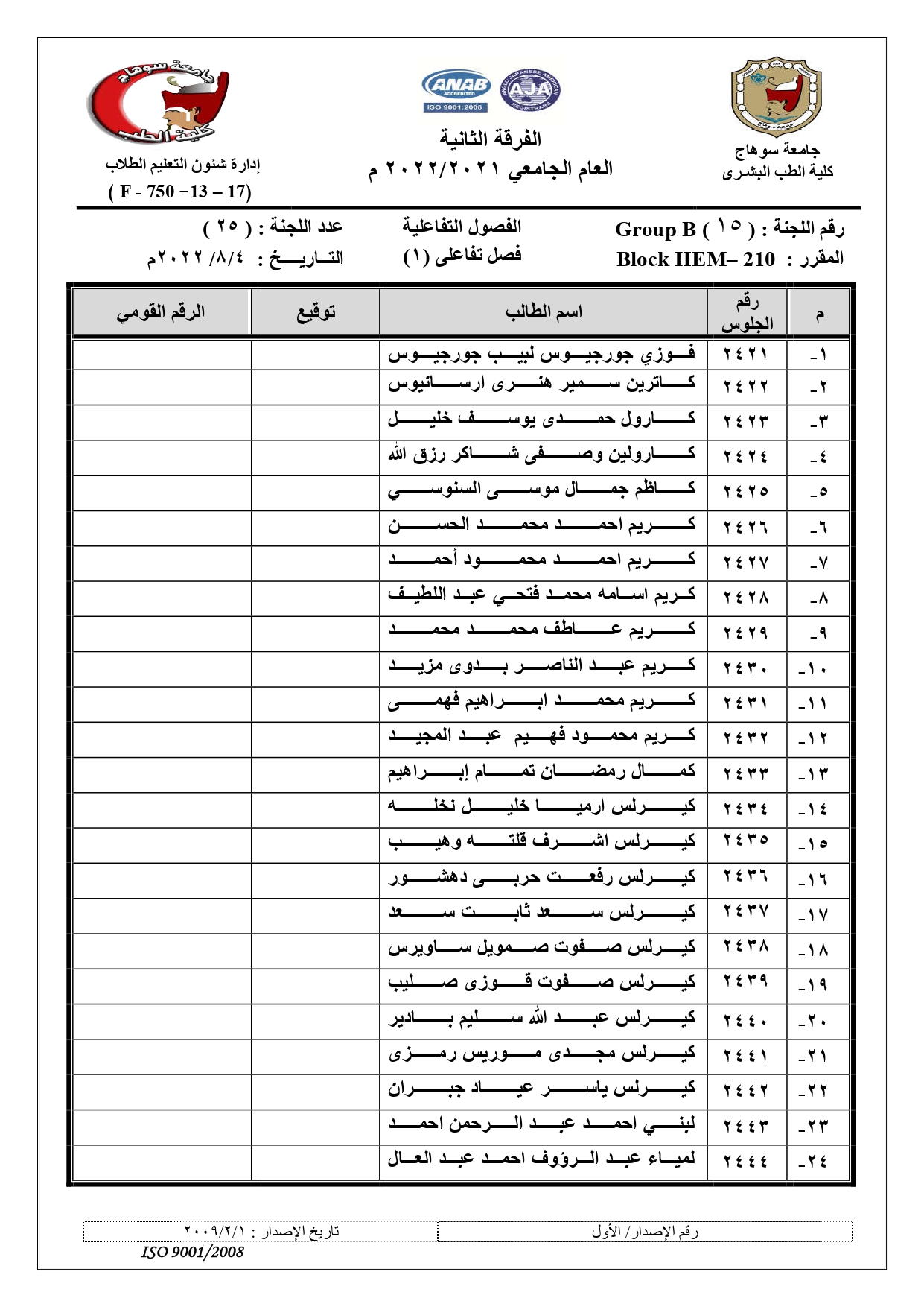 الرئيسية » Blog » قوائم لجان امتحانات الفرقة الثانية امتحان عملي (BLOCK HEM-210) العام الجامعي 2021/2022قوائم لجان امتحانات الفرقة الثانية امتحان عملي (BLOCK HEM-210) العام الجامعي 2021/2022by كلية الطب2022-08-012022-08-01