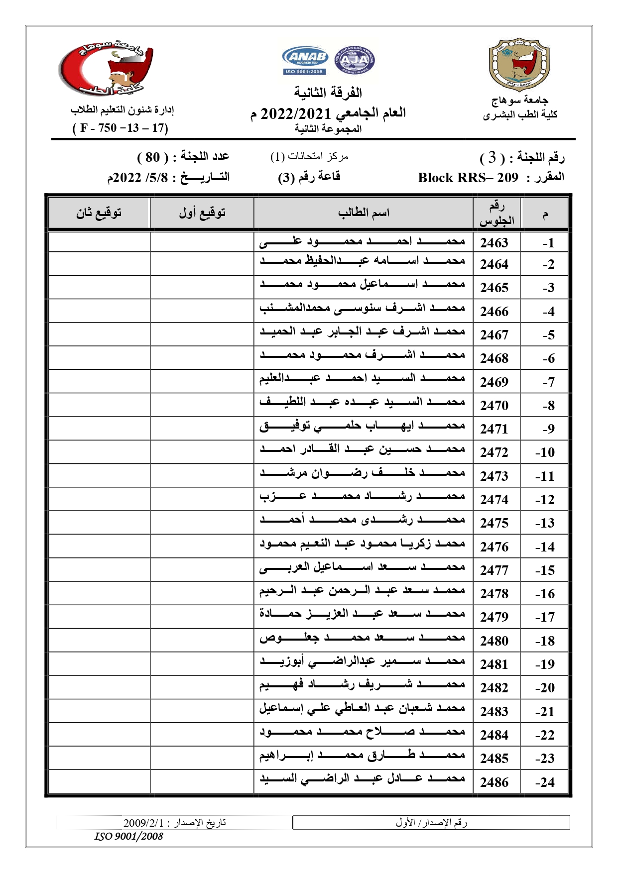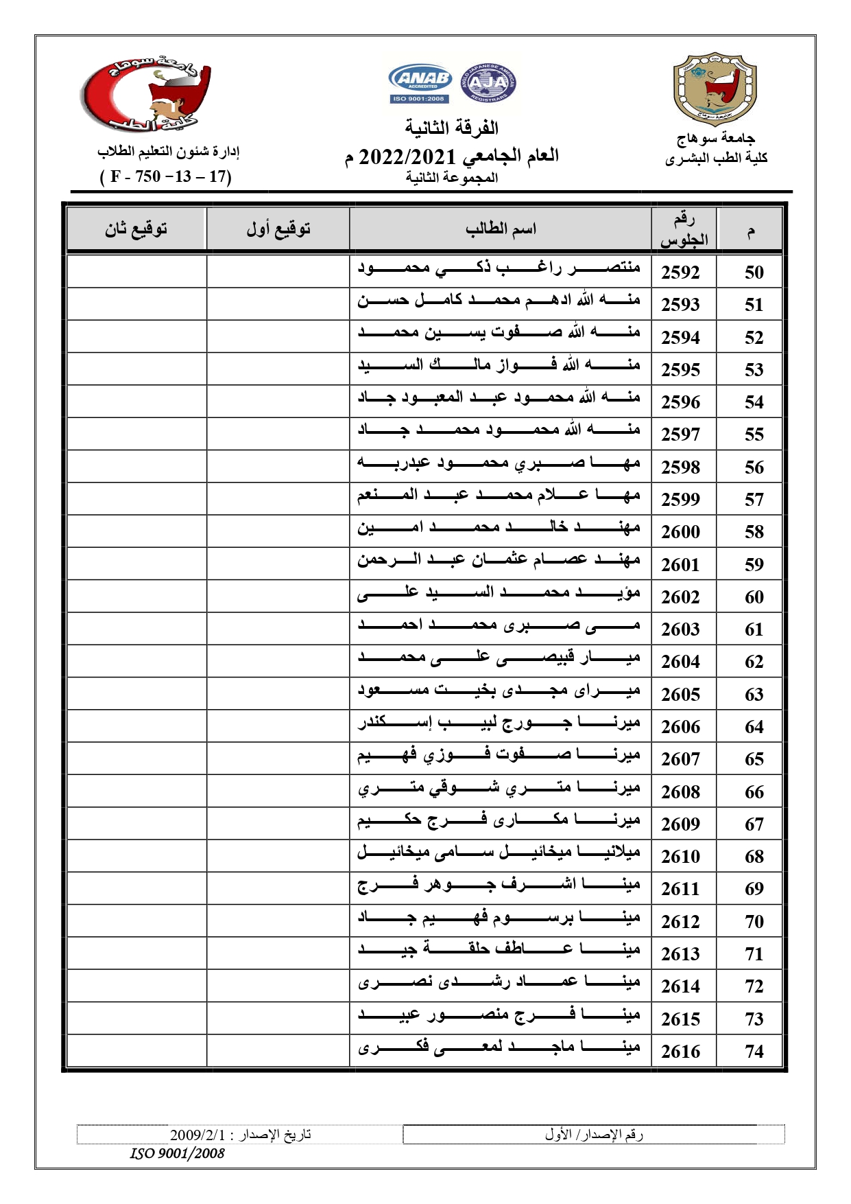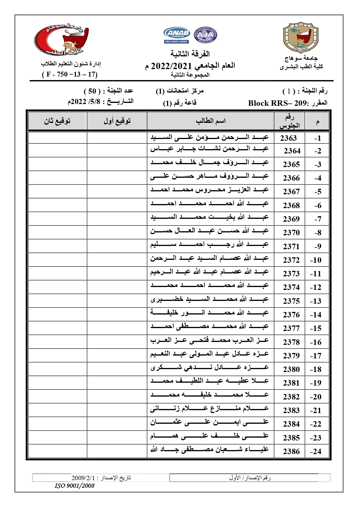 الرئيسية » Blog » قوائم لجان امتحانات الفرقة الثانية بالكوامل [المجموعة الثانية]قوائم لجان امتحانات الفرقة الثانية بالكوامل [المجموعة الثانية]by كلية الطب2022-04-27