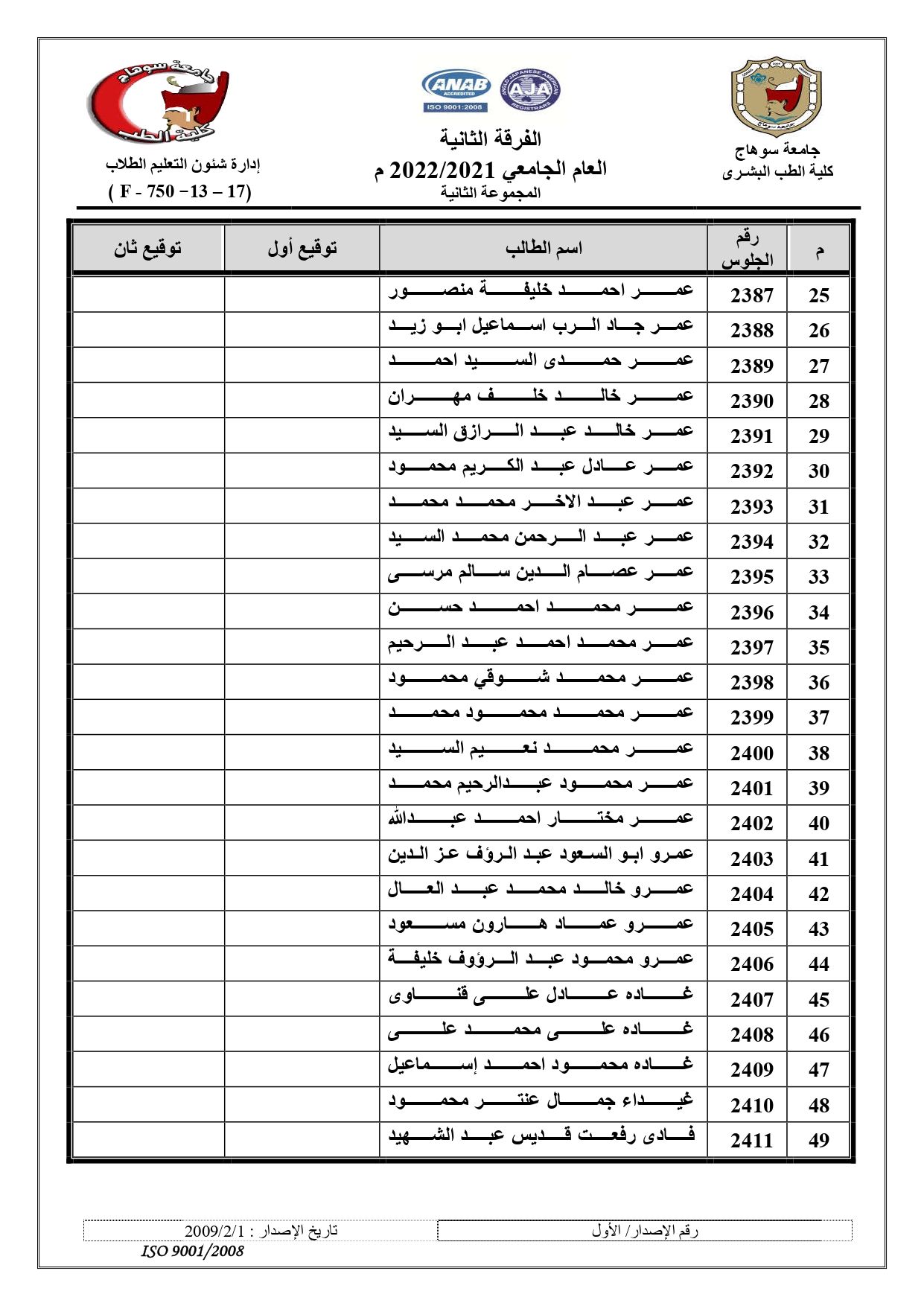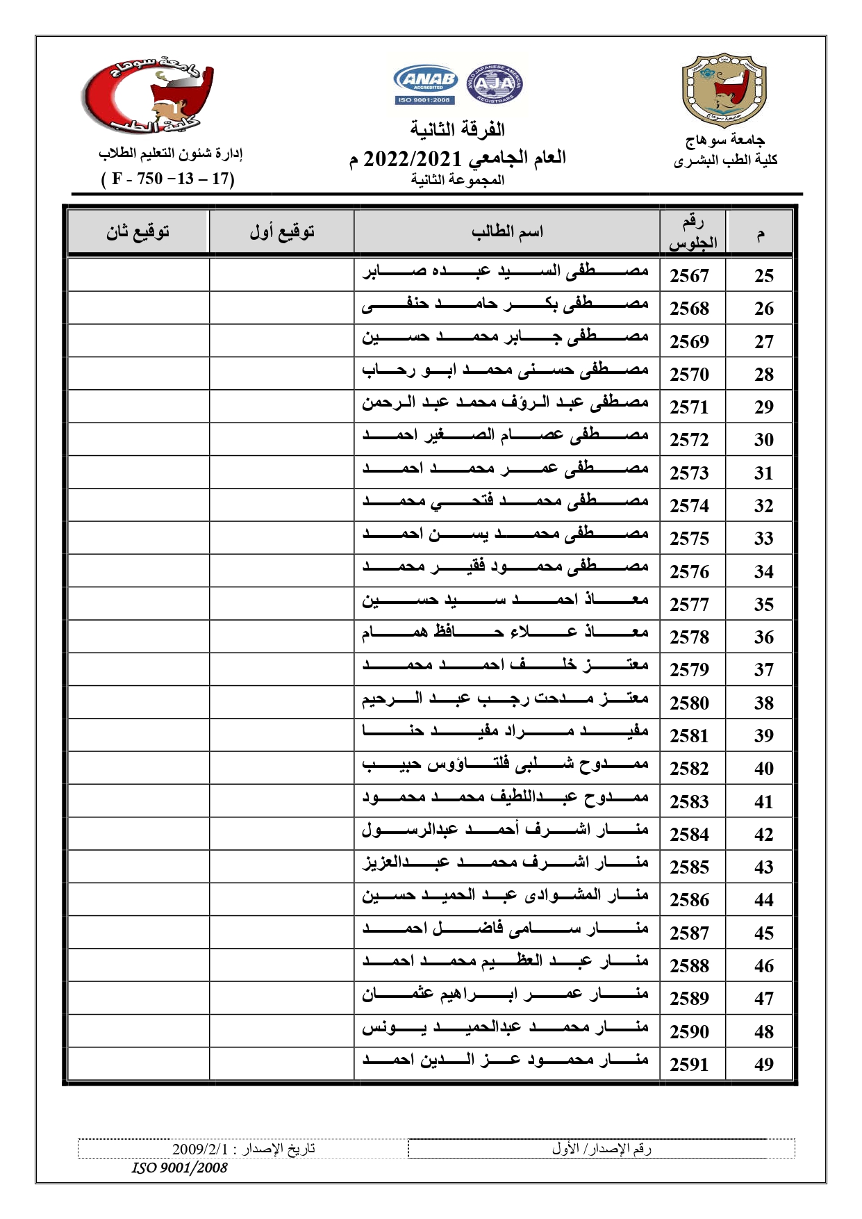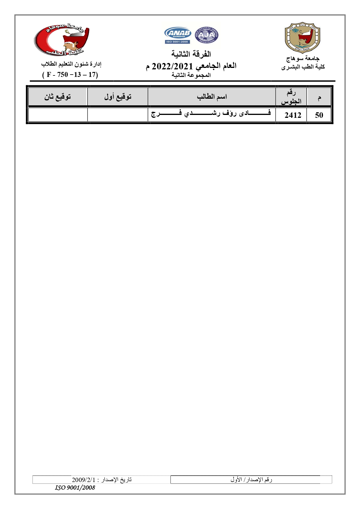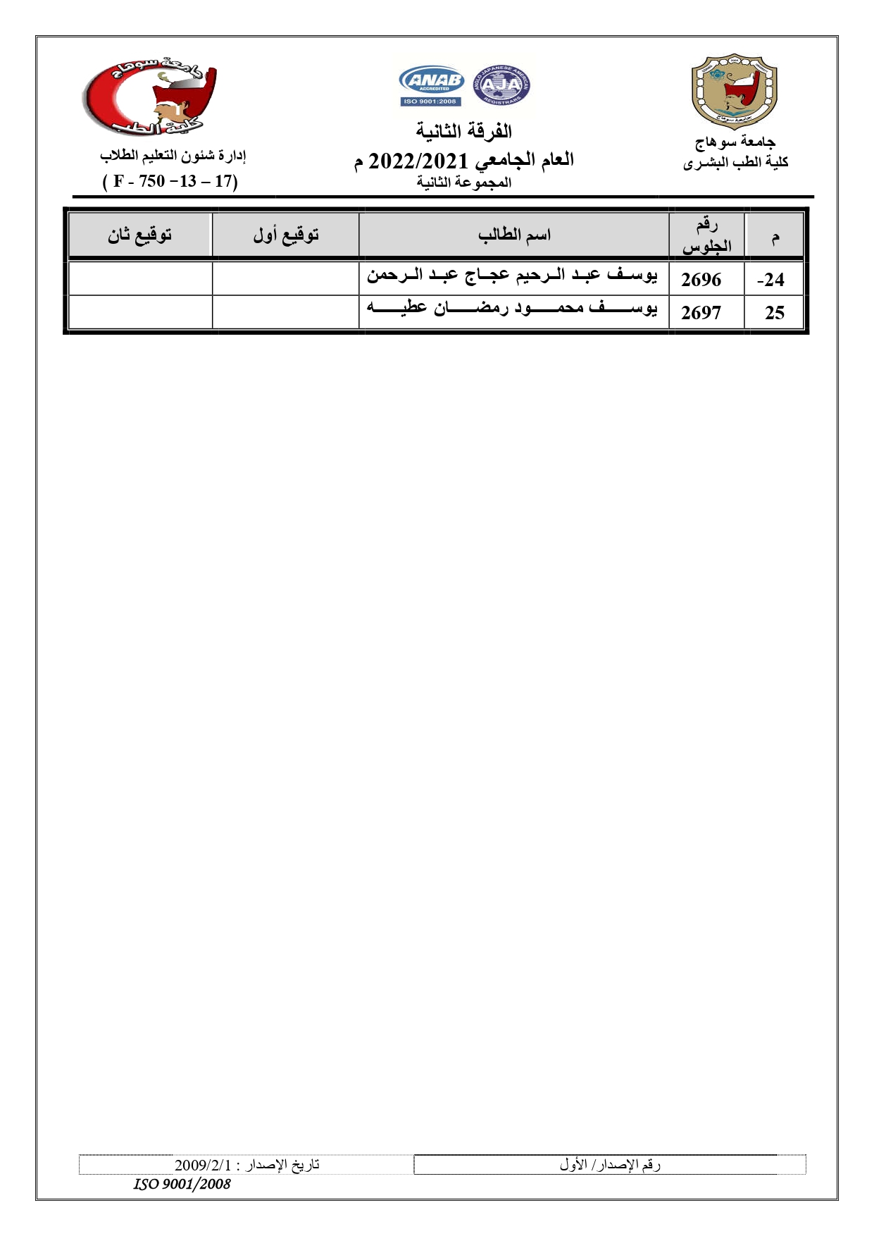 الرئيسية » Blog » قوائم لجان امتحانات الفرقة الثانية بالكوامل [المجموعة الثانية]قوائم لجان امتحانات الفرقة الثانية بالكوامل [المجموعة الثانية]by كلية الطب2022-04-27