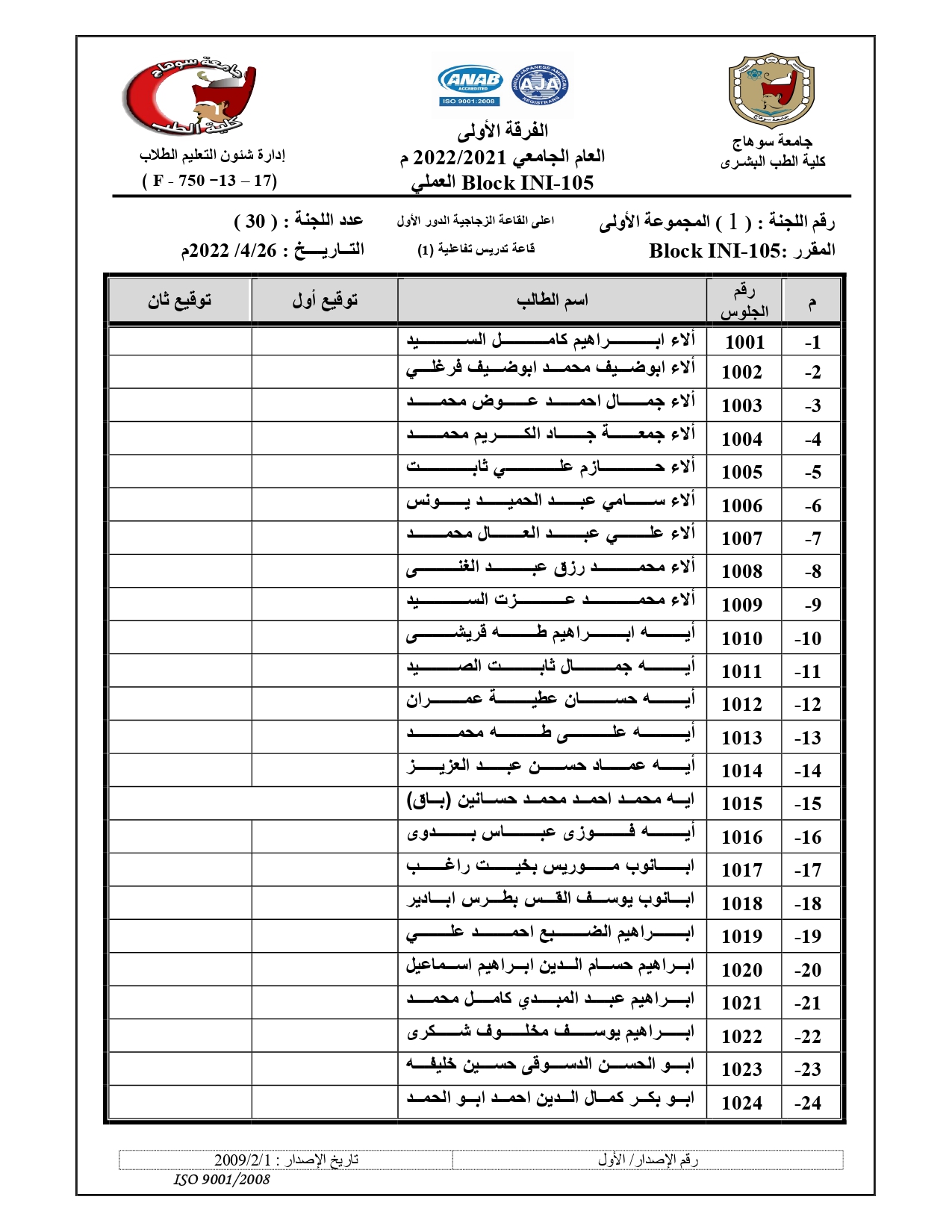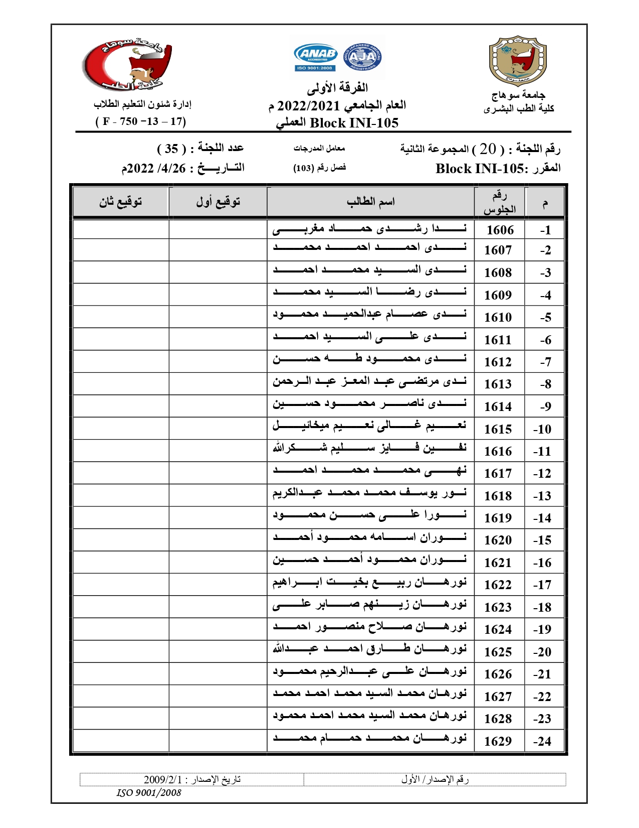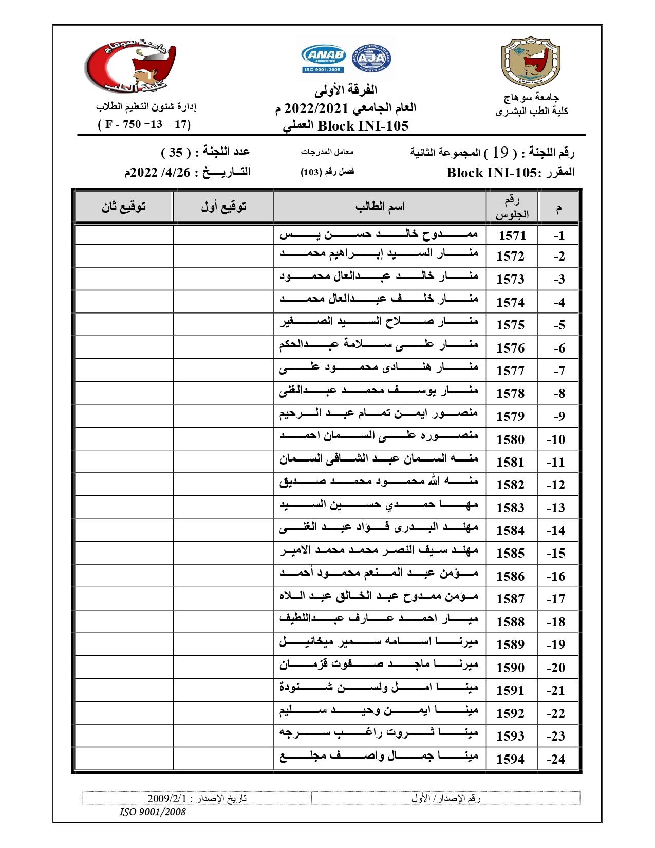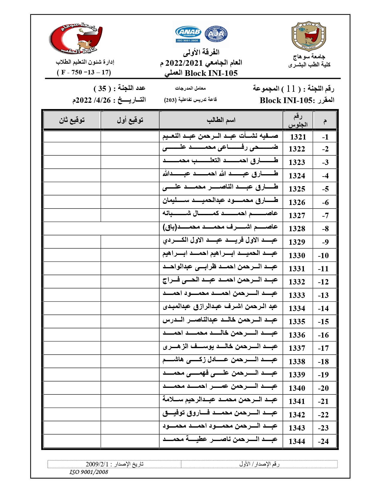 الرئيسية » Blog » قوائم لجان امتحان العملي الفرقة الاولى (INI-105)قوائم لجان امتحان العملي الفرقة الاولى (INI-105)by كلية الطب2022-04-17