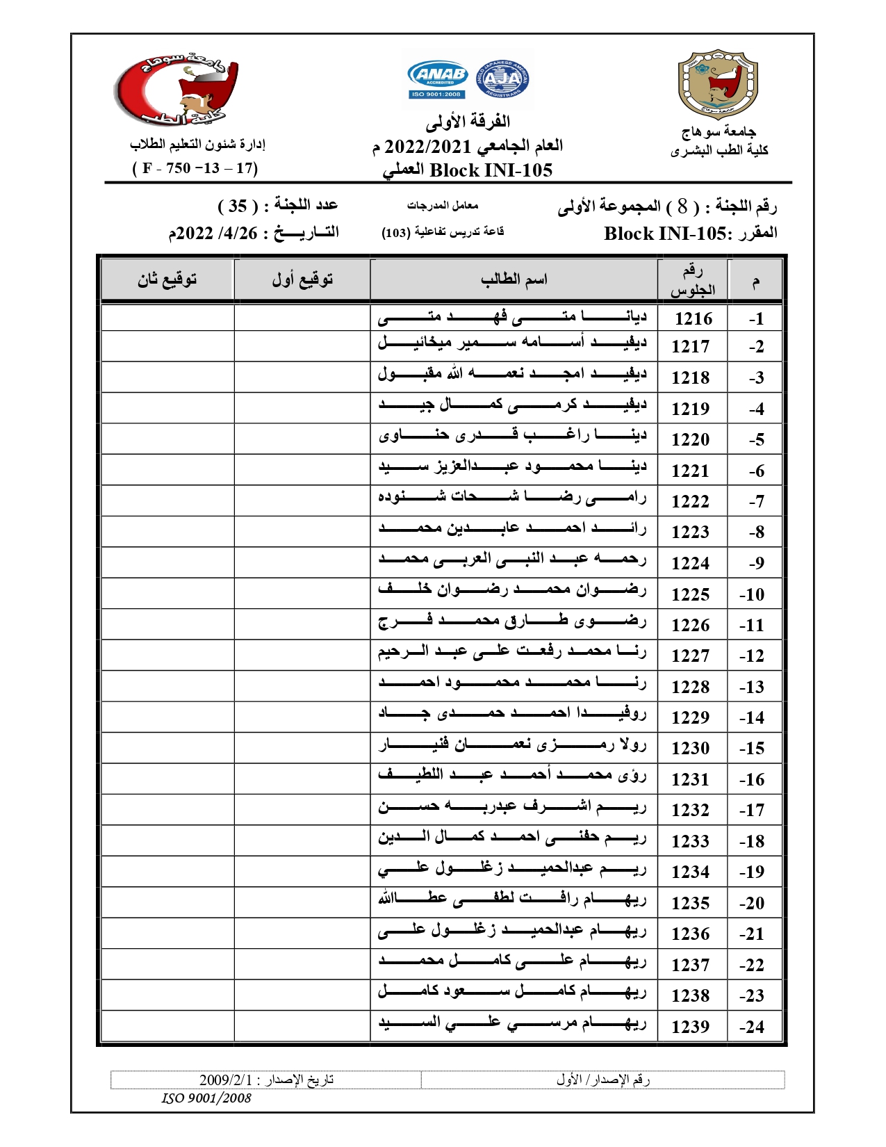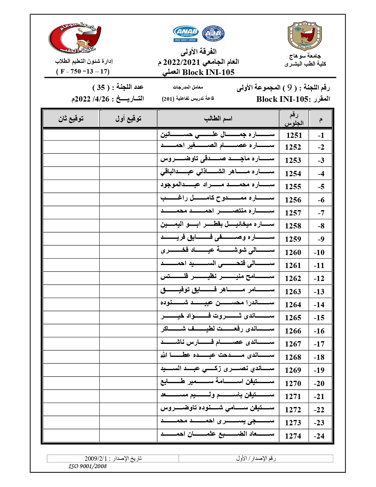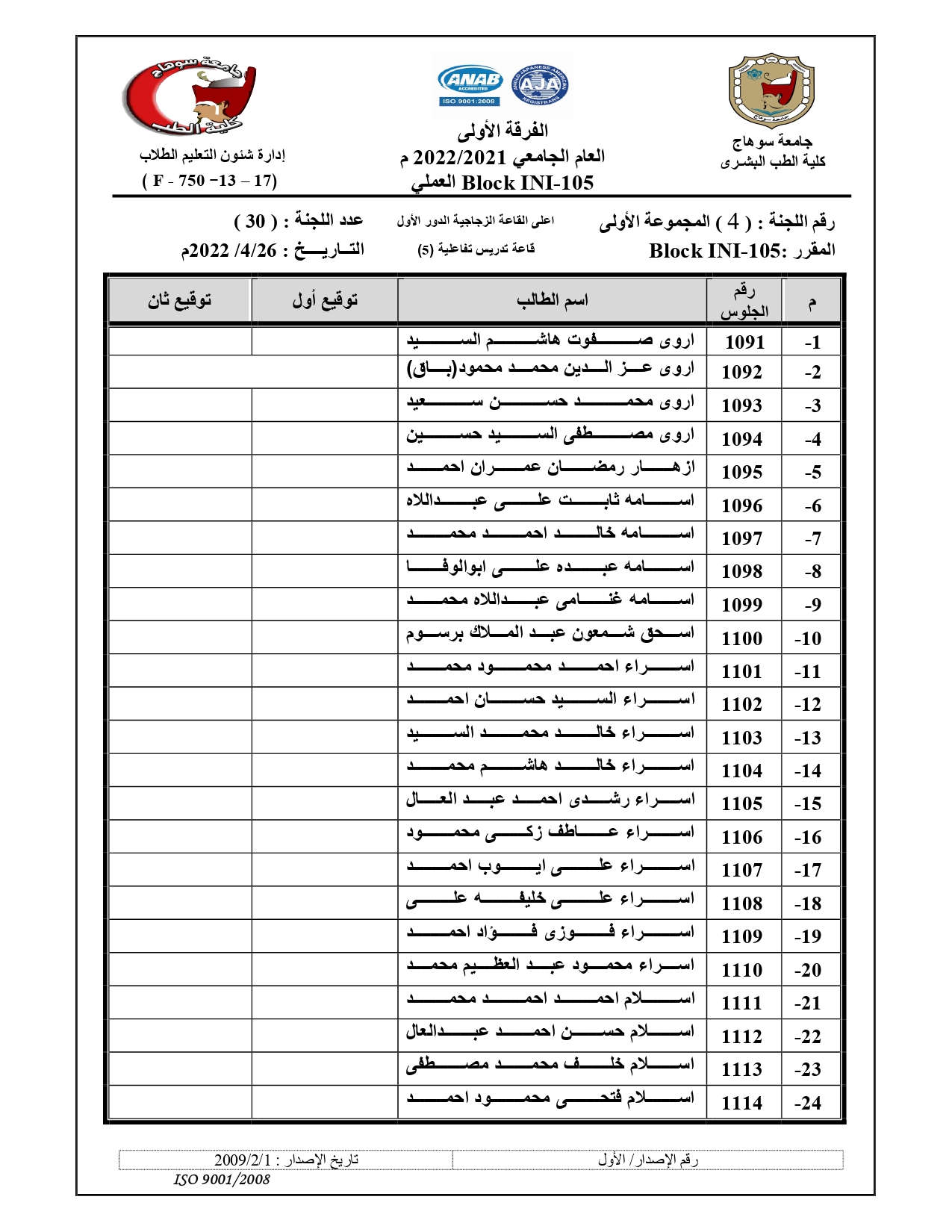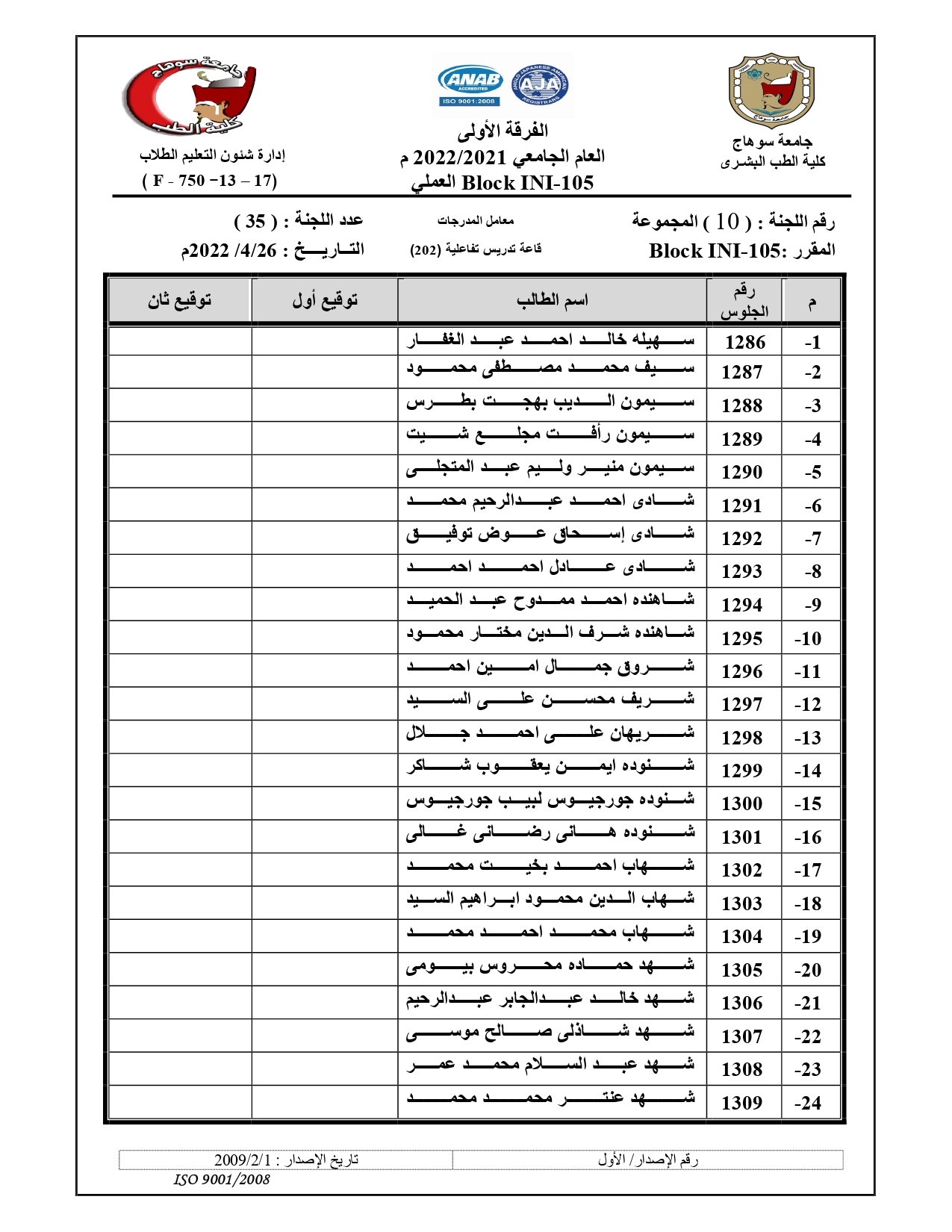 الرئيسية » Blog » قوائم لجان امتحان العملي الفرقة الاولى (INI-105)قوائم لجان امتحان العملي الفرقة الاولى (INI-105)by كلية الطب2022-04-17