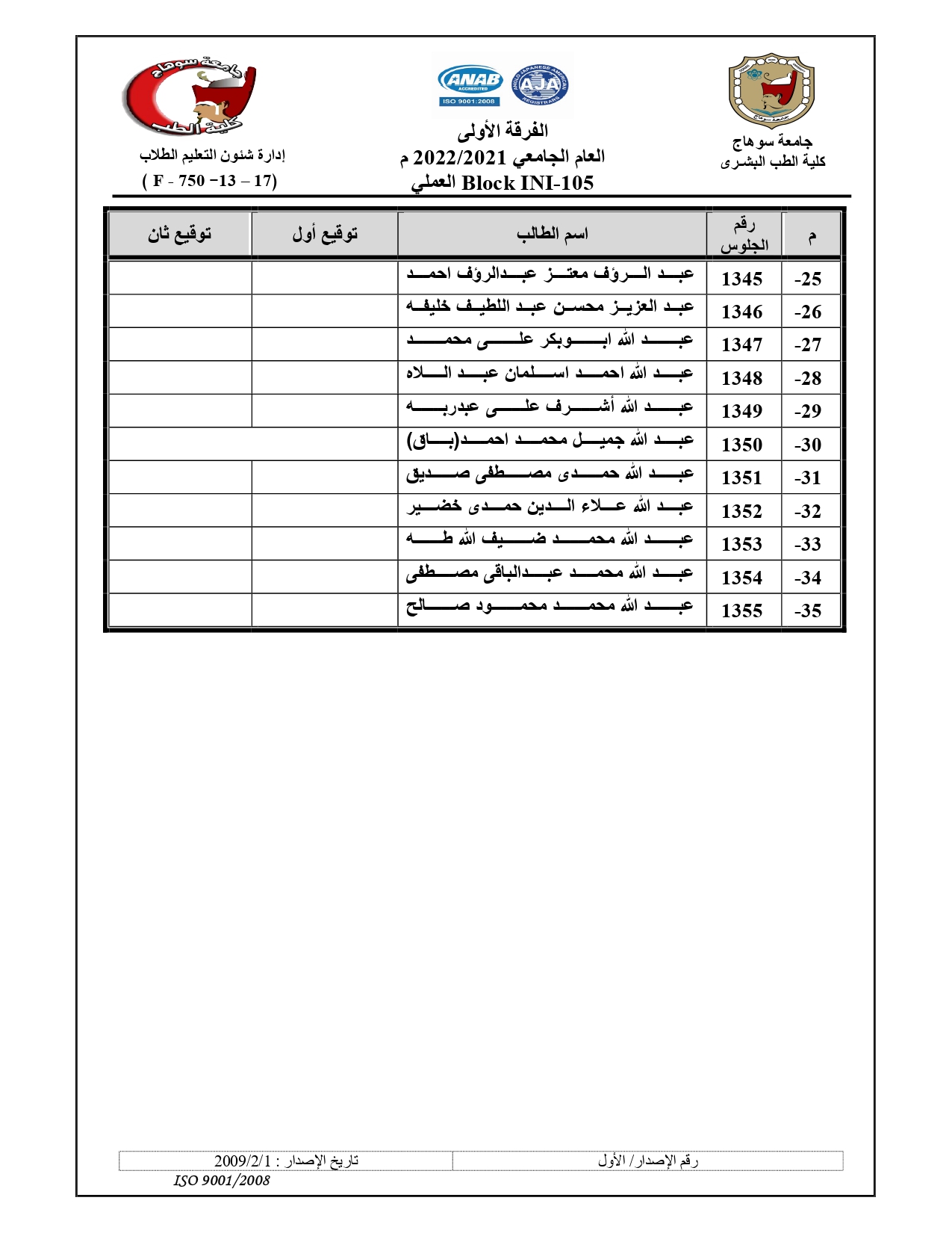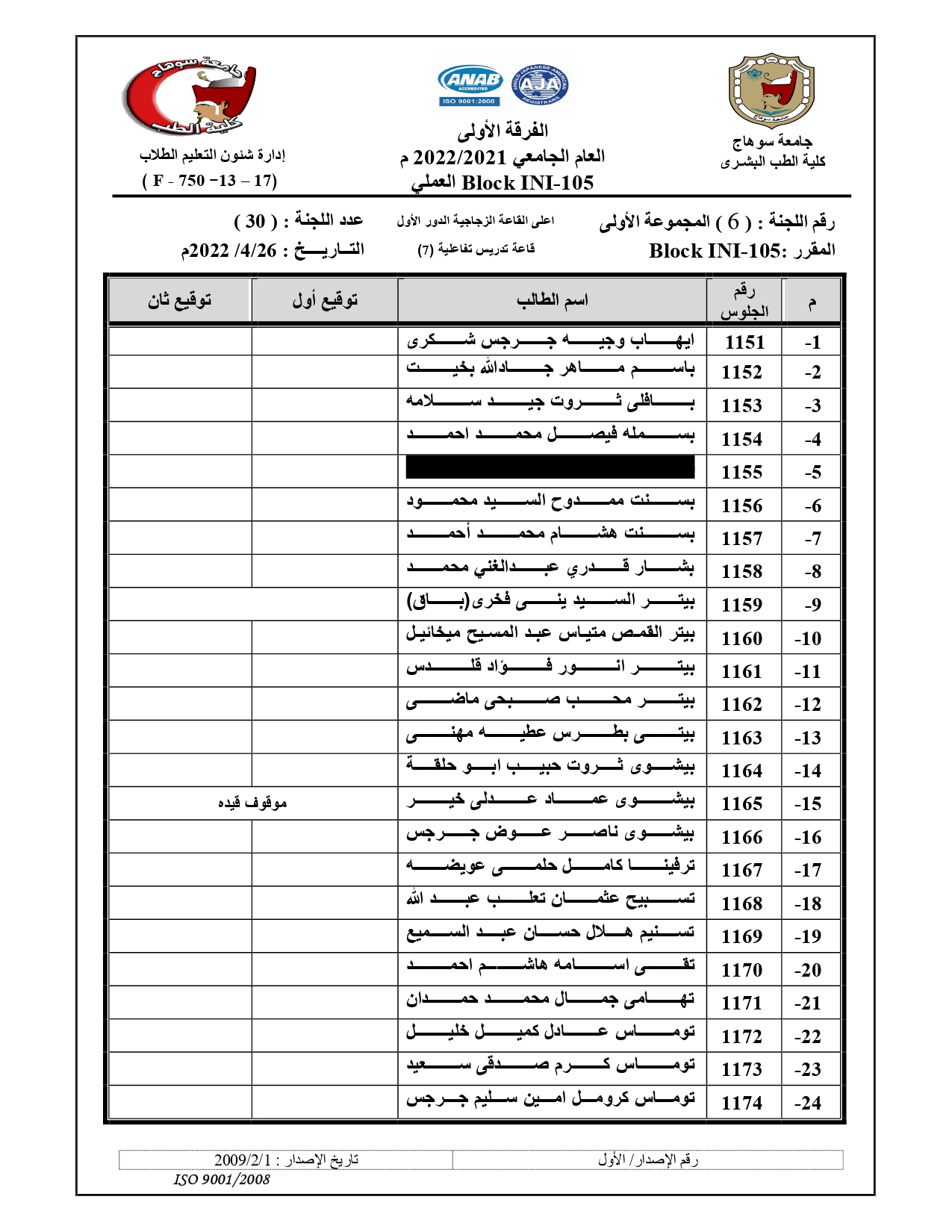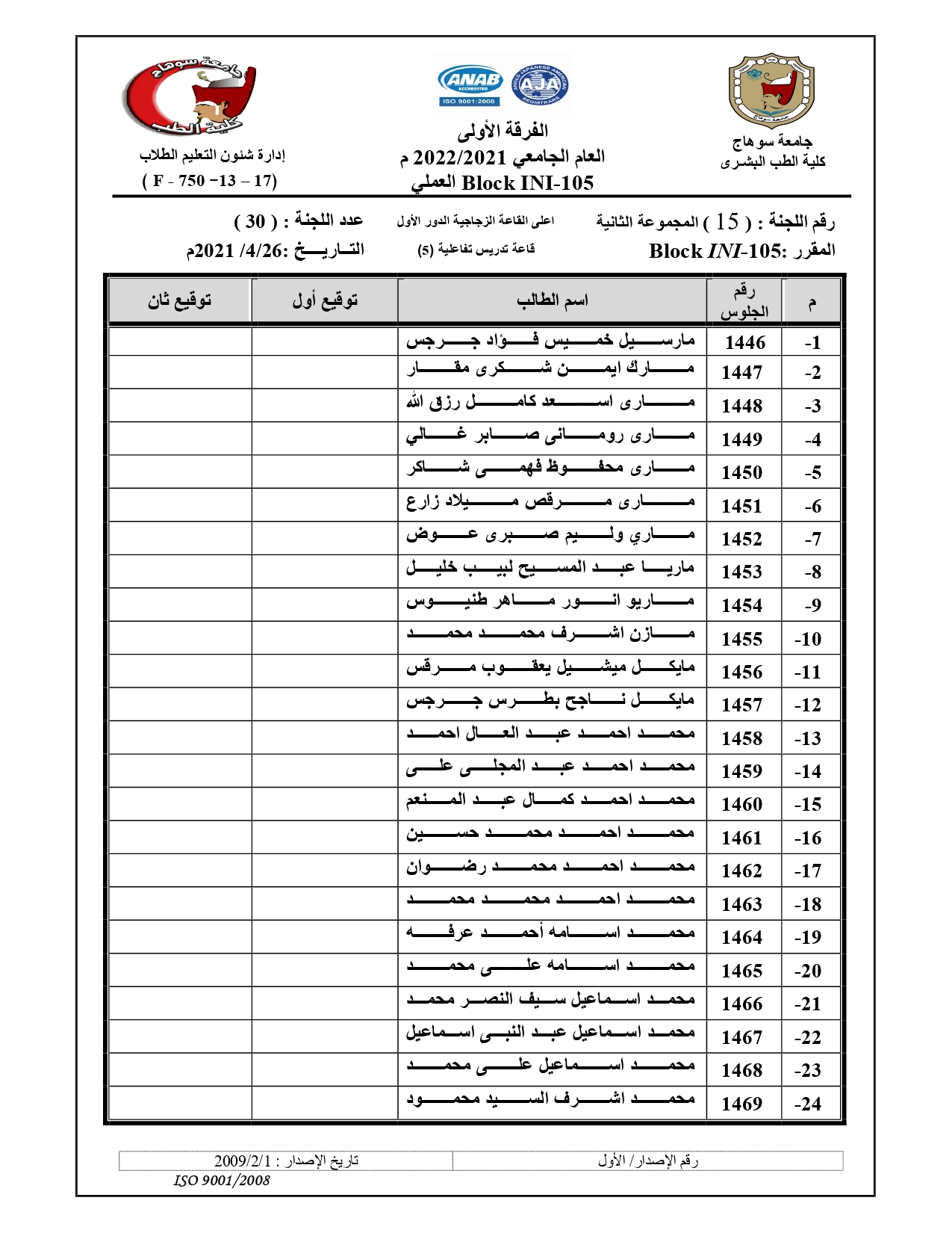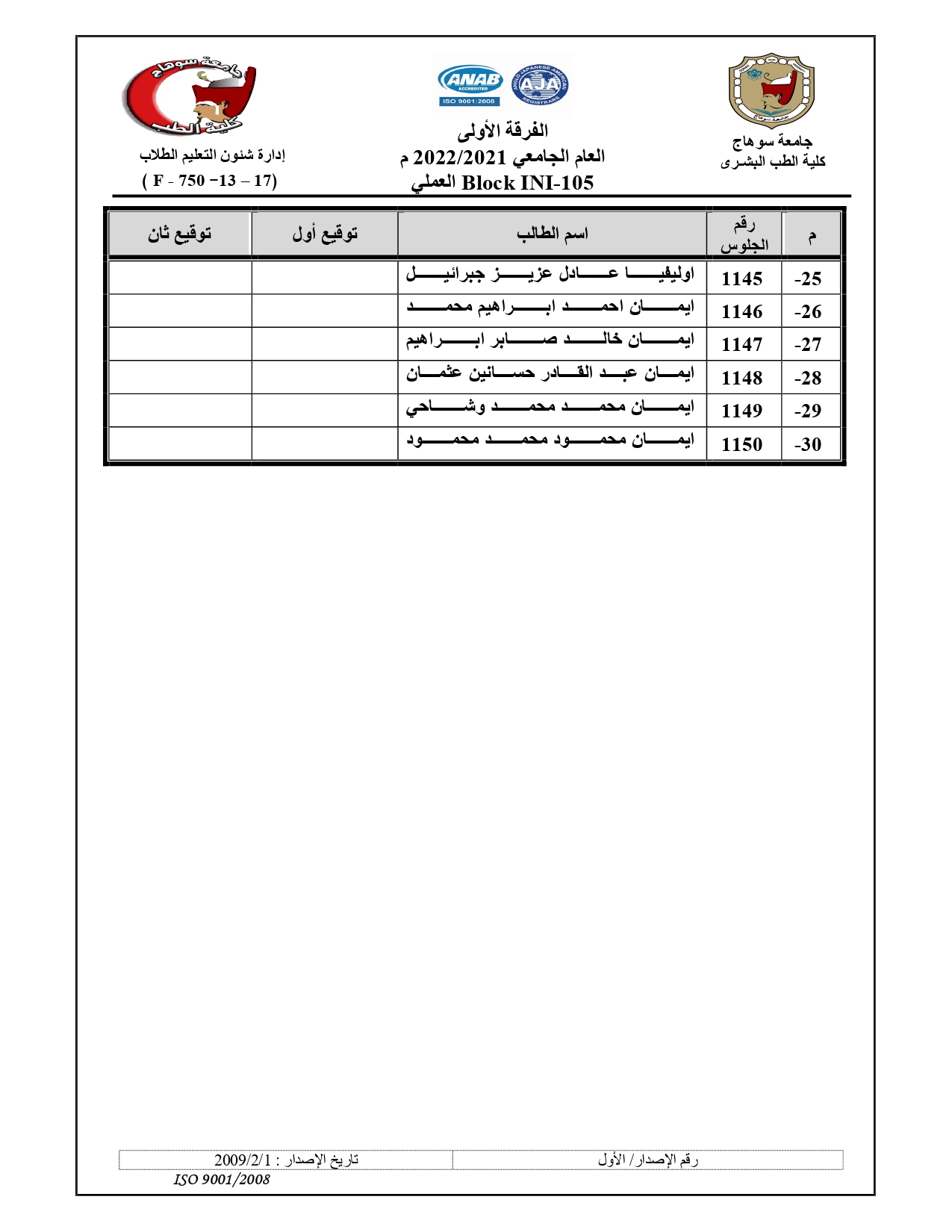 الرئيسية » Blog » قوائم لجان امتحان العملي الفرقة الاولى (INI-105)قوائم لجان امتحان العملي الفرقة الاولى (INI-105)by كلية الطب2022-04-17