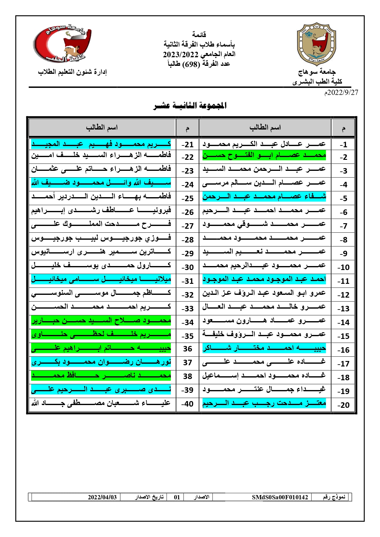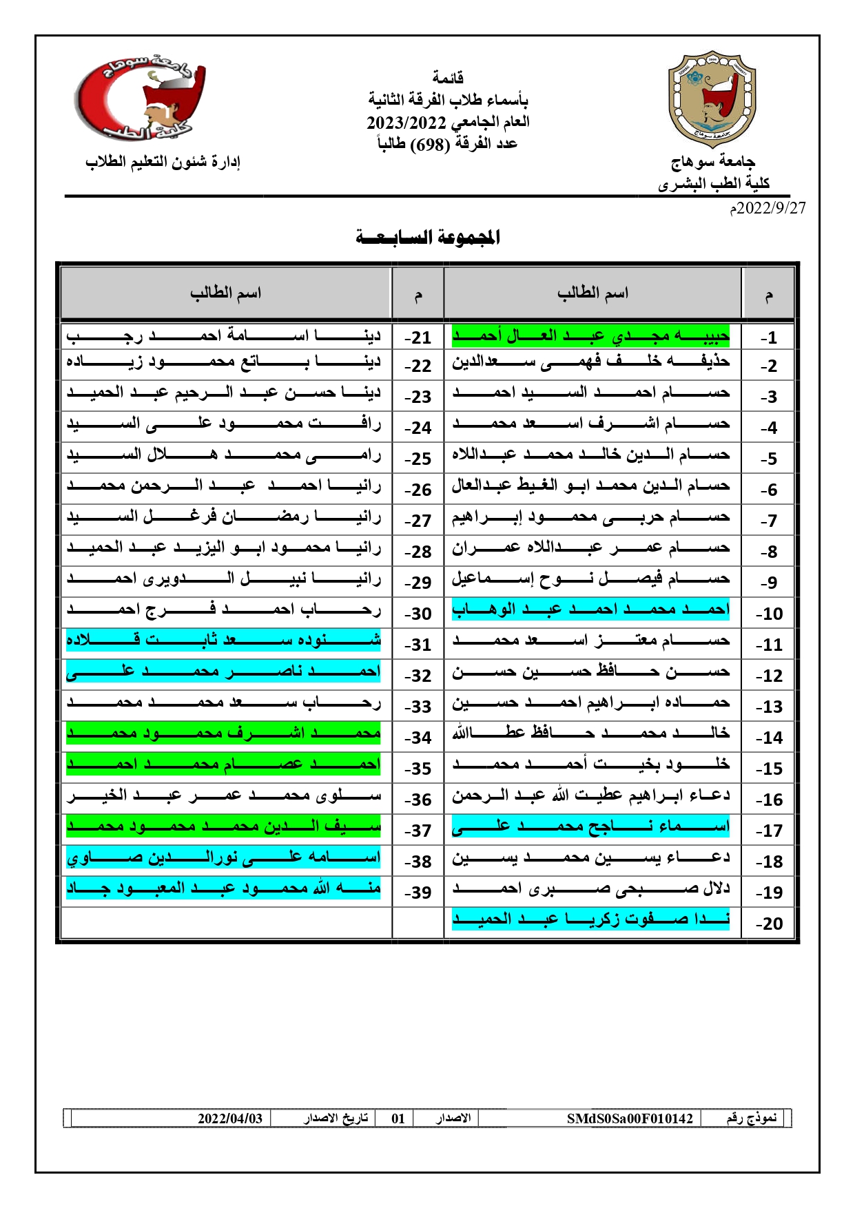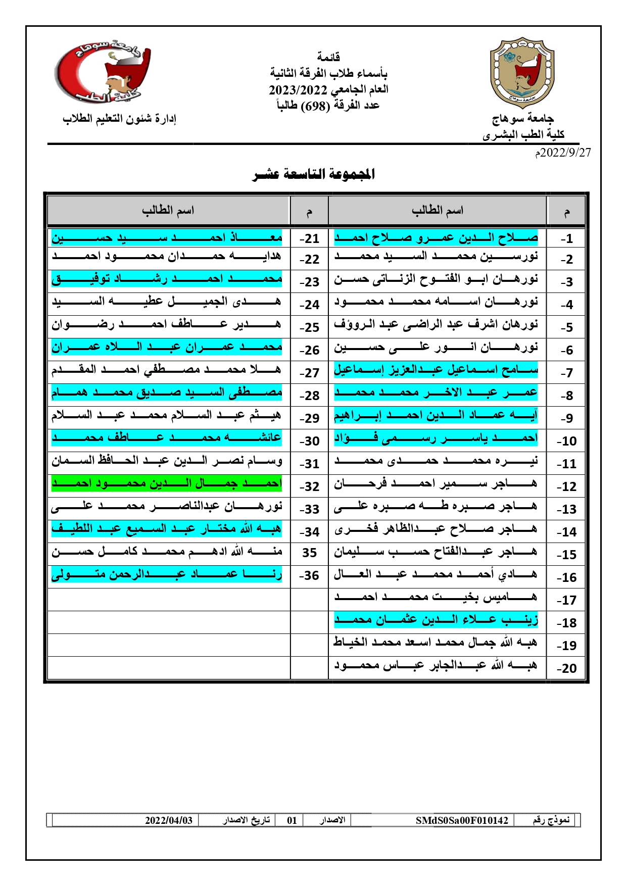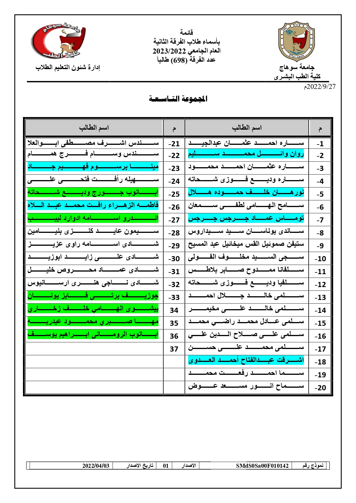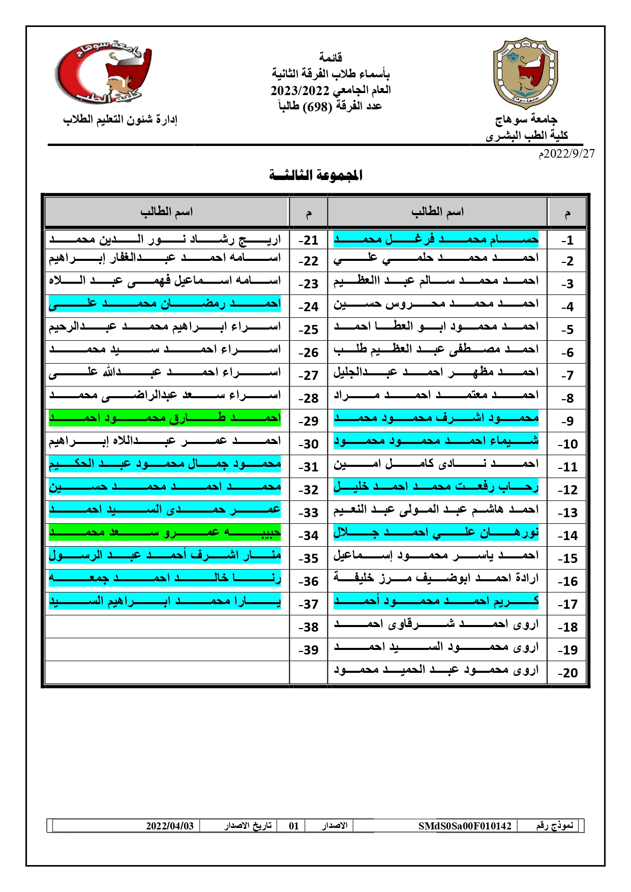 الرئيسية » Blog » قوائم مجموعات الفرقة الثالثة للعام الجامعي 2022/2023قوائم مجموعات الفرقة الثالثة للعام الجامعي 2022/2023by كلية الطب2022-09-292022-10-05