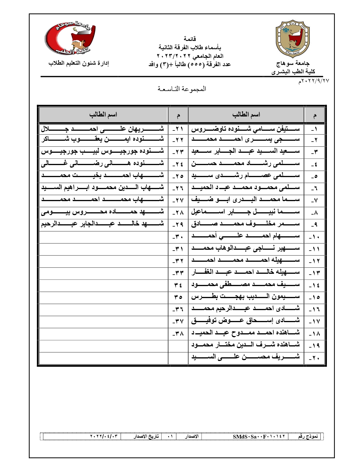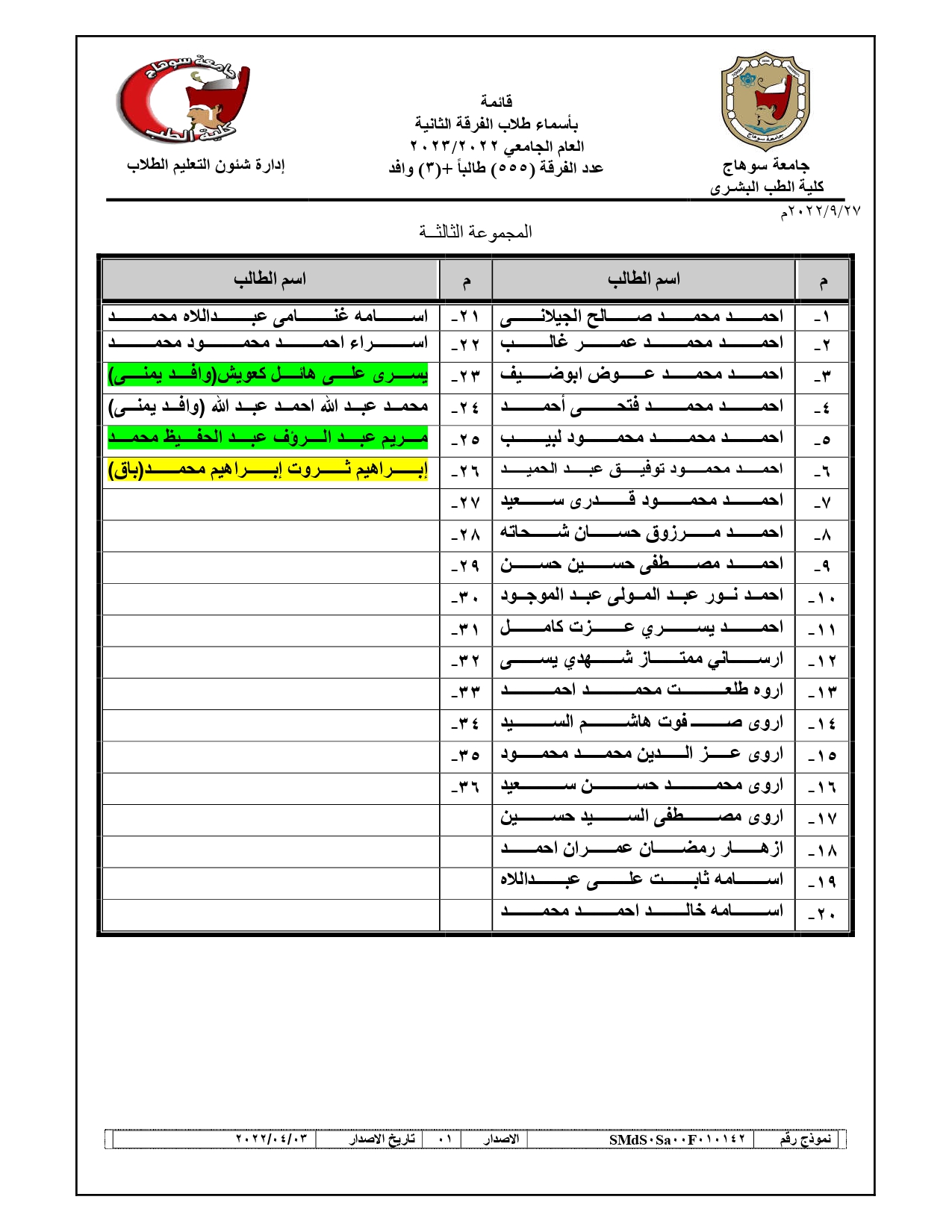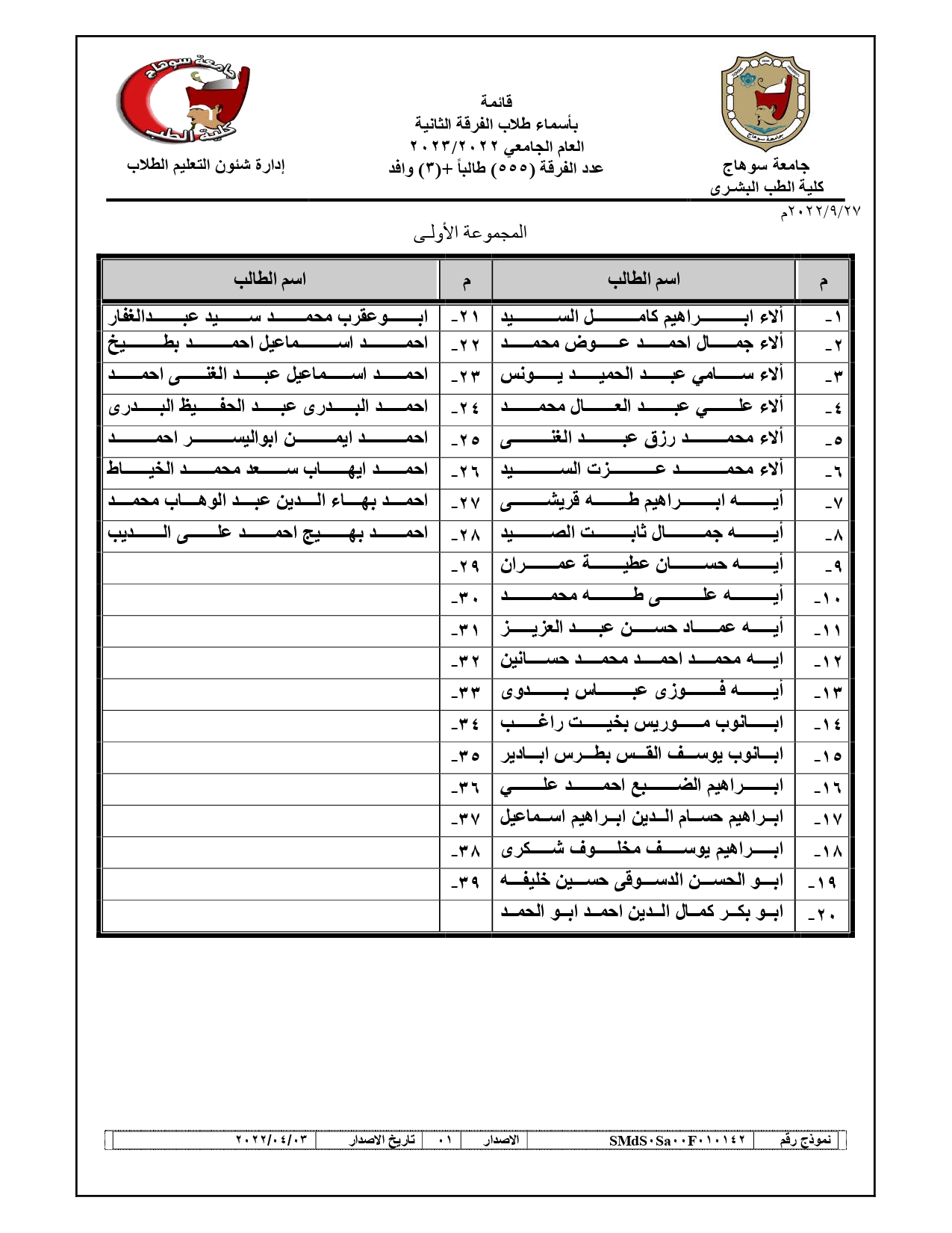 الرئيسية » Blog » قوائم مجموعات الفرقة الثانية للعام الجامعي 2022/2023قوائم مجموعات الفرقة الثانية للعام الجامعي 2022/2023by كلية الطب2022-09-292022-09-29