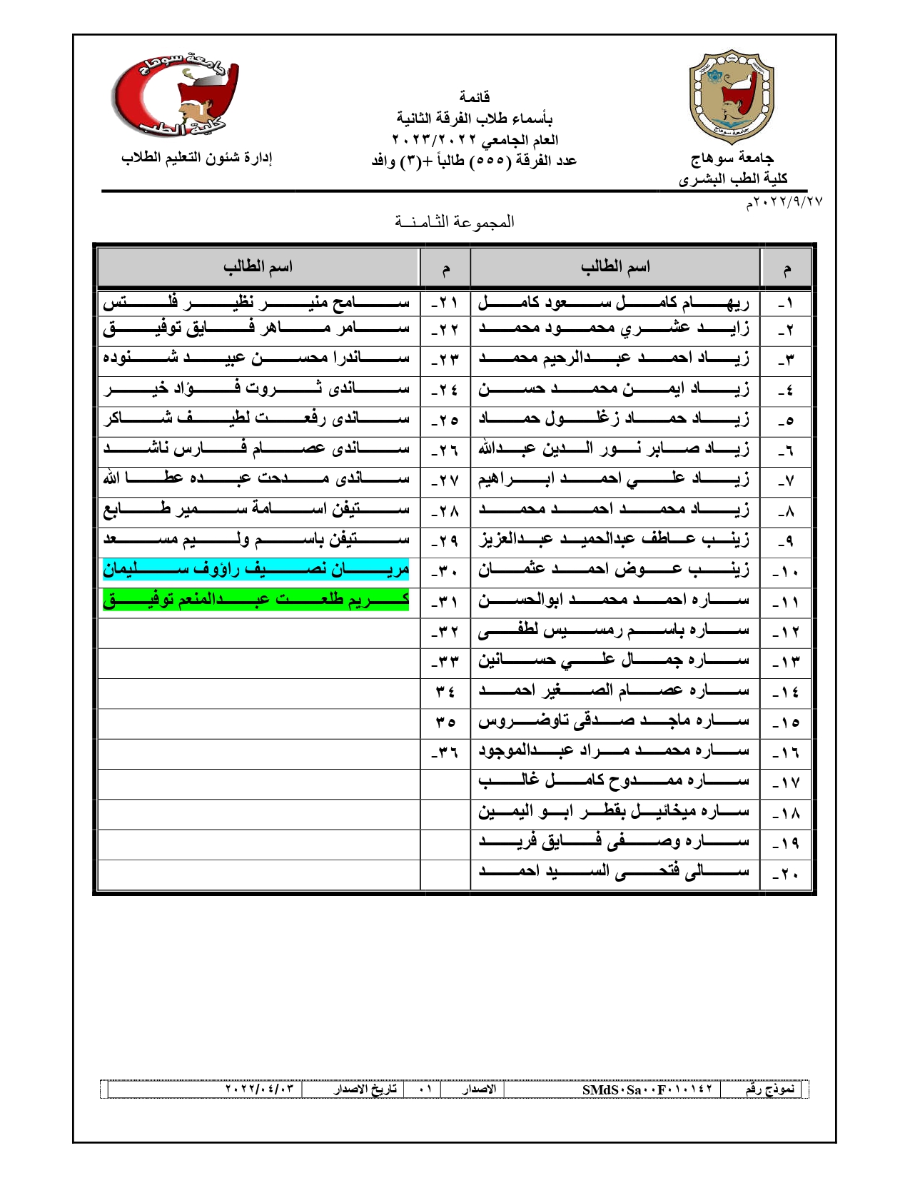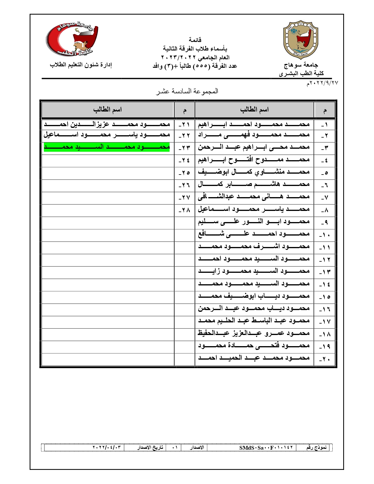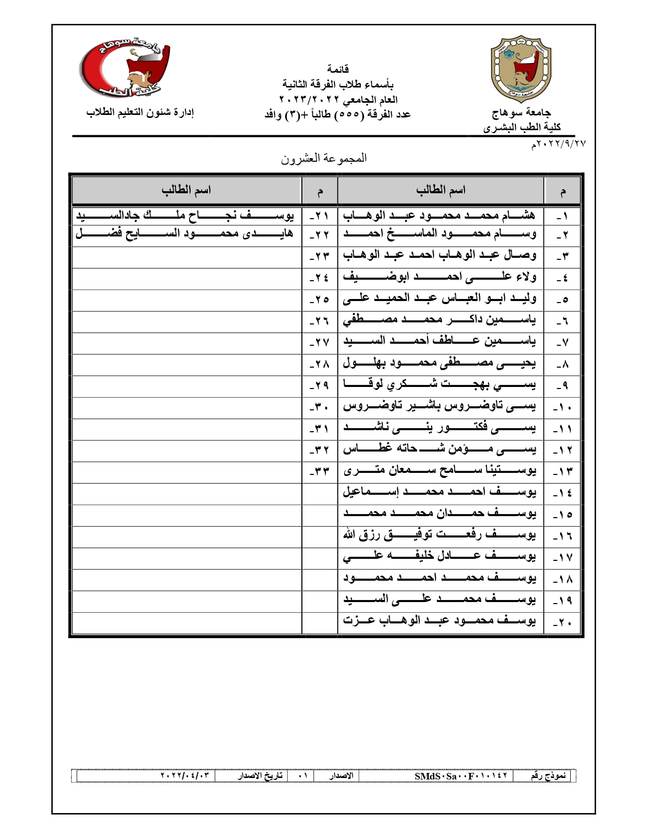 الرئيسية » Blog » قوائم مجموعات الفرقة الثانية للعام الجامعي 2022/2023قوائم مجموعات الفرقة الثانية للعام الجامعي 2022/2023by كلية الطب2022-09-292022-09-29