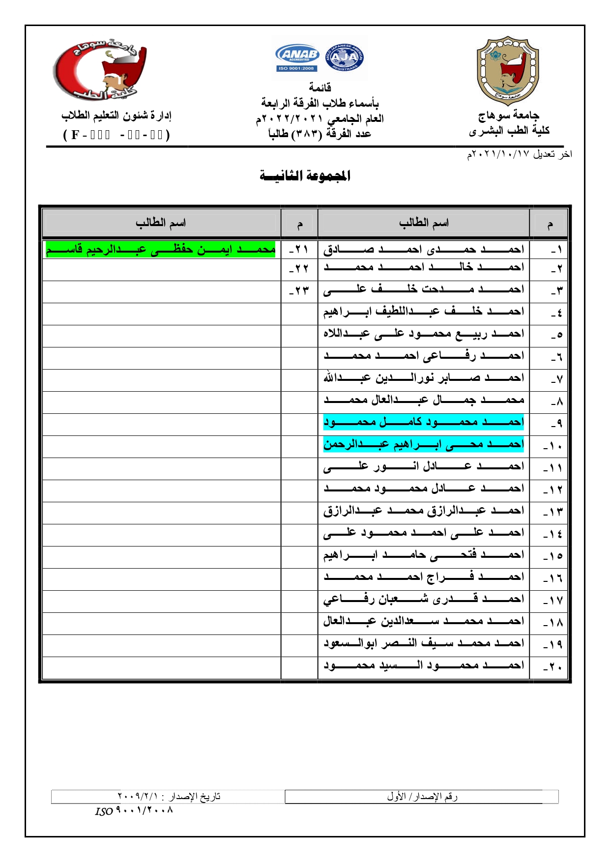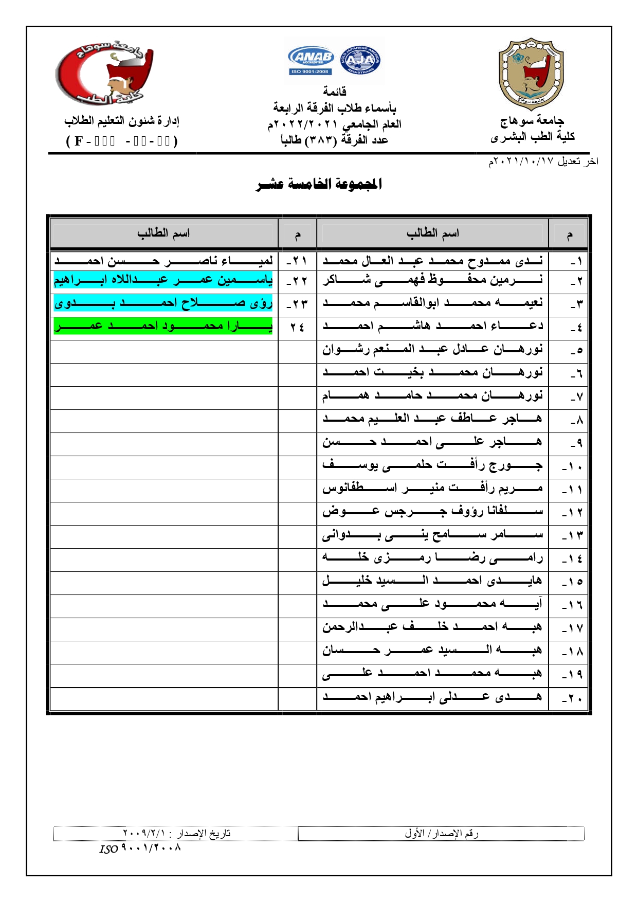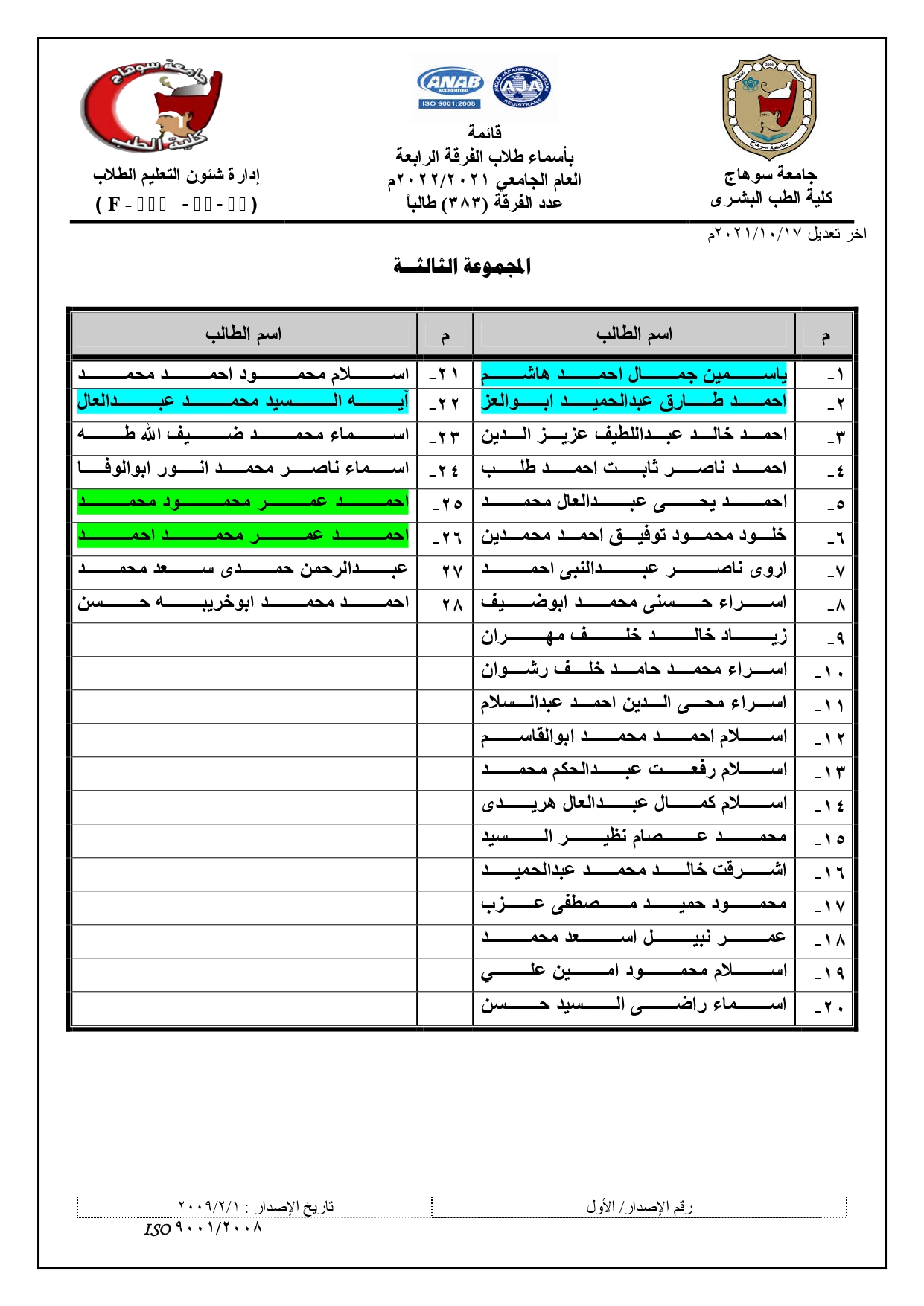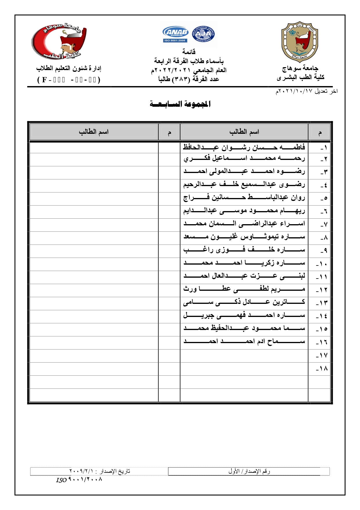 الرئيسية » Blog » قوائم مجموعات الفرقة الرابعة العام الجامعي 2021/2022