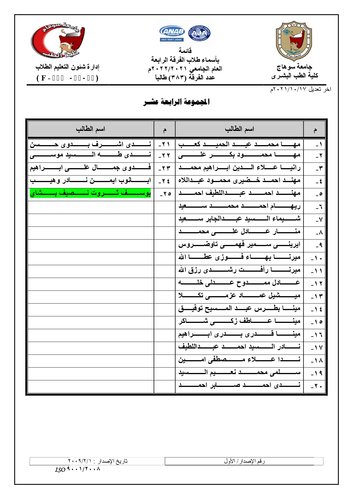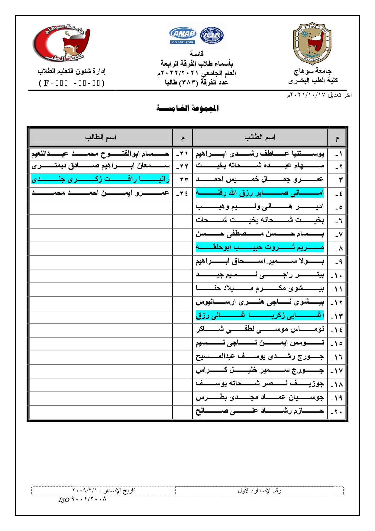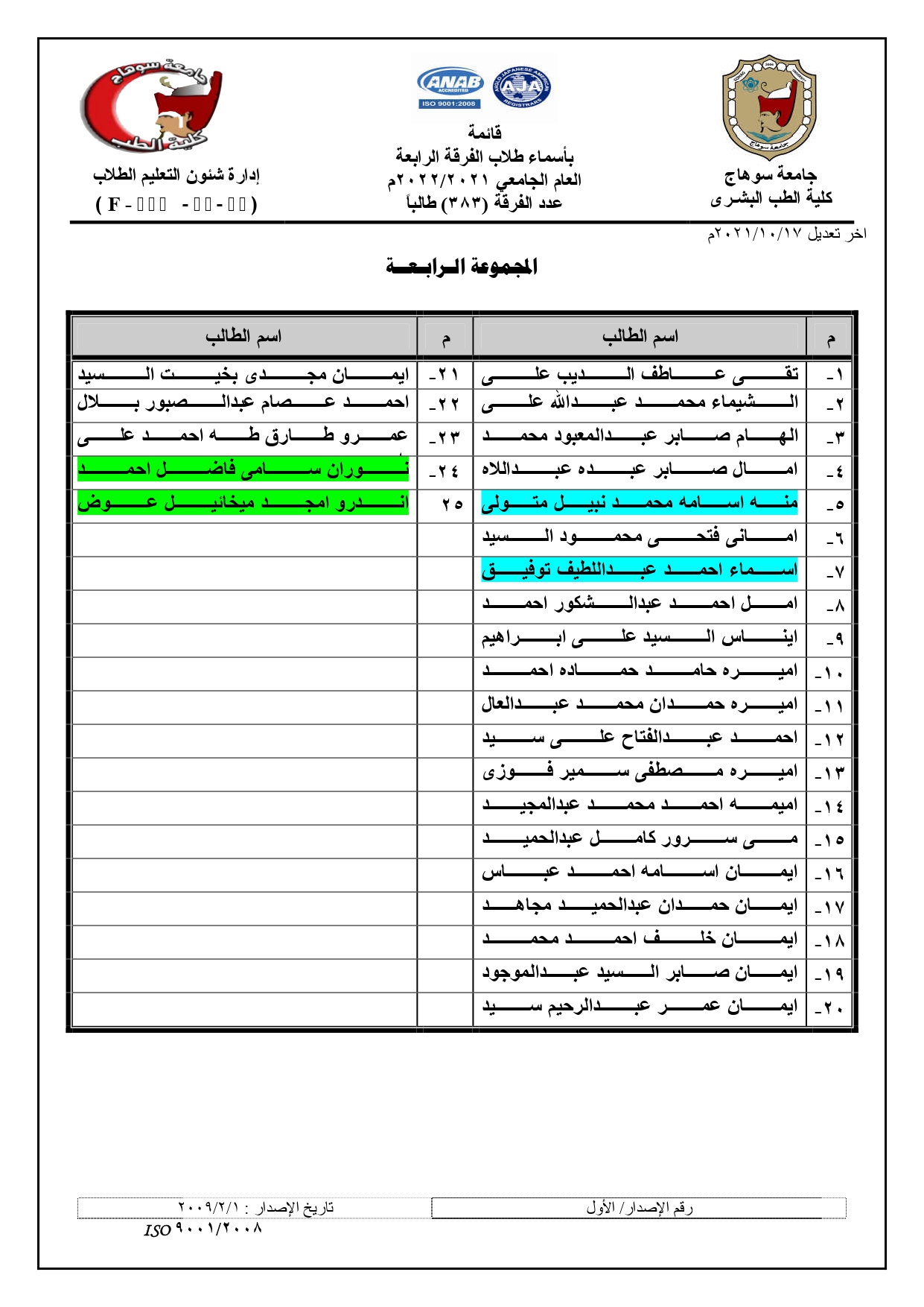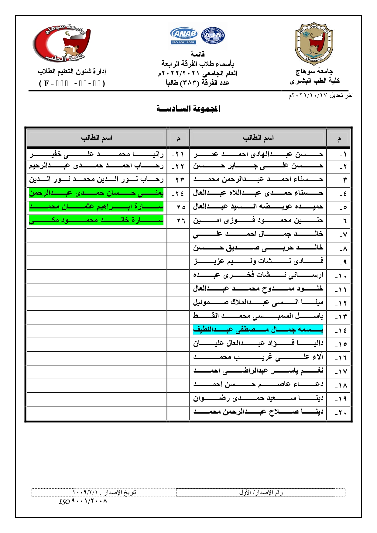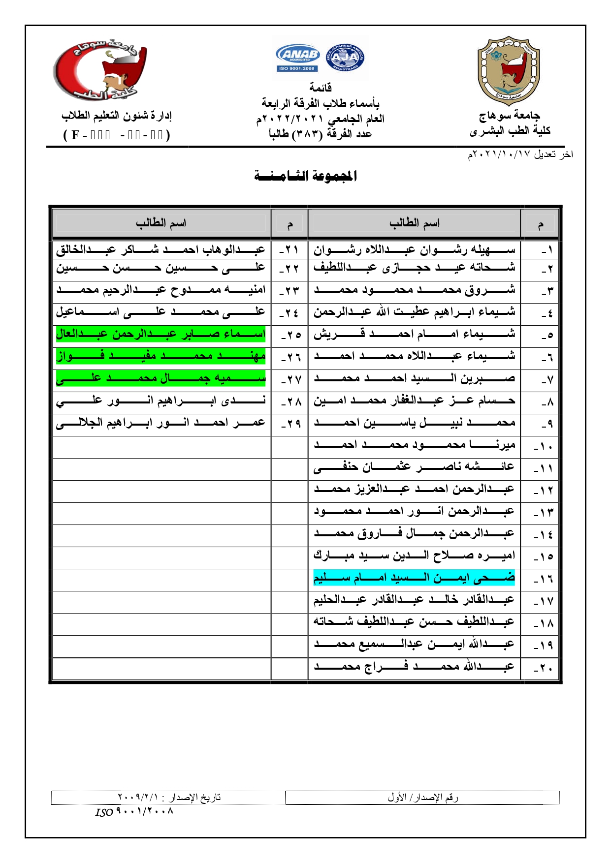 الرئيسية » Blog » قوائم مجموعات الفرقة الرابعة العام الجامعي 2021/2022